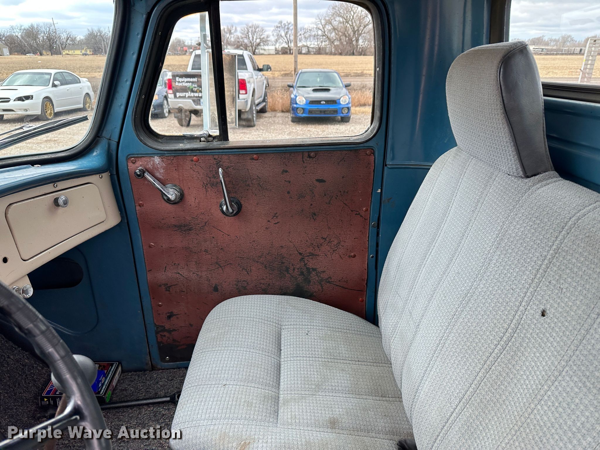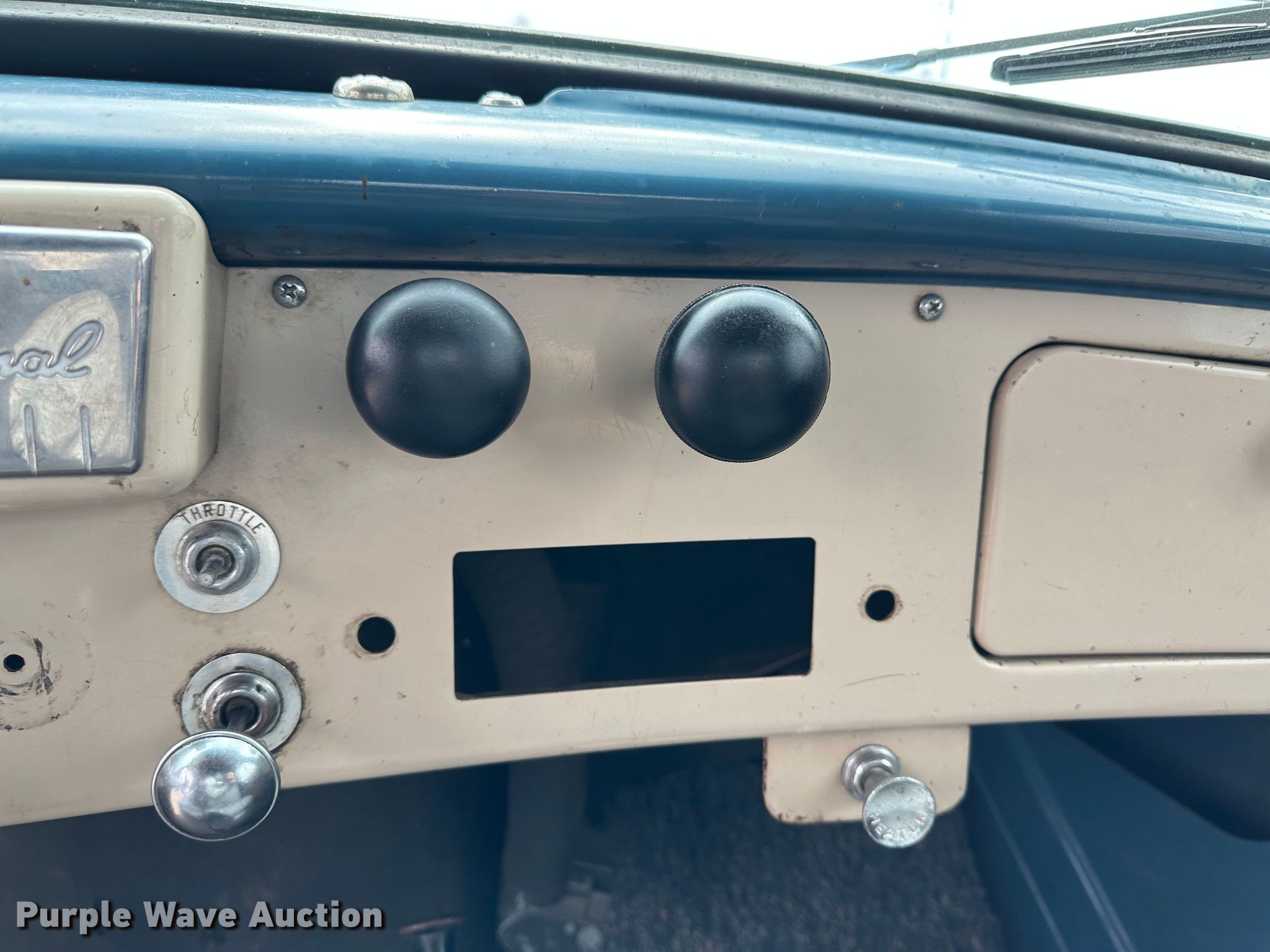 1953 International R130 dump flatbed truck. Miles: 36,611 on odometer, VIN: 5041. Engine Displacement: 240 C.I.D., Cylinders: 6, Fuel type: Gas. Transmission Manual, Speed: 4. Chassis Axles: Single, Suspension: Spring, Brakes: Hydraulic, PTO. Features Dump flatbed 10' L x 86" W. Tires Size: 235/85R16. Kansas antique title. Title distribution may be delayed up to 14 days from verification of funds. Henderson Equipment Service. Salina, KS 67401