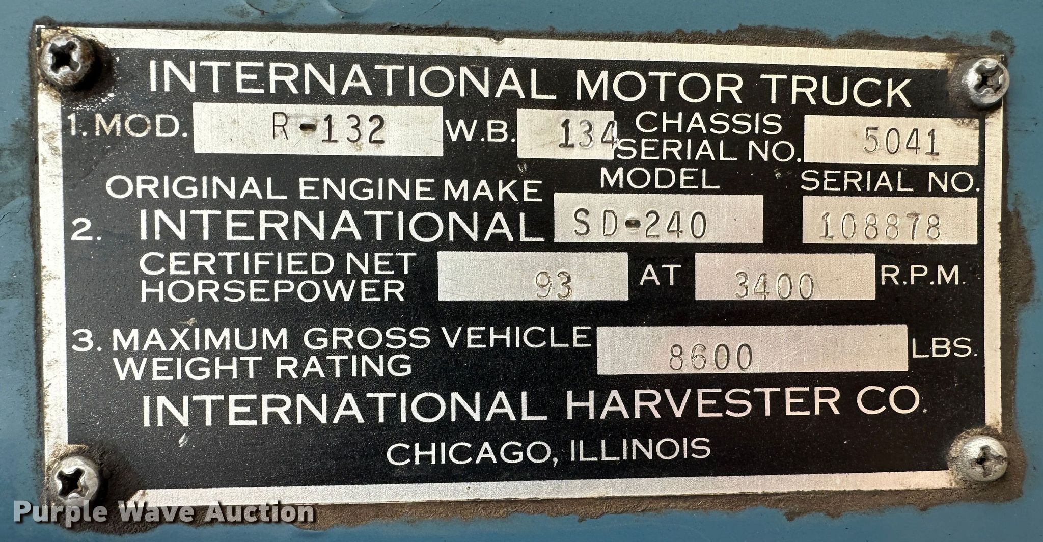 Purple Wave is selling a used Flat Bed Truck in Kansas. This item is a 1953 International R130 dump flatbed truck with the following: Miles: 36,611 on odometer, VIN: 5041