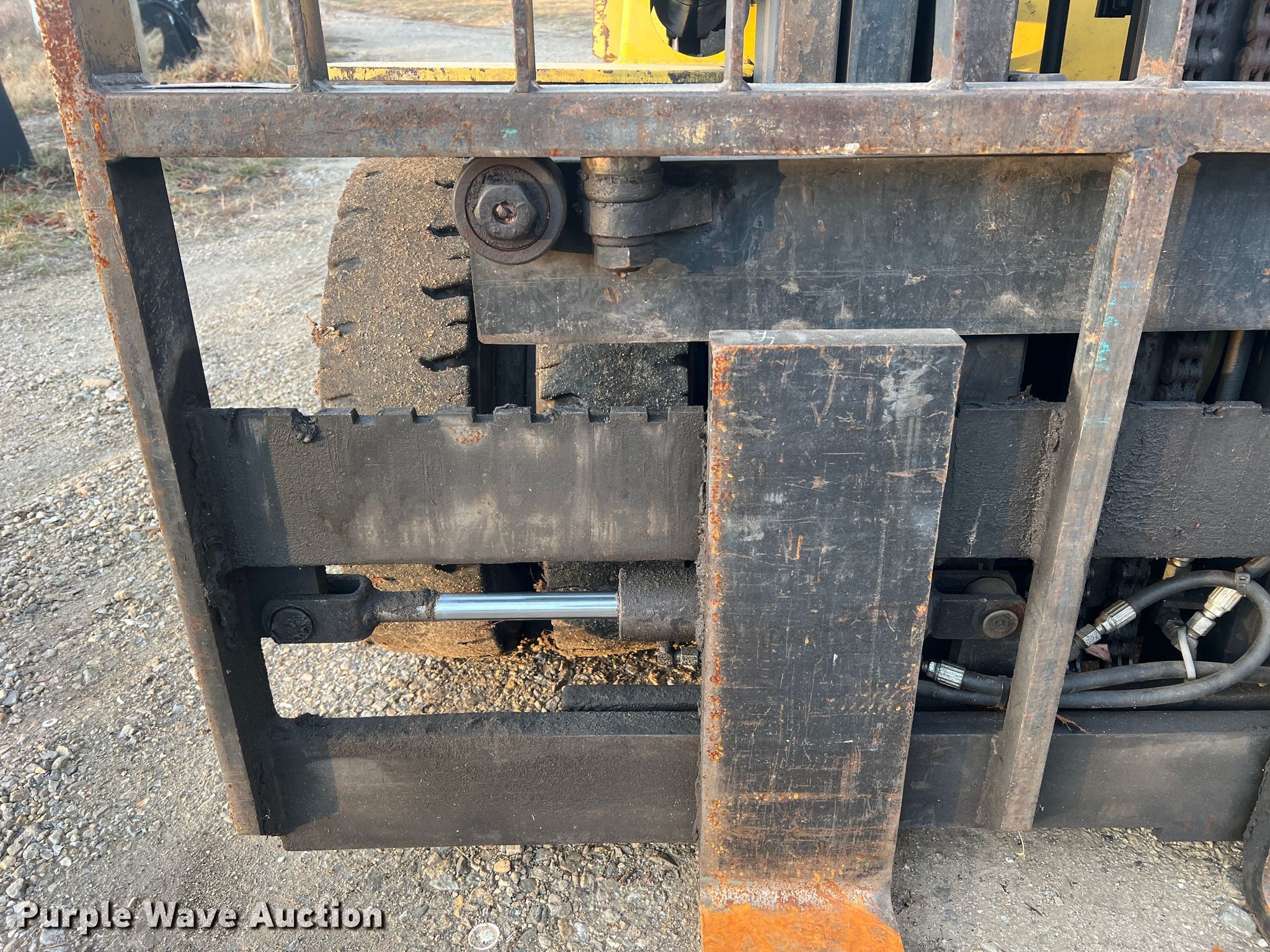 Hyster H80XL forklift. Hours: 9,274 on meter, Serial: G005D03210R. Engine Cylinders: 4, Fuel type: Diesel. Transmission Manual, 3F - 3R. Operators station OROPS. Features Maximum lift capacity: 7,400 lbs, Maximum lift height: 171.5", Mast stages: 3, Side shift, Mast tilt, Fork length: 47". Tires Front: 7.50-15, Rear: 7.00-12. Notes Hydraulic leak. Helmka Construction. 3175 East Nashville Church Road. Ashland, MO 65010