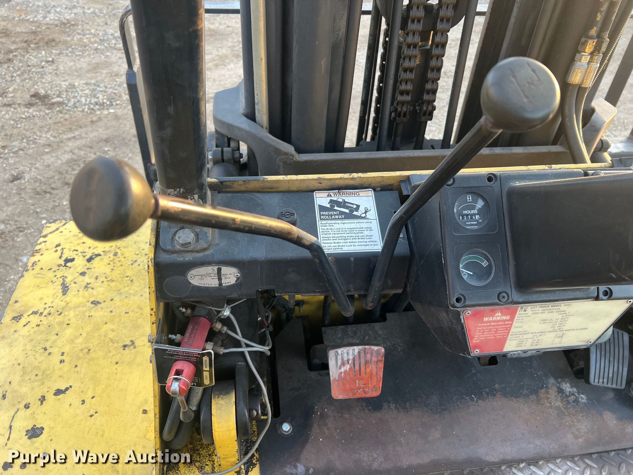 Purple Wave is selling a used Cushion Tire or Pneumatic Forklift in Missouri. This item is a Hyster H80XL forklift with the following: Hours: 9,274 on meter, Serial: G005D03210R