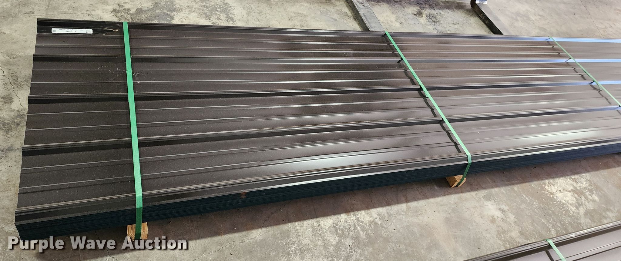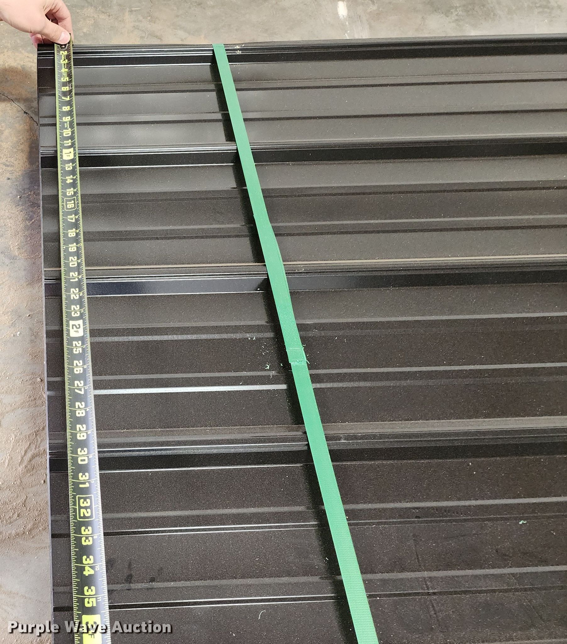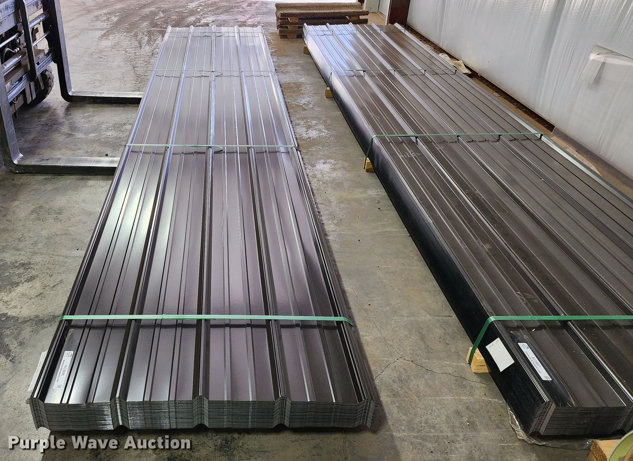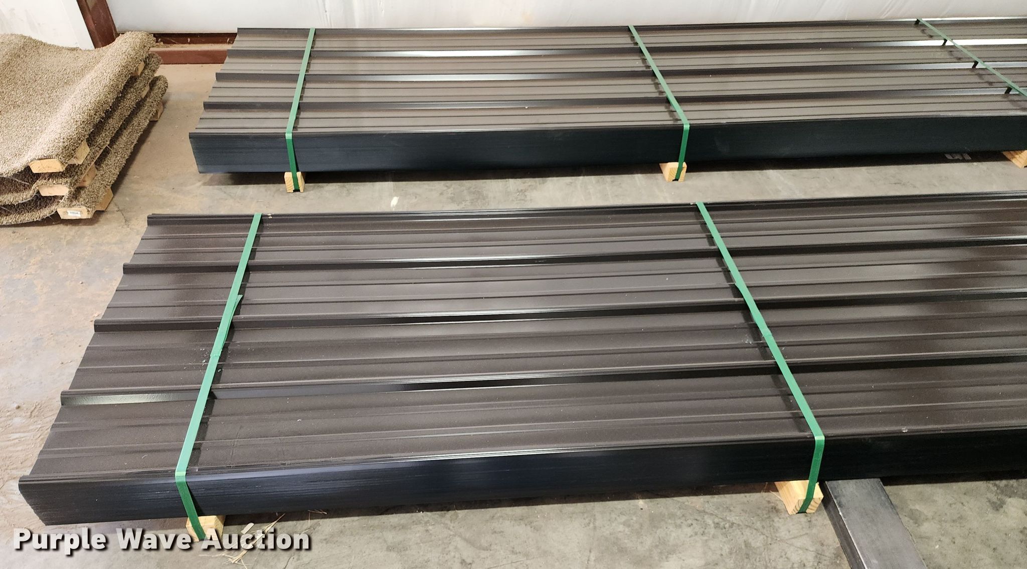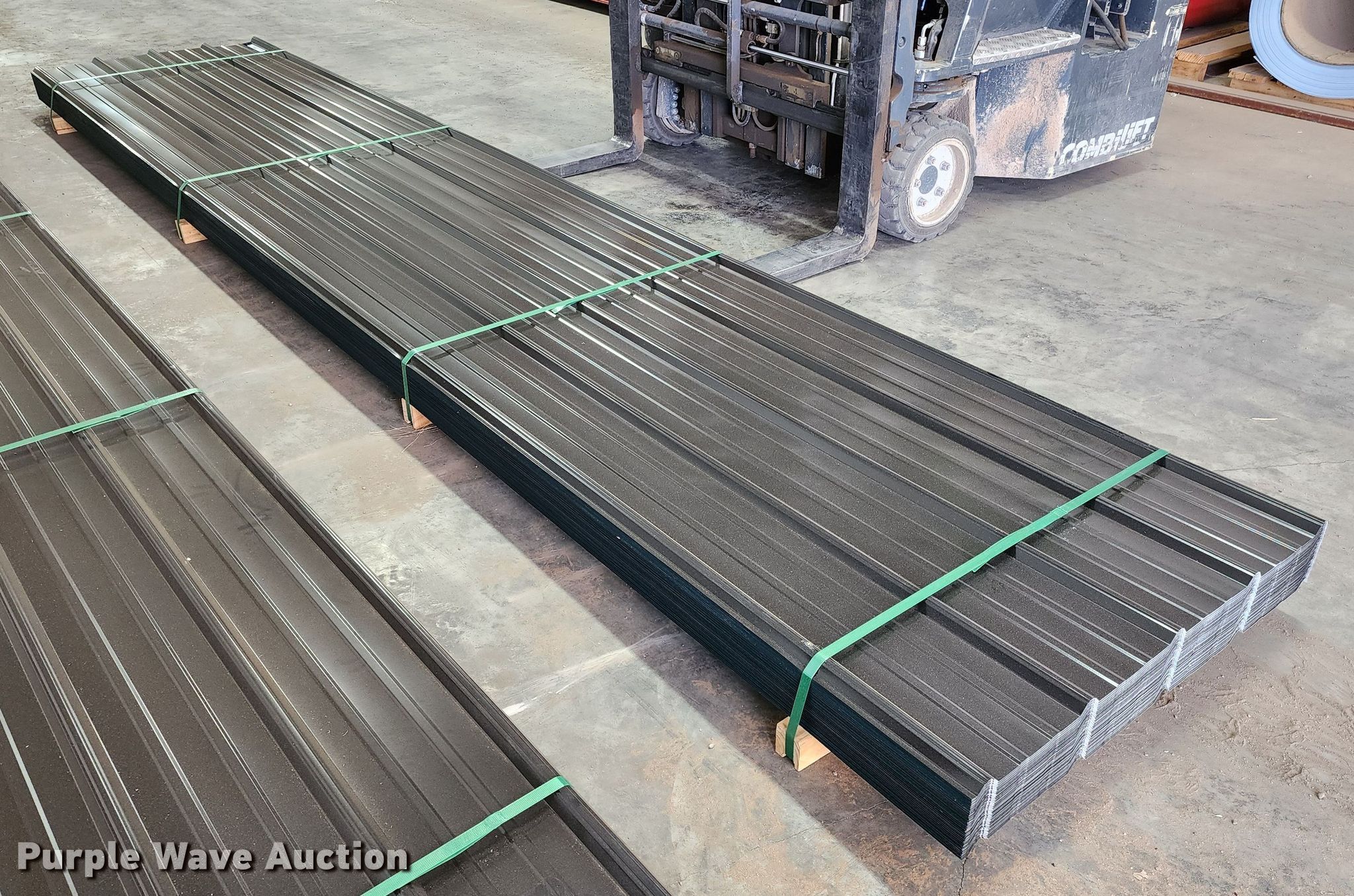 Purple Wave is selling a used Building Materials in Texas. This item is a (170) sheets of Doerkson Metal Components metal siding/roofing with the following: 16' L x 36" W overlap coverage, AG profile, 29 gauge, Color: Black, Possible blemishes