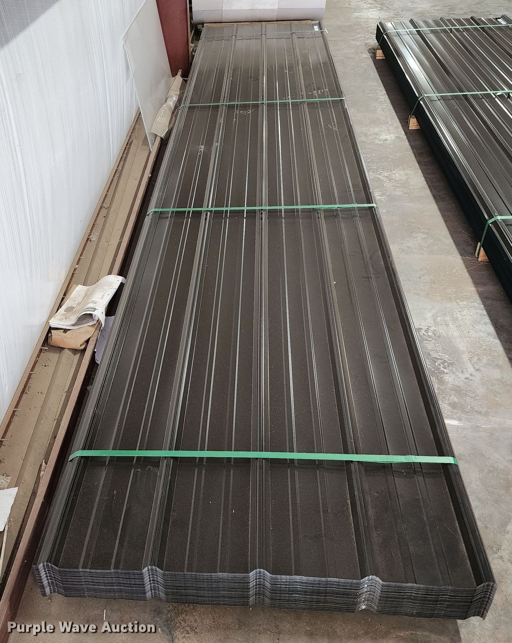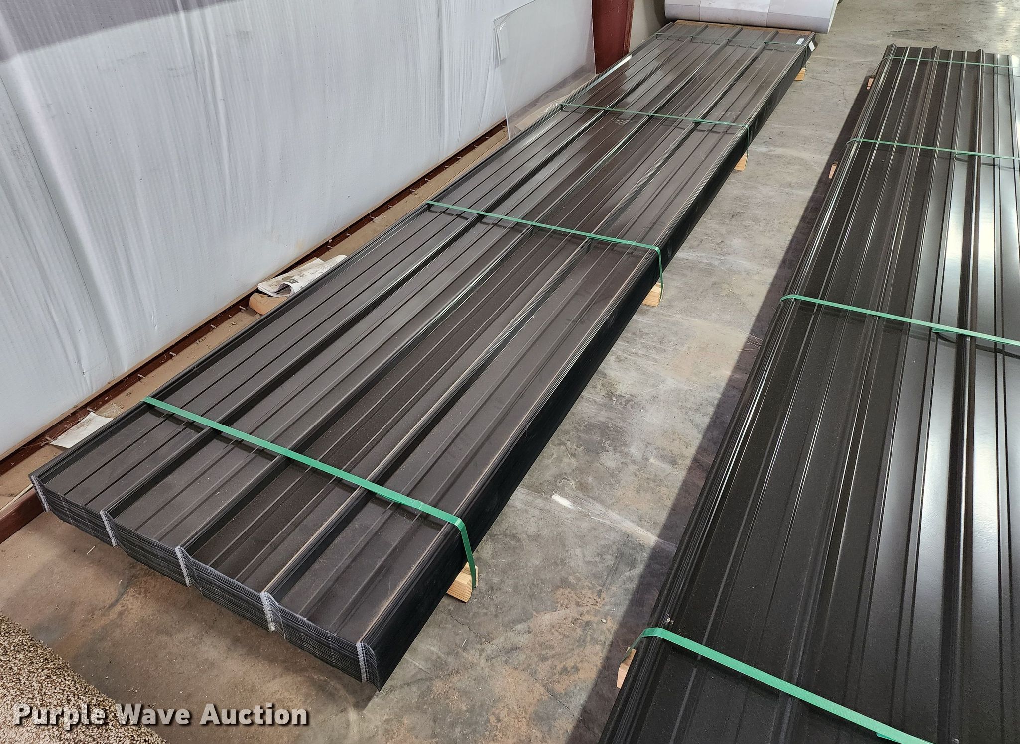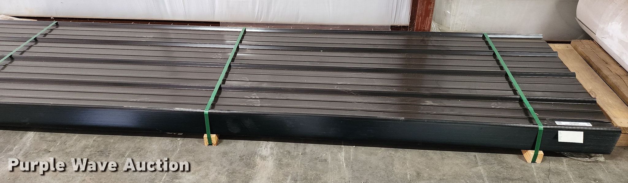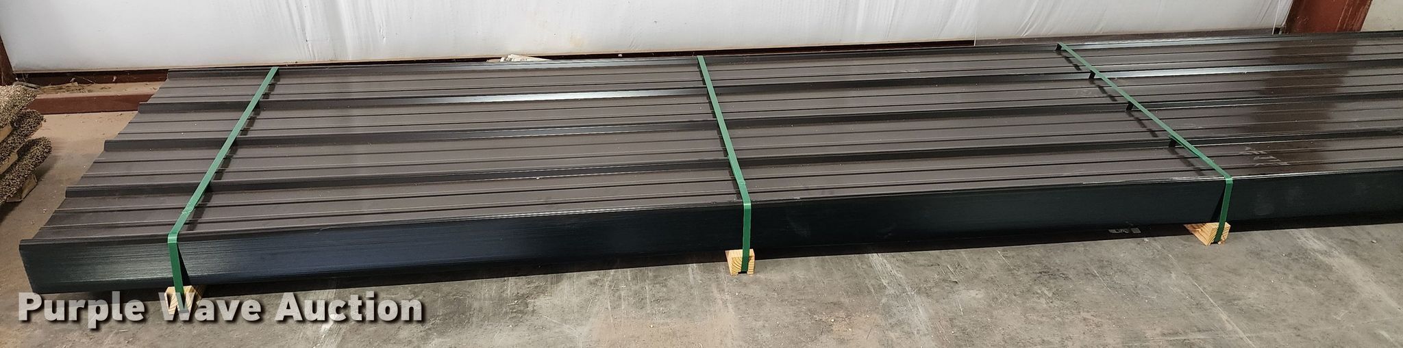 Purple Wave is selling a used Building Materials in Texas. This item is a (170) sheets of Doerkson Metal Components metal siding/roofing with the following: 16' L x 36" W overlap coverage, AG profile, 29 gauge, Color: Black, Possible blemishes