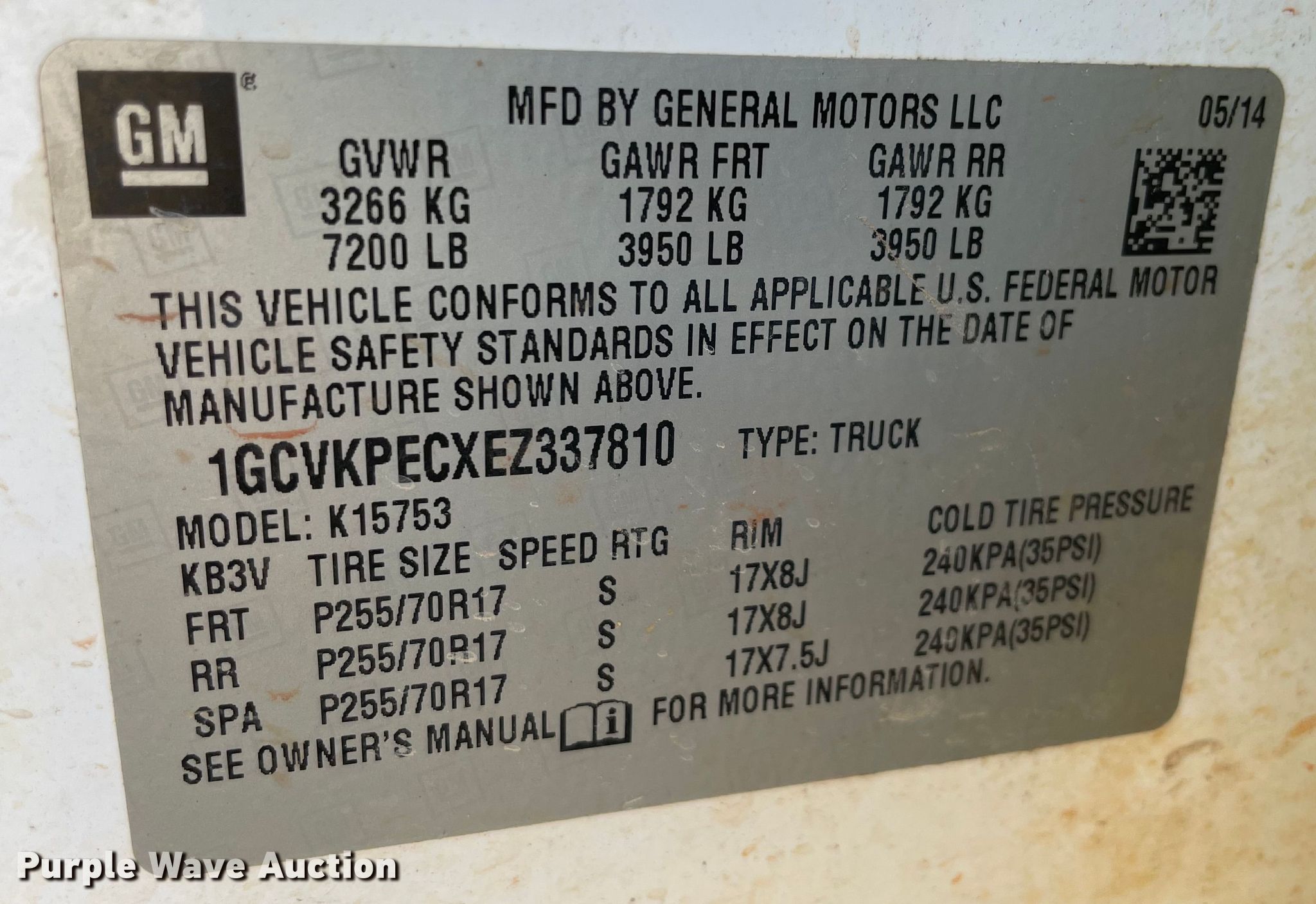 - VIN: 1GCVKPECXEZ337810