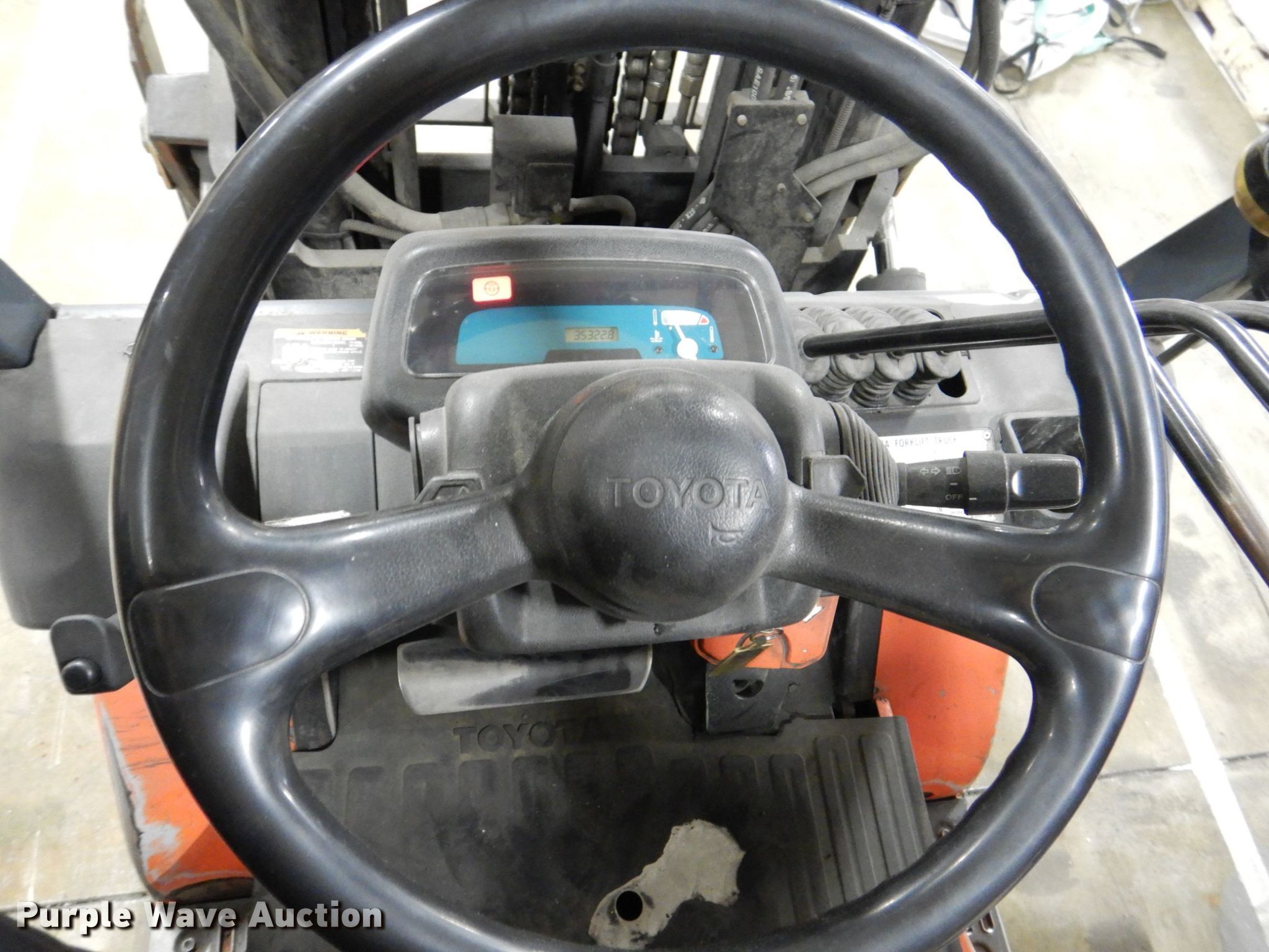 Purple Wave is selling a used Warehouse Forklift in Iowa. This item is a Toyota 7FGCU30 forklift with the following: Hours: 35,323 on meter, Serial: 62149