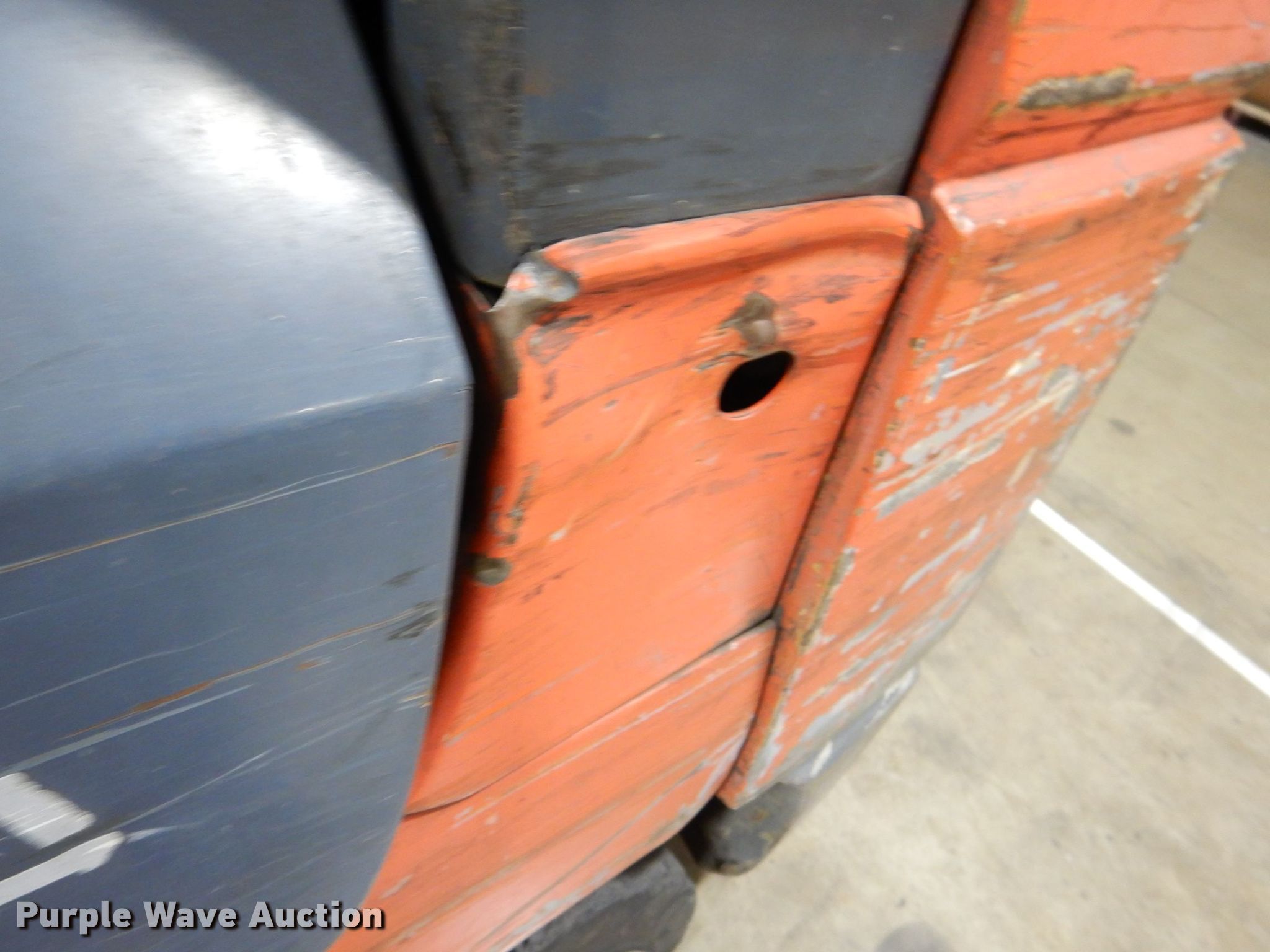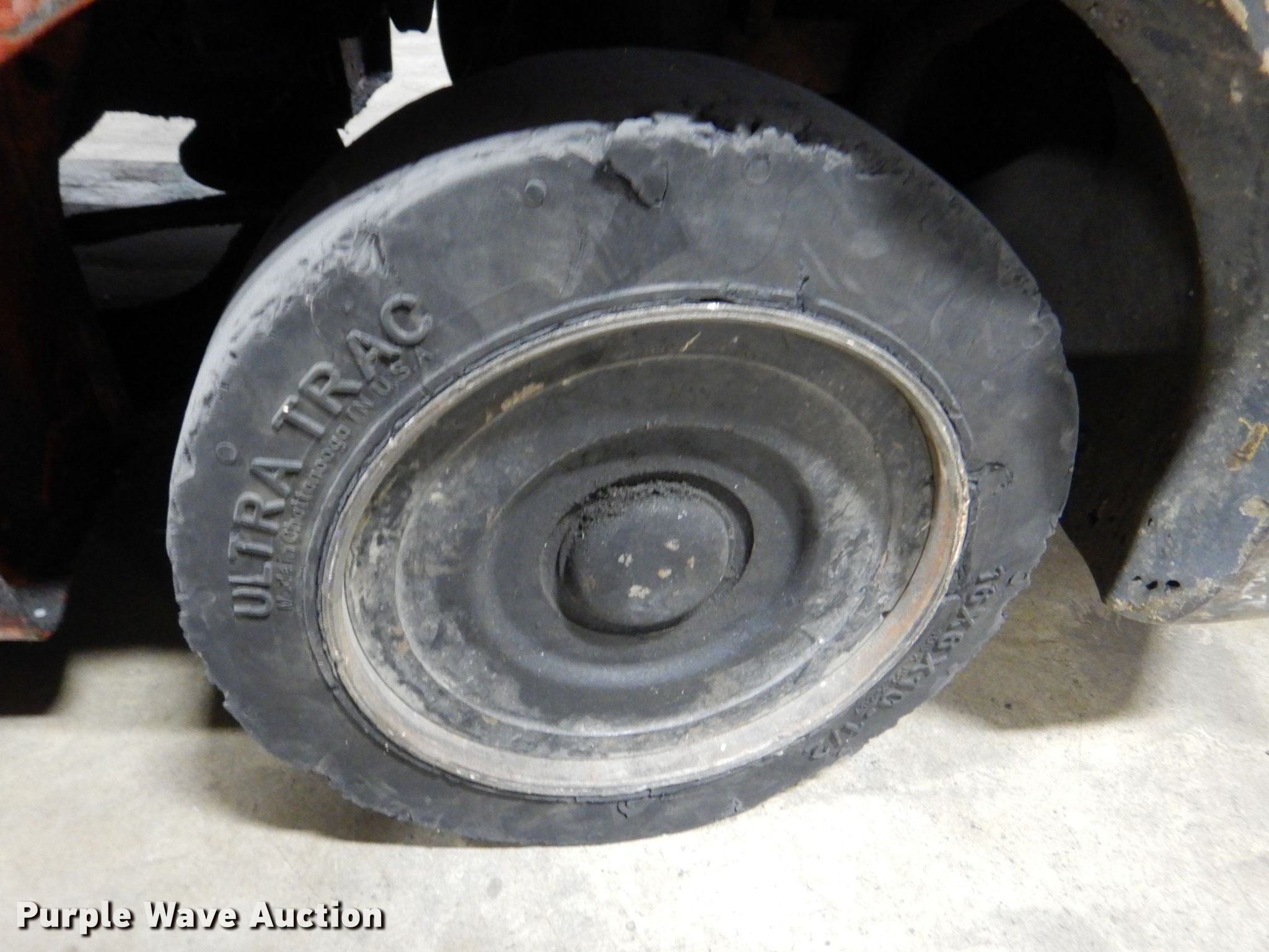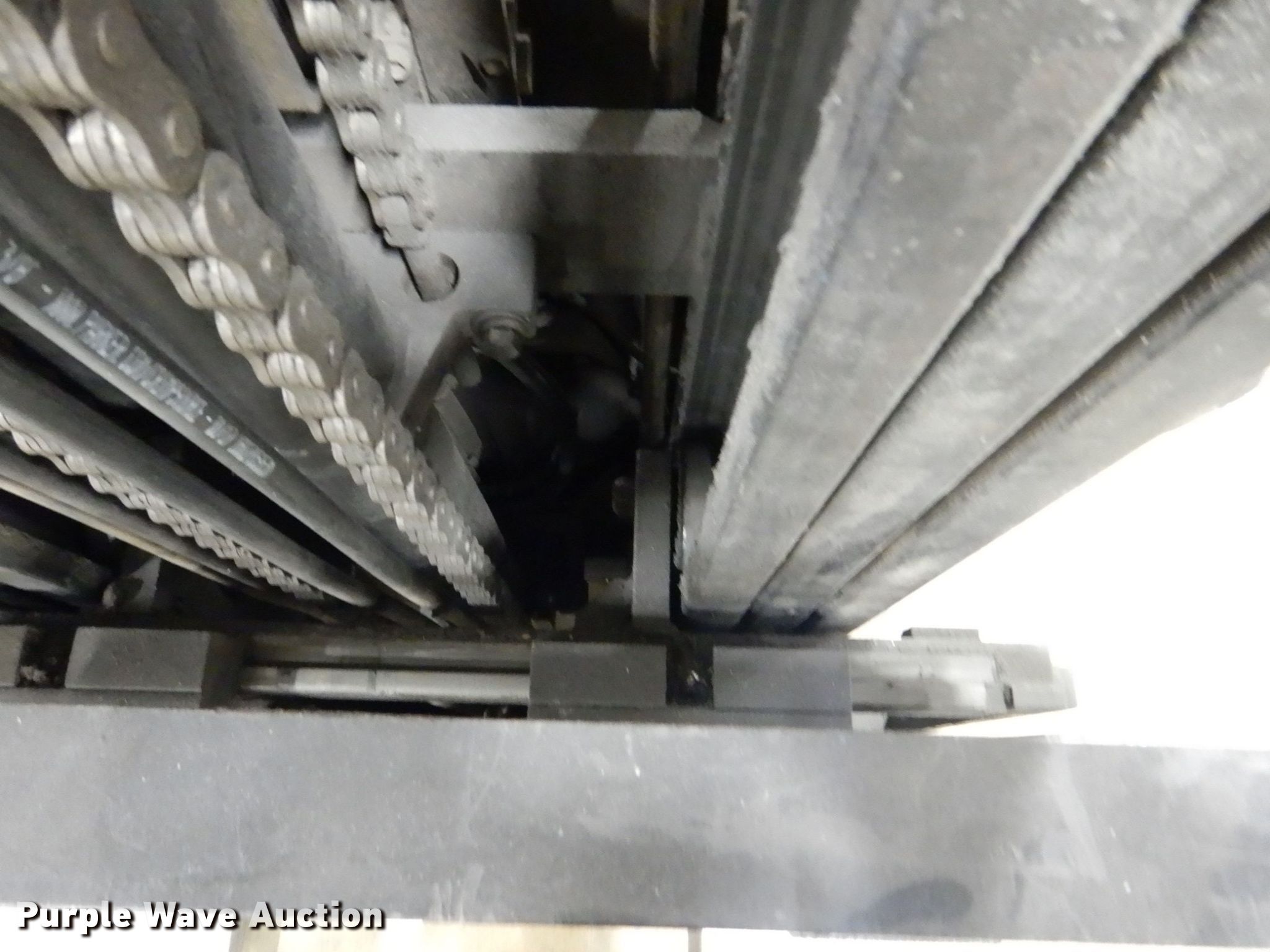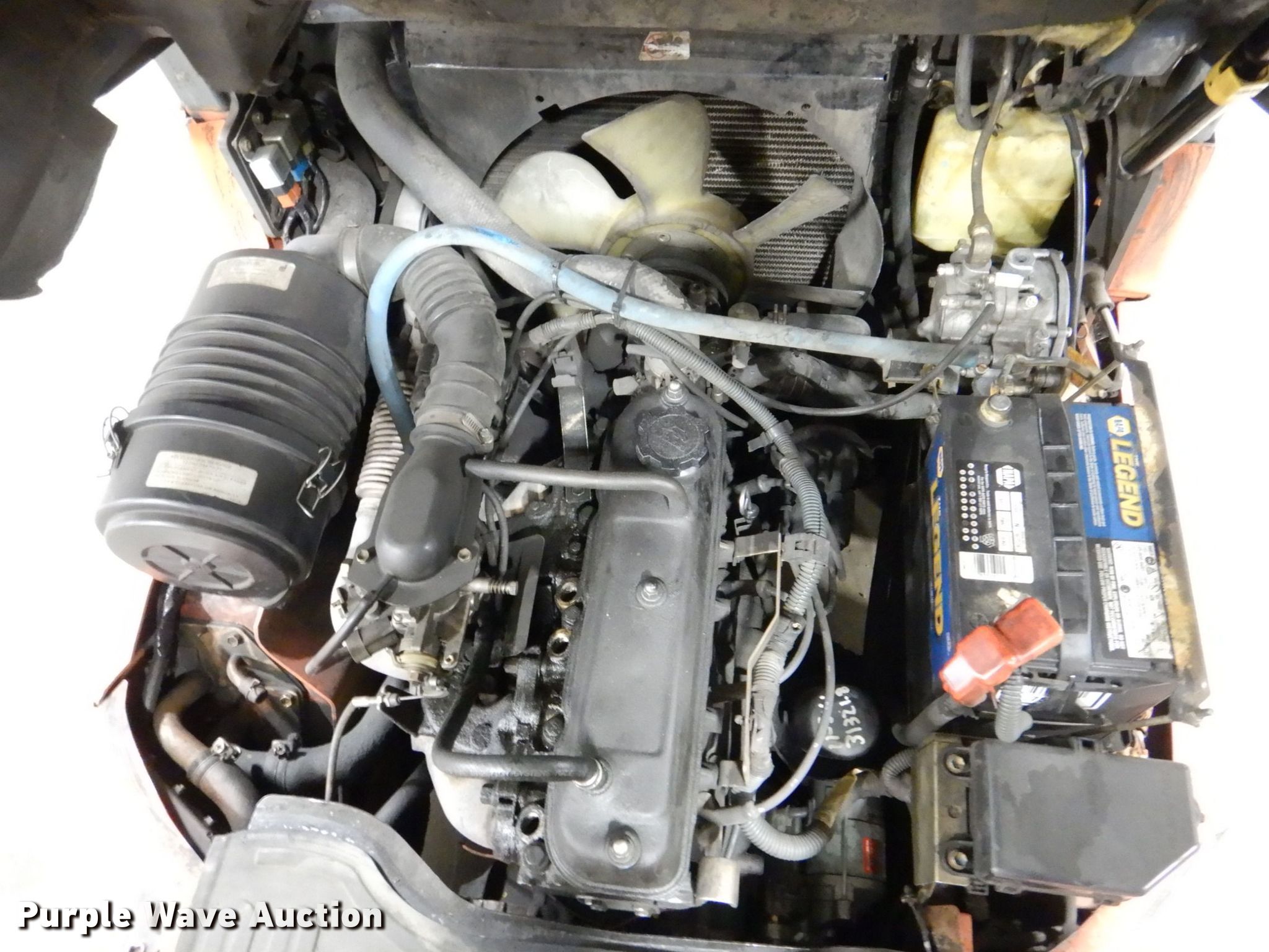 Toyota 7FGCU30 forklift. Hours: 35,323 on meter, Serial: 62149. Engine Cylinders: 4, Fuel type: LPG LP bottle: Not included. Transmission Hydrostatic. Chassis Differential lock. Operators station Canopy. Features Maximum lift capacity: 6,350 lbs, Maximum lift height: 187", Mast stages: 3, Side shift, Mast tilt, Fork length: 48". Tires Front: 21x8x15, Rear: 16x6x10 1/2, Solid. 1516 East Maple Leaf Drive. Mount Pleasant, IA 52641