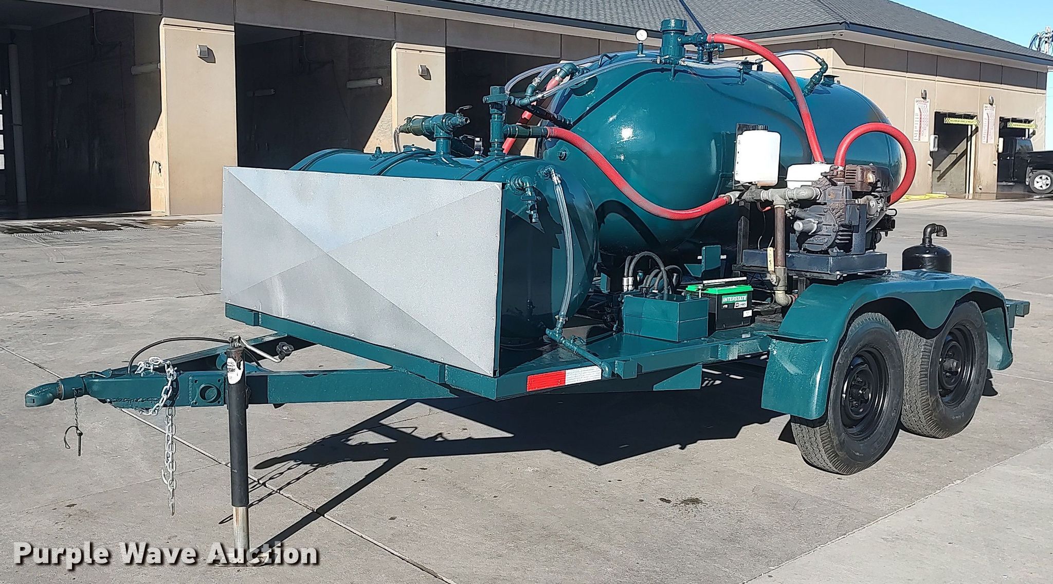 1982 Shop built vacuum excavator. VIN: S16083KAN. Engine Honda GX240, Cylinders: 1, Fuel type: Gas, HP: 8. Features Spoils tank Capacity: 500 gallons, Water tank Capacity: 150 gallons, Water pump, Vacuum pump Masport HLX2, CFM: 75, Suction hose. Trailer Ball hitch size: 2", Suspension: Spring, Brakes: Electric, Axles: Tandem, Tire size: 7.00-15. Kansas title. Title distribution may be delayed up to 14 days from verification of funds. Pratt, KS 67124