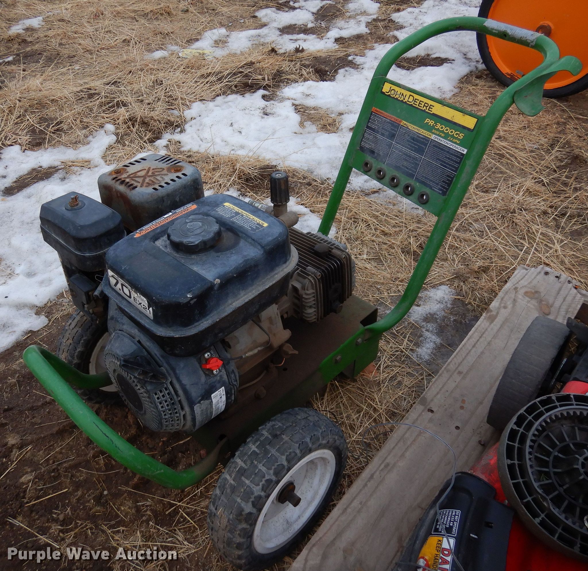 (2) mowers. Torro push mower, Craftsman push mower. John Deere PR-300GS pressure washer. Notes Parts may be missing, Non-operational unit. Timberline Landscaping Inc.. 8100 Opportunity View. Colorado Springs, CO 80939