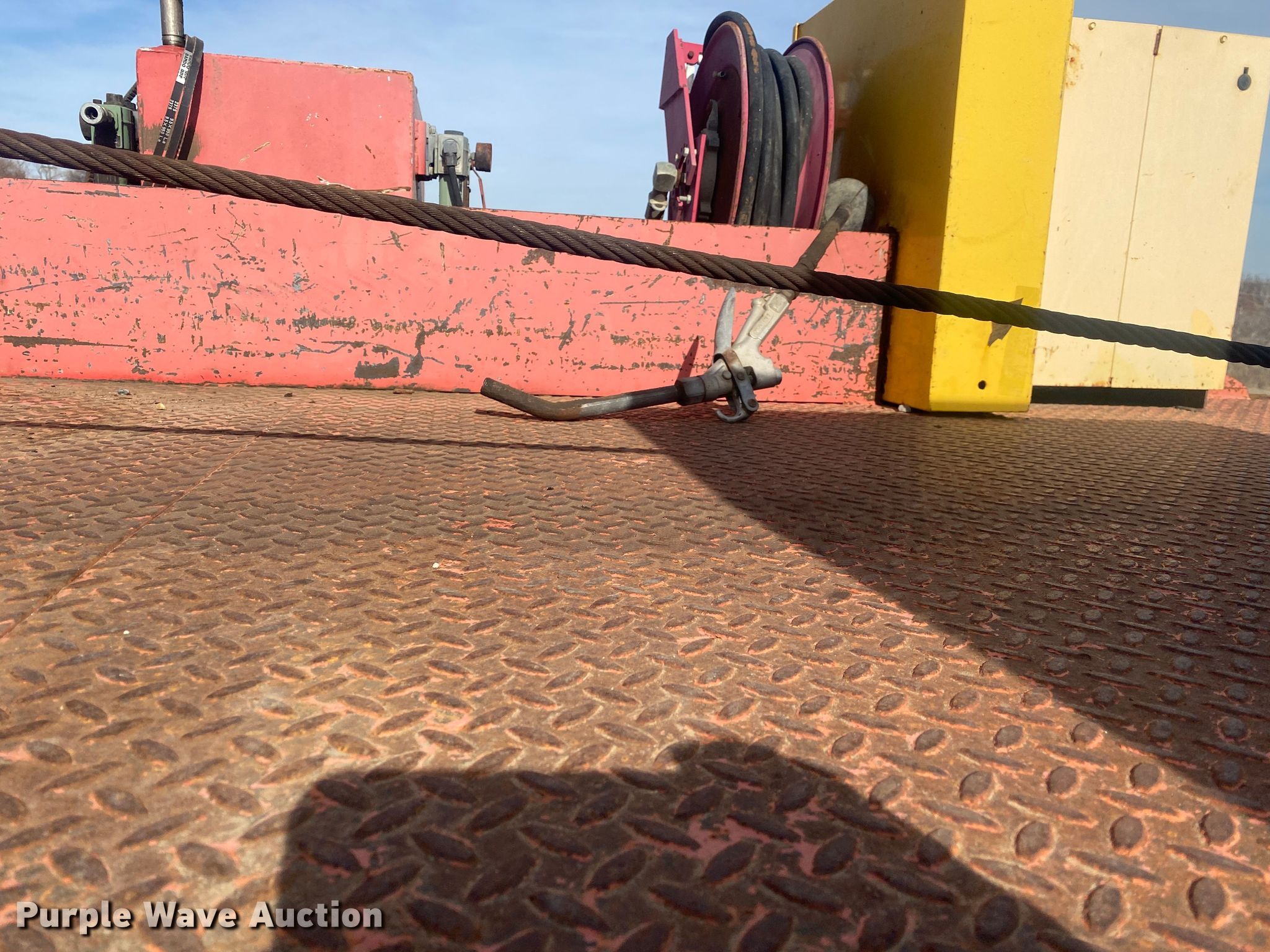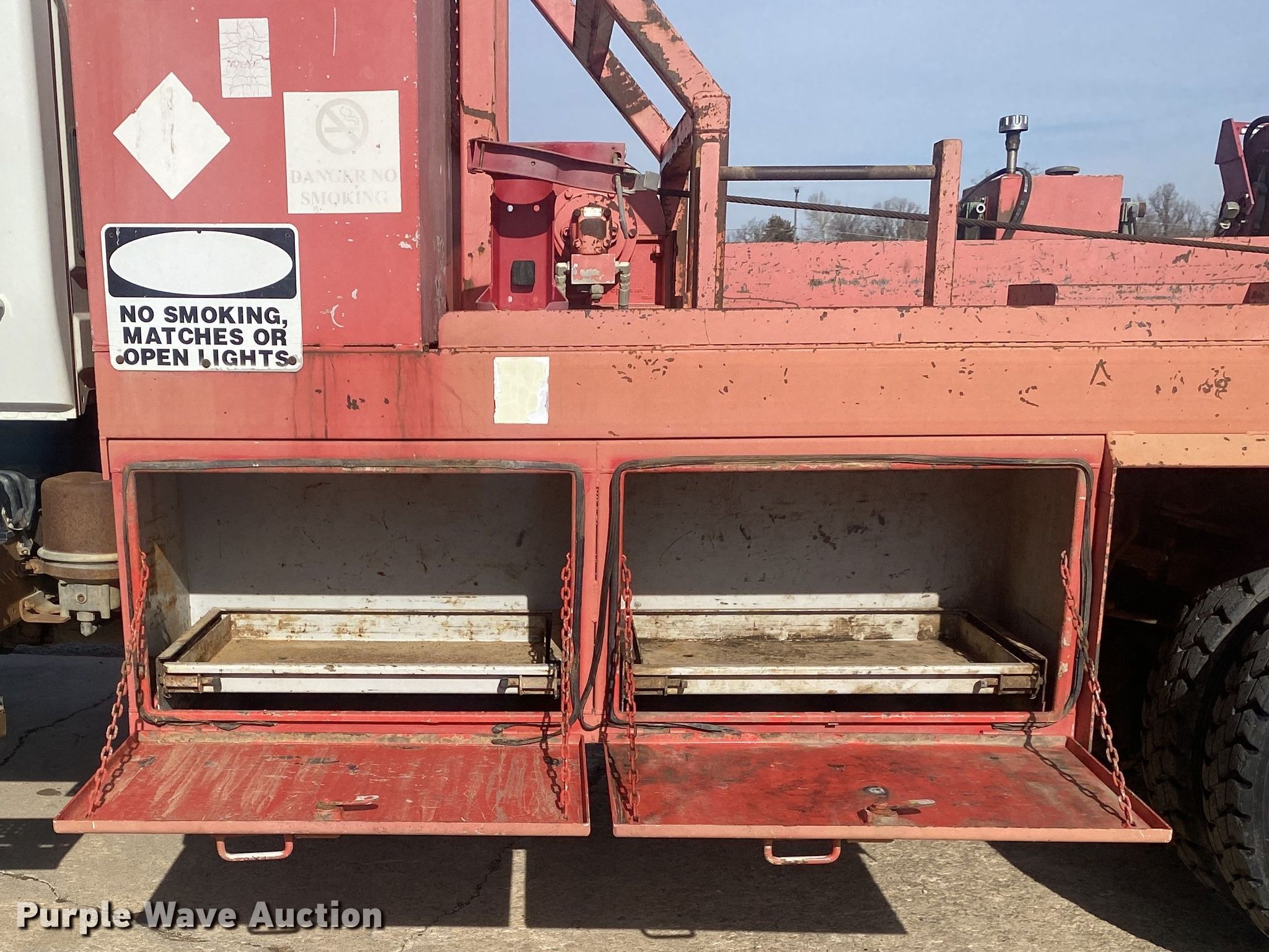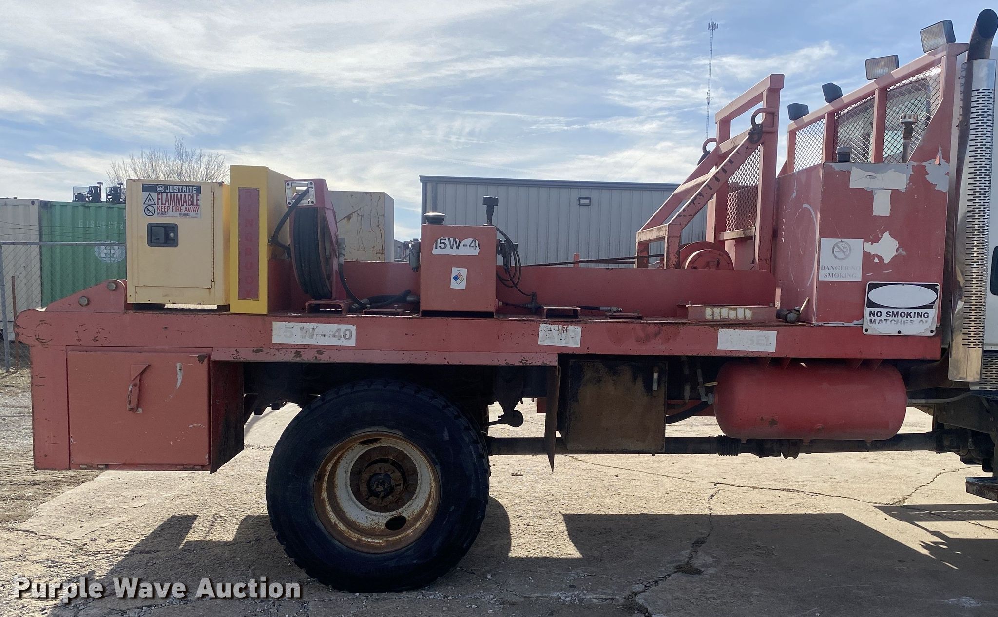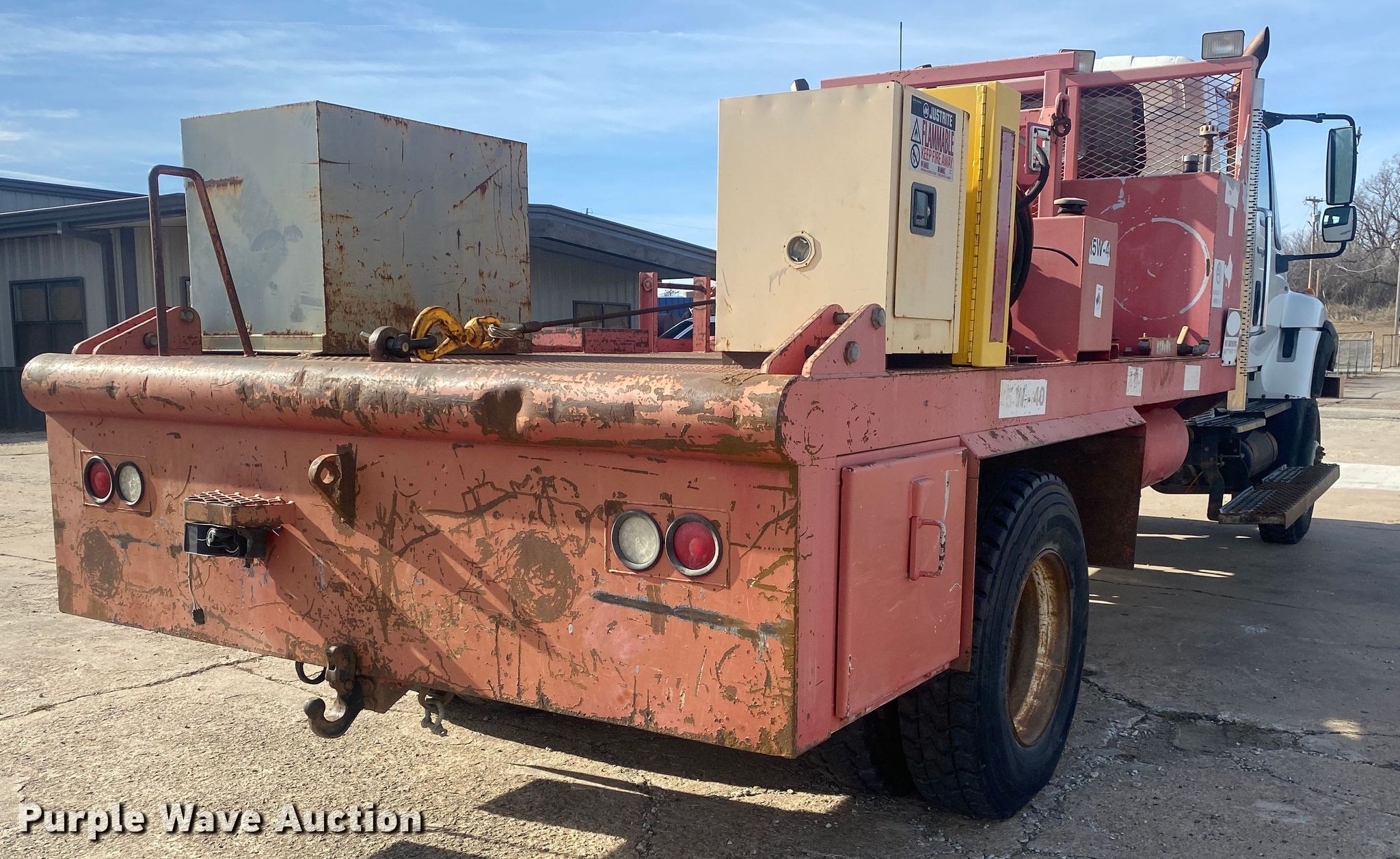 2010 International 7000 flatbed truck. Miles: 45,523 on odometer, Hours: 13,386 on meter, VIN: 1HTWEAAR8AJ214957. Engine Displacement: 7.6L, Cylinders: 6, Fuel type: Diesel. Transmission Automatic. Chassis Four wheel drive, Axles: Single, Suspension: Spring, Brakes: Air, PTO, GVWR: 35,000 lbs. Interior AC, Heat, Heated mirrors, Cruise control. Features Flatbed 14' 3" L x 96" W, Winch, Rolling tailboard, Reservoirs Oil, Fuel tank Diesel, Capacity: 200 gallons, Nozzle, Hose reel. Tires Size: 11R22.5. Notes Dash warning indicator: ABS, DPF, Engine warning. Oklahoma title. Mileage has not been verified. Exempt will be written in the odometer disclosure on the title. Title distribution may be delayed up to 14 days from verification of funds. Flint Equipment. 9305 E Main St. Drumright, OK 74030