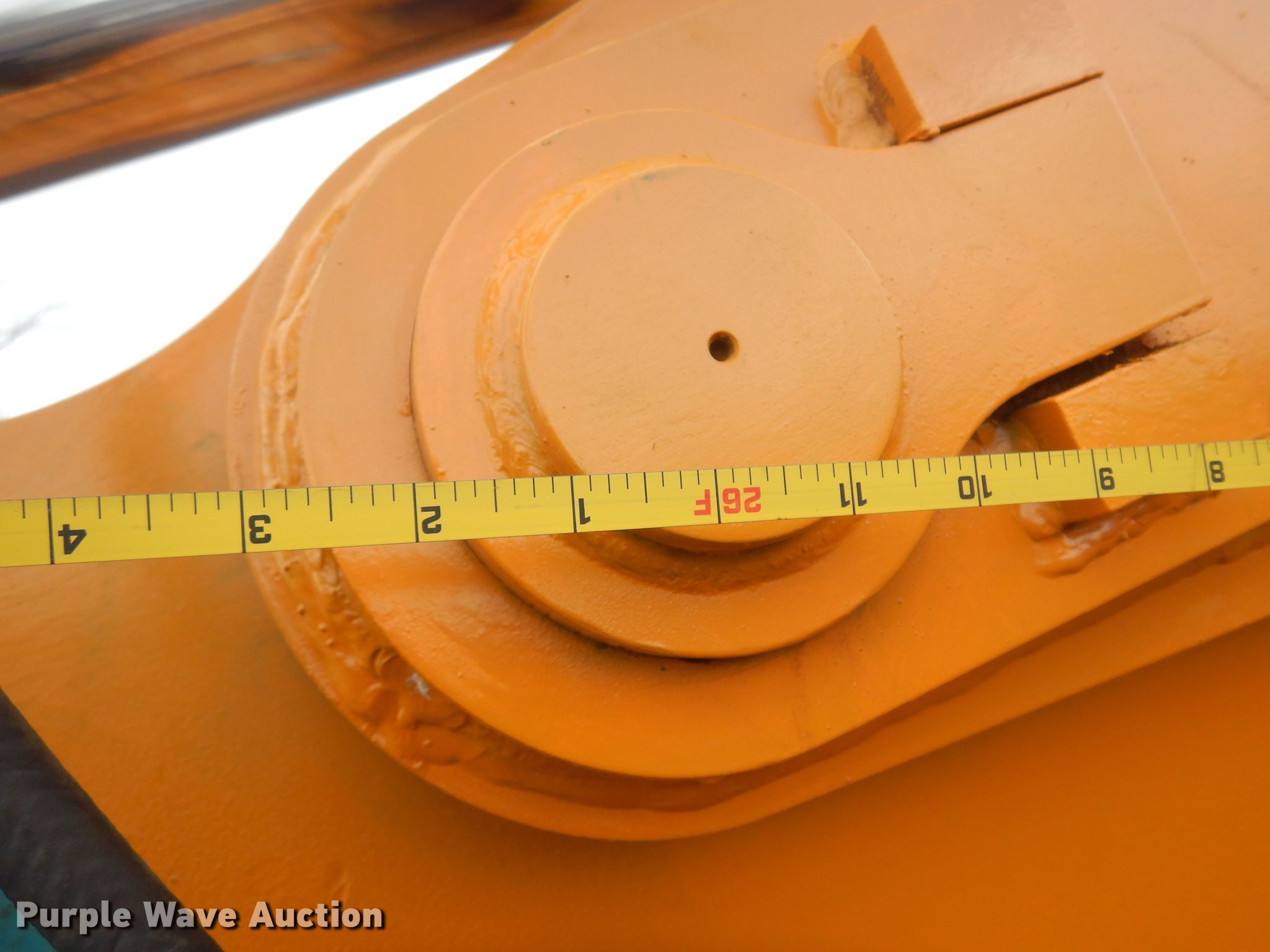 2000 Hyundai Robex 290 LC-3 excavator. Hours: 6,786 on meter, Serial: E903GH11240. Engine Cylinders: 6, Fuel type: Diesel. Transmission Hydrostatic, Two speed travel. Operators station Enclosed cab, Heat. Features Stick Stick length: 26', Long reach, Bucket Width: 60", Cutting edge: Weld-on. Tracks Width: 31", Grouser pads: Triple. Notes Non-operational two speed travel. PMI. 1156 East 120th Avenue North. Belle Plaine, KS 67013