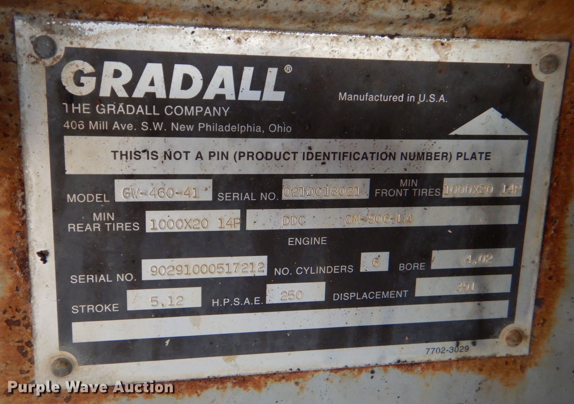 Gradall XL4100 ii wheeled excavator. Miles: 43,405 on odometer, Hours: 9,905 on meter, Serial: 0210018021. Engine Mercedes-Benz OM906LA, Displacement: 388 C.I.D., Cylinders: 6, Fuel type: Diesel, HP: 260. Transmission Manual, Speed: 9. Operators station Enclosed cab, Heat. Features Boom Standard, Bucket Width: 64", Cutting edge: Weld-on. Tires Front: 385/65R22.5, Rear: 11R22.5. Notes Glass cracked, Glass will be replaced prior to auction, Oil cap missing, will be replaced prior to auction. 12 Twelve Road and Bridge LLC. 7049 Texas 42. Kilgore, TX 75662