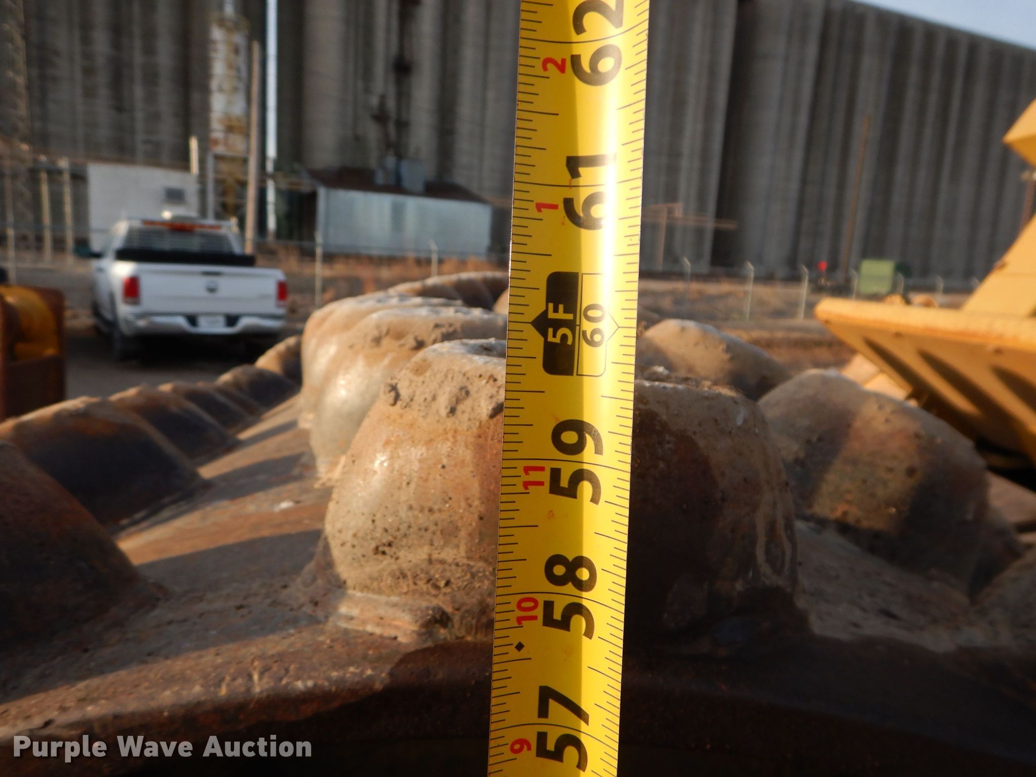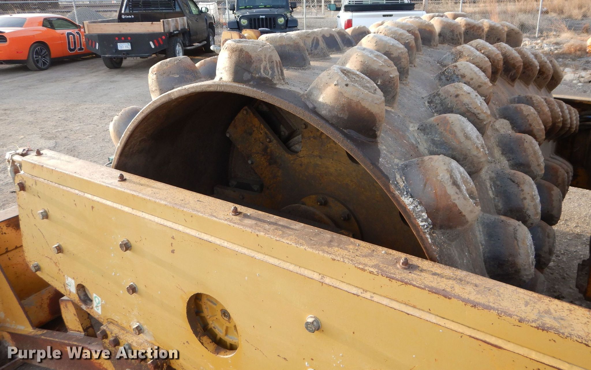 1993 Caterpillar CP563 single drum vibratory roller. Hours: 870 on meter Hour meter has been replaced, Serial: 1YJ00355. Engine Caterpillar 3116, Cylinders: 6, Fuel type: Diesel. Transmission Hydrostatic. Features Drum: Padfoot, Vibratory system: Single, Front drum Width: 84", Drum scrapers: Front, Rear, Front blade width: 108". Tires Size: 23.1-26. Bettis Asphalt. 1800 NW Brickyard Rd. Topeka, KS 66601