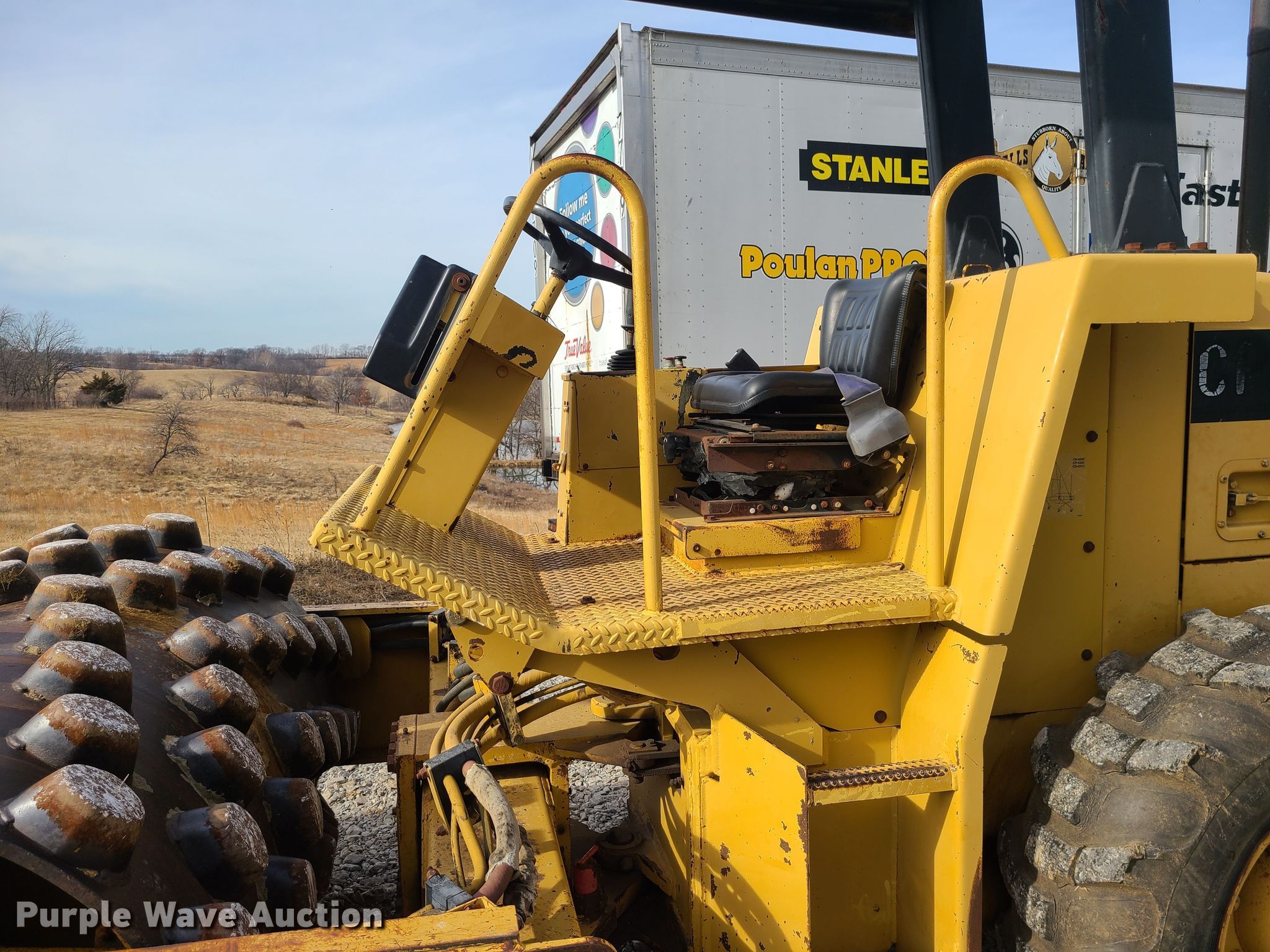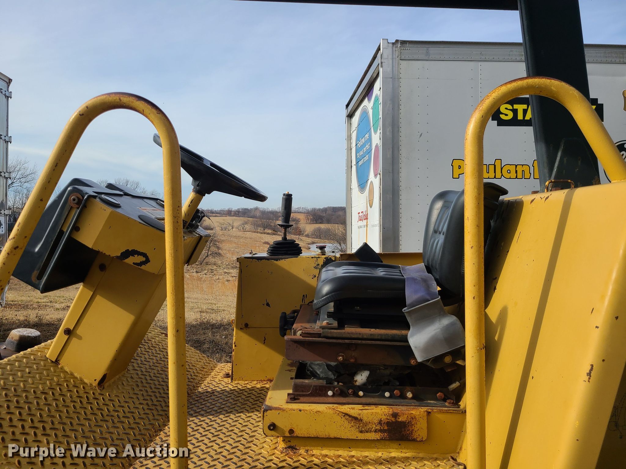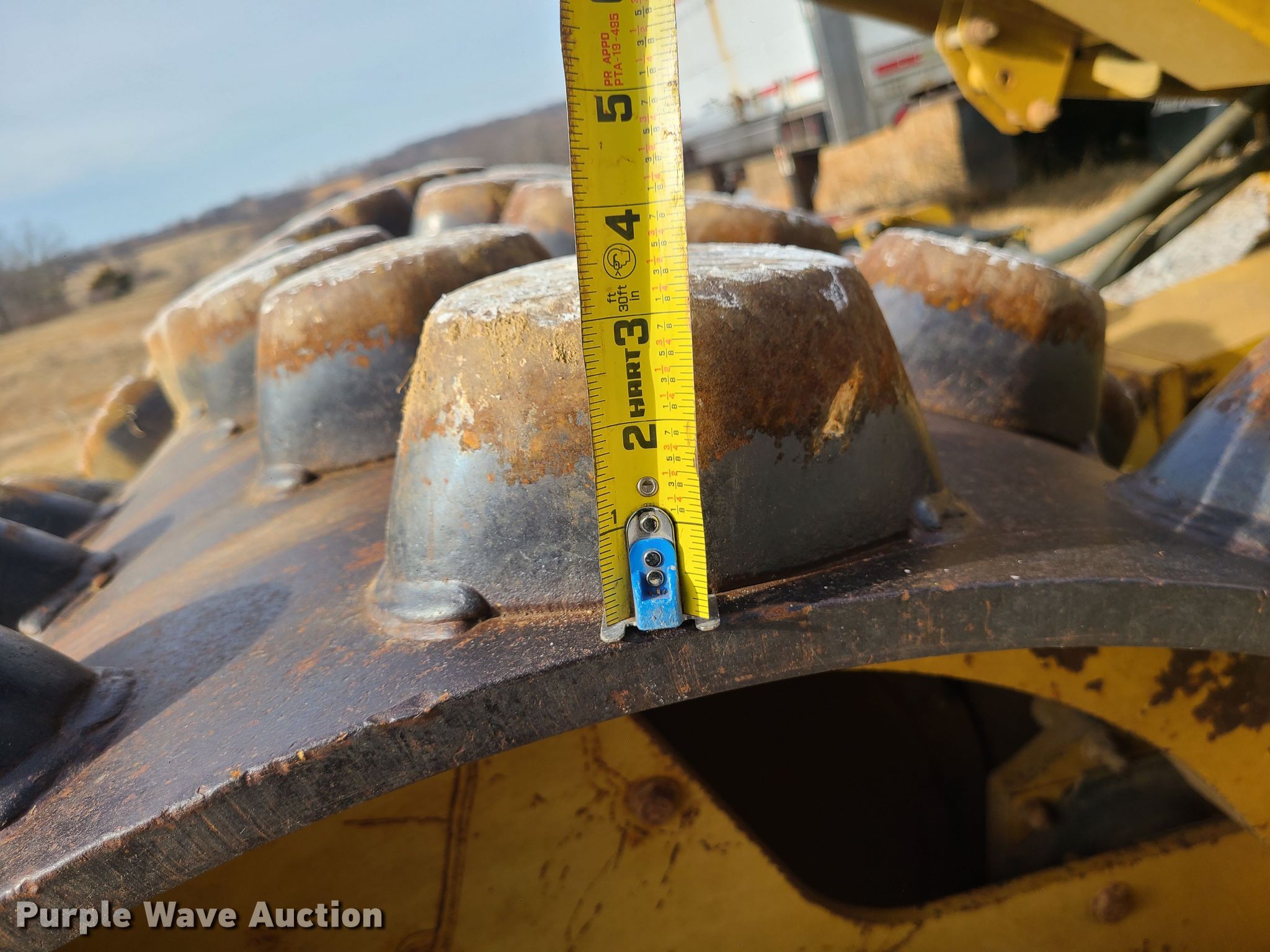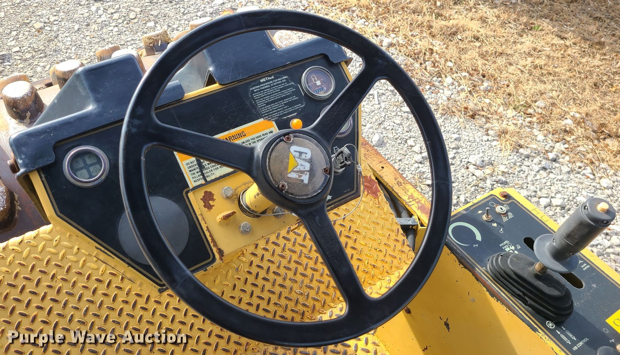 1996 Caterpillar CP433C single drum roller. Hours: 5,054 on meter, Serial: 2JM00341. Engine Cylinders: 4, Fuel type: Diesel. Transmission Hydrostatic. Features Drum: Padfoot, Vibratory system: Single, Front drum Width: 66", Diameter: 42". Tires Size: 14.9-24. 22575 Rt DD. Dearborn, MO 64439