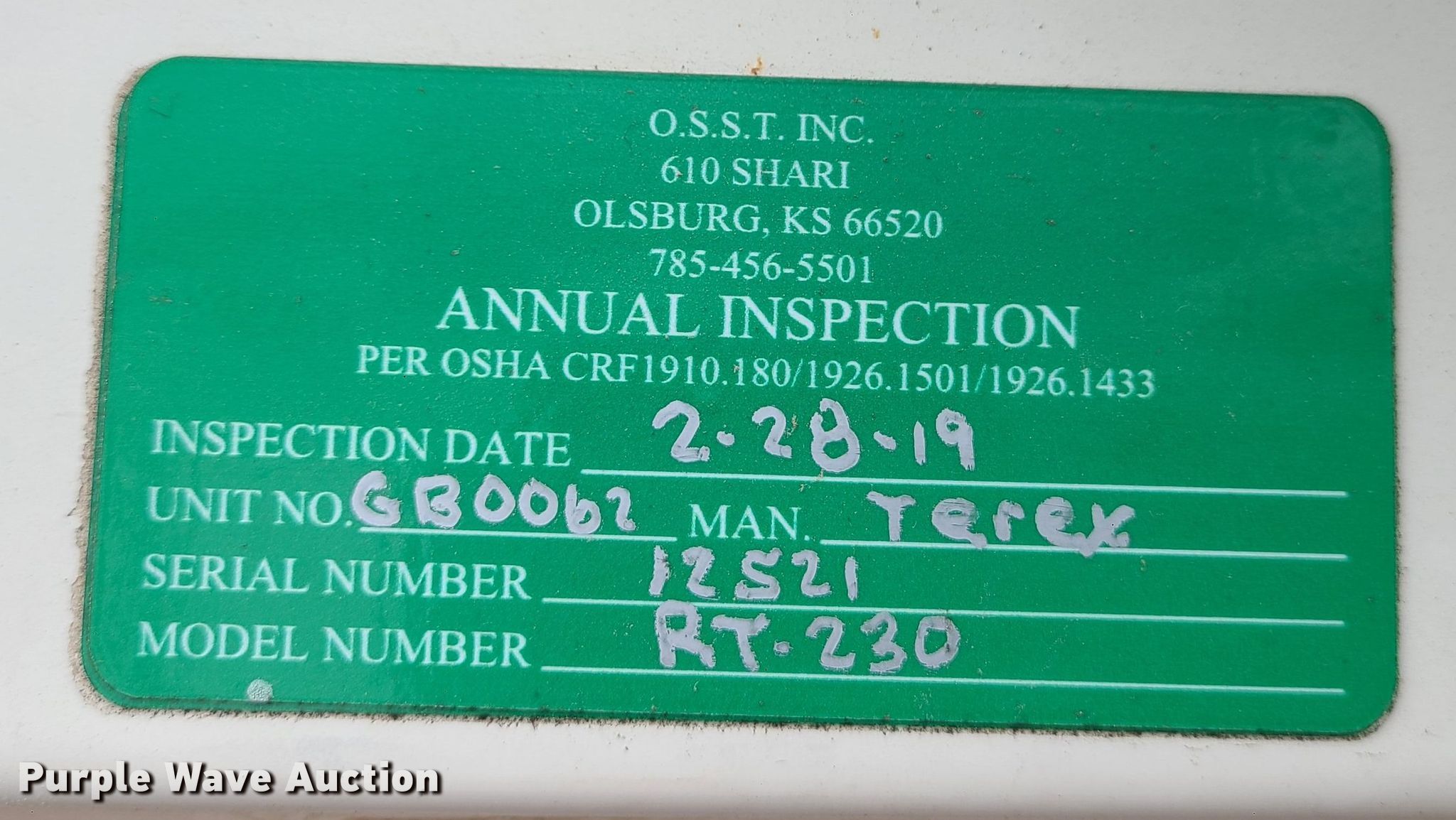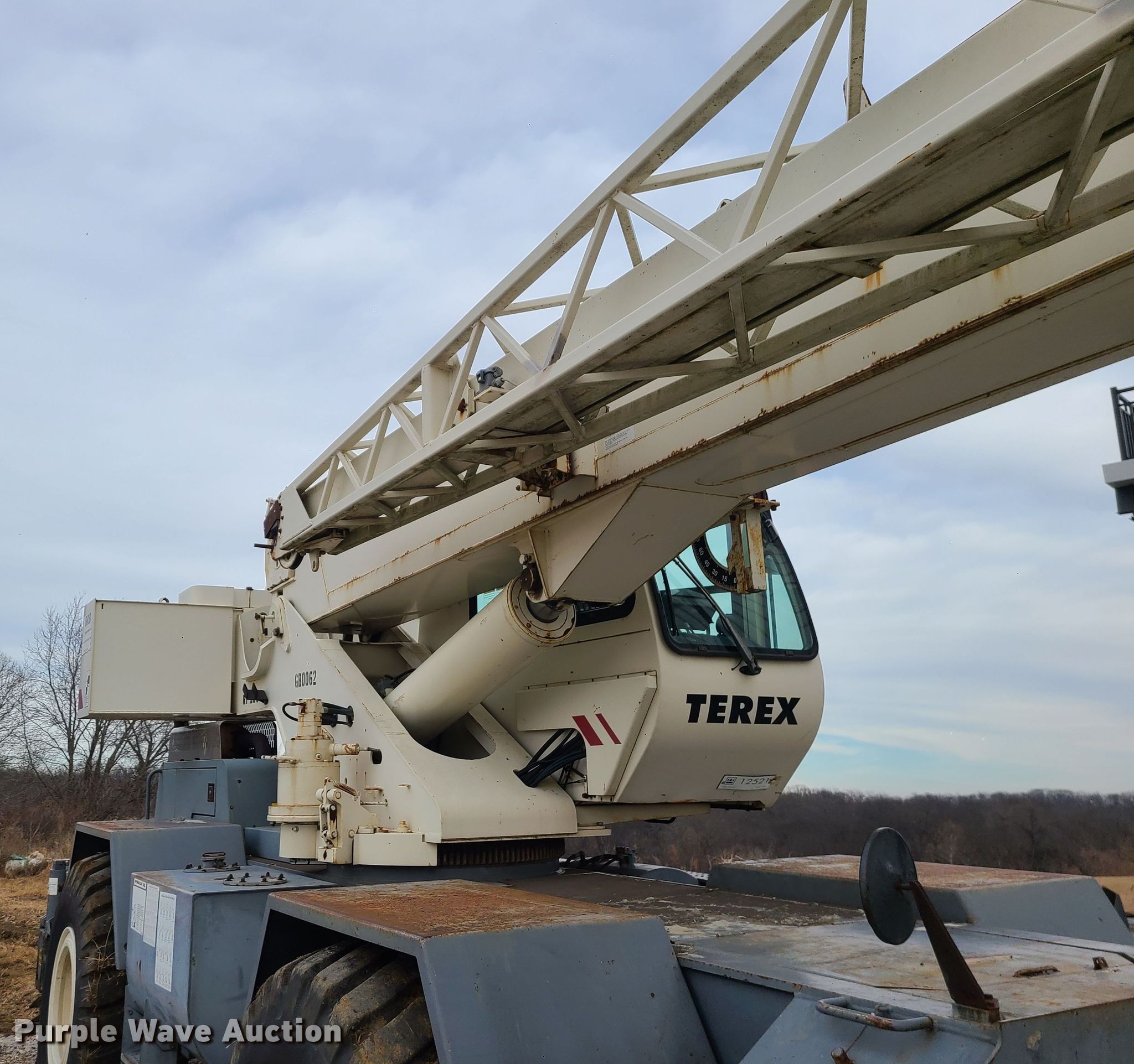 Purple Wave is selling a used Rough or All Terrain Crane in Missouri. This item is a 2001 Terex RT230 crane with the following: Hours: 6,036 on meter, Serial: 12521