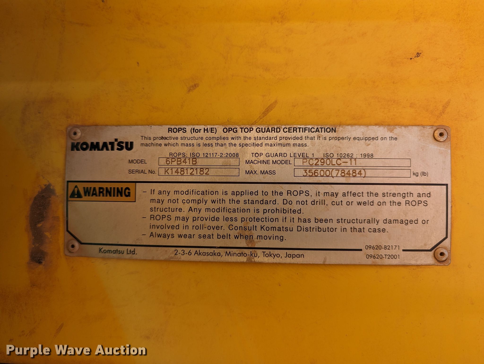 This 2015 Komatsu PC290LC-11 excavator will sell to the highest bidder regardless of price.