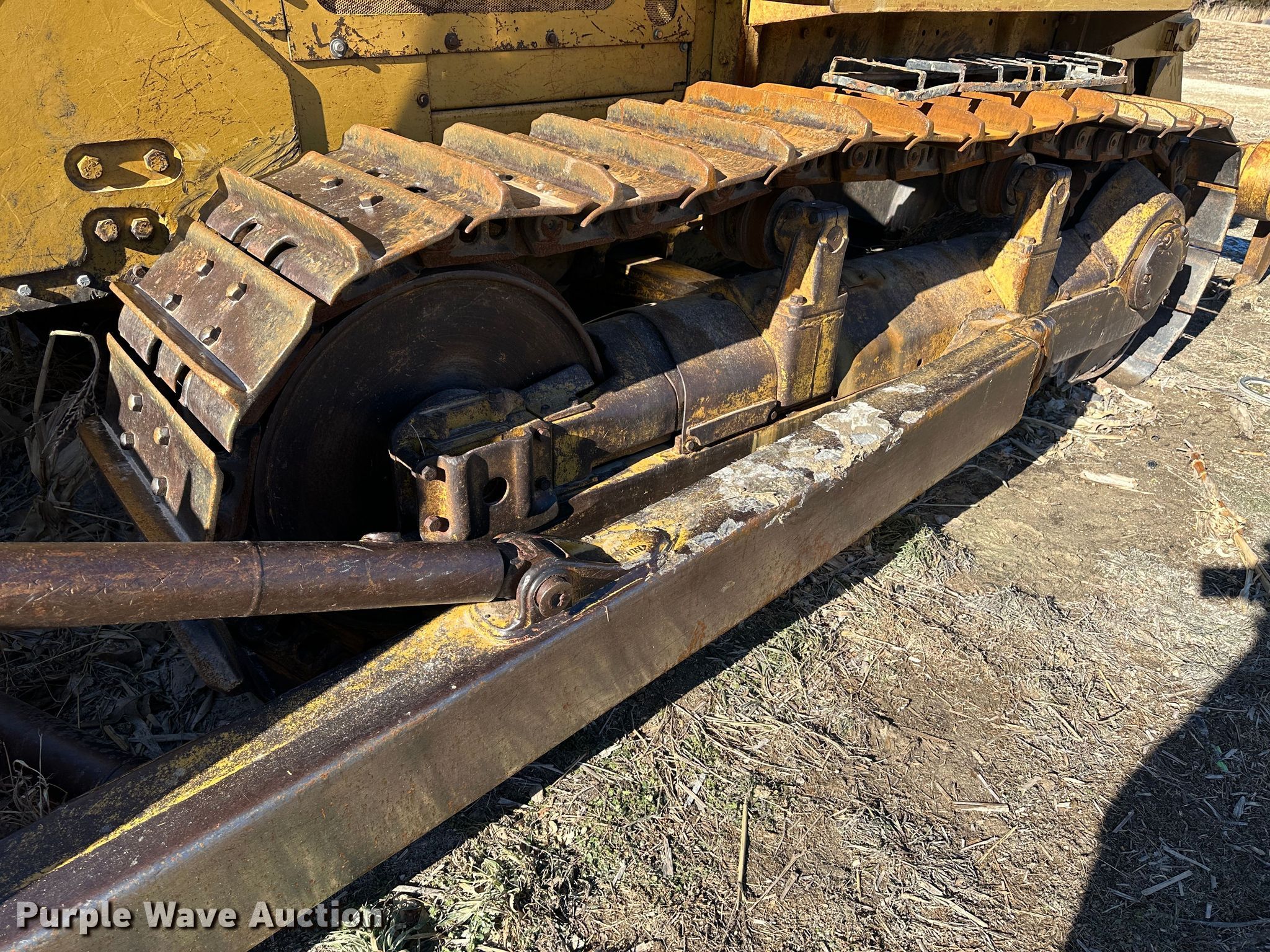 1969 Caterpillar D7E dozer. Serial: 48A13335. Engine Displacement: 13.6L, Cylinders: 4, Fuel type: Diesel. Transmission Powershift, 3F - 3R. Operators station Canopy, Steering: Clutch brake. Features Screen guards, Sweeps, Dozer blade Type: Straight, Single-tilt, Width: 11', Attachments Ripper Shanks: 2.. Tracks Width: 22", Grouser pads: Single, Bottom rollers: 6. Notes Oil pressure issues, Non-operational unit. Mankato, KS 66956