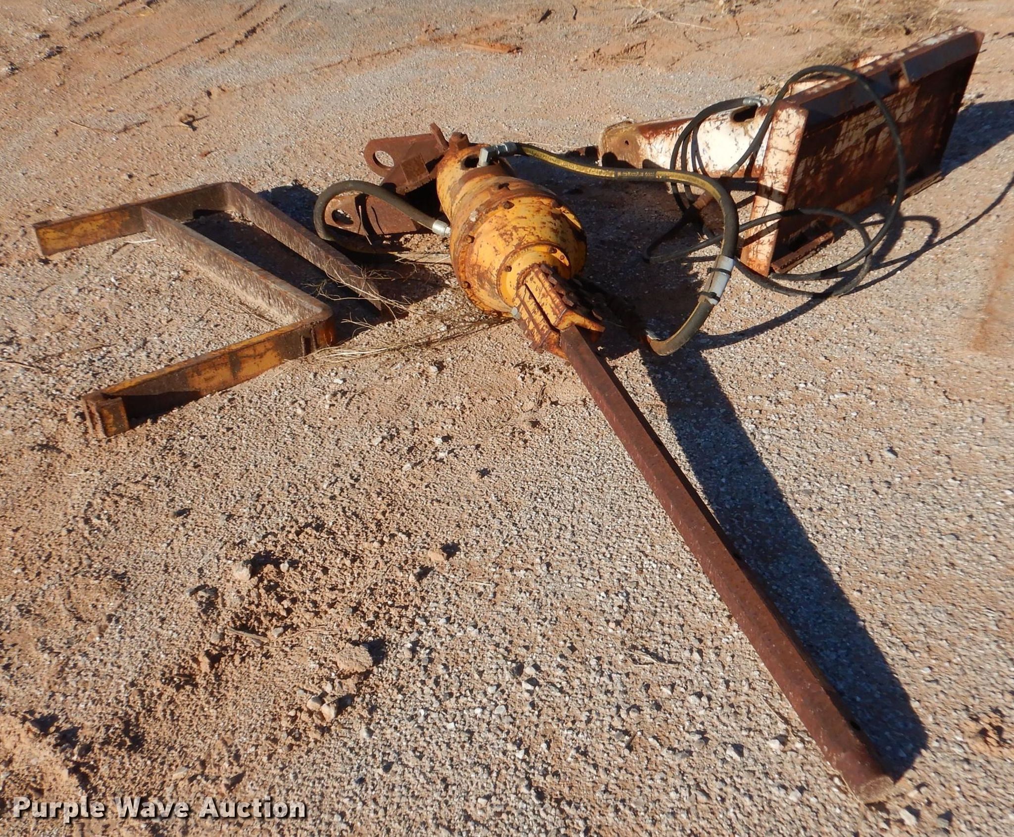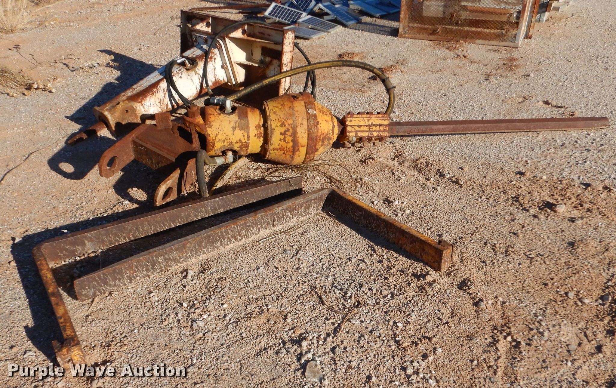 Purple Wave is selling a used Other Attach. or Equip. in Oklahoma. This item is a (3) attachments with the following: Skid steer breaker, Backhoe auger, 48" L forks
