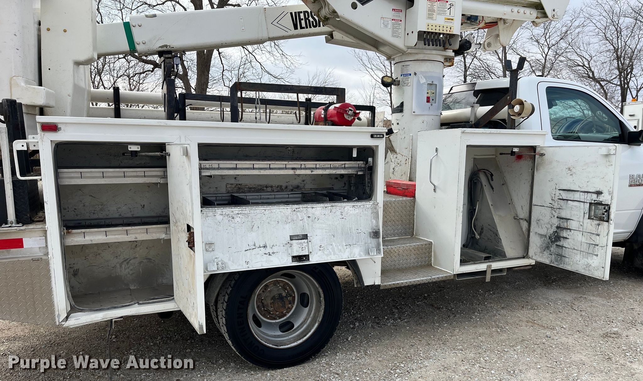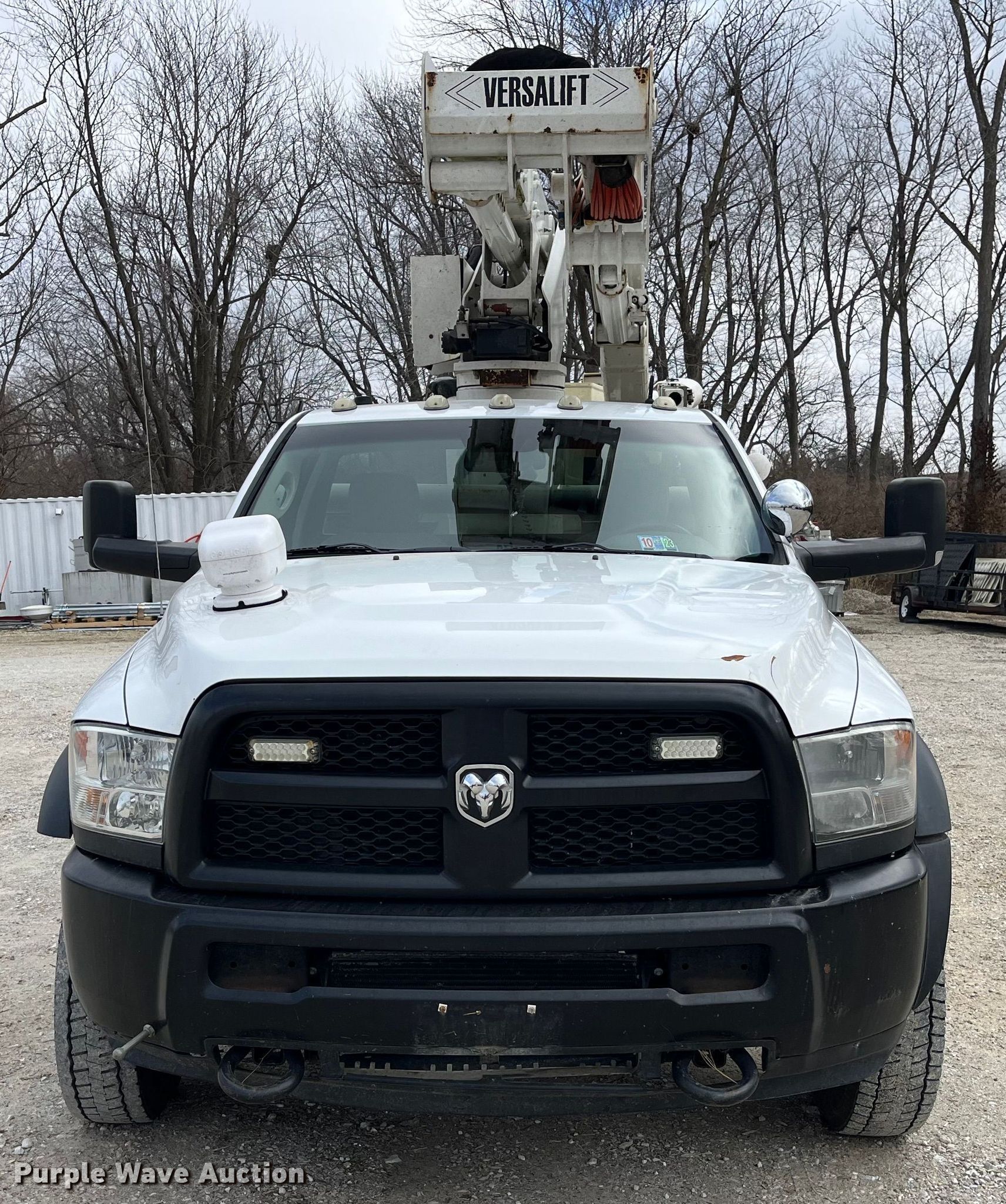 2016 Dodge Ram 5500HD bucket truck. Miles: 222,740 on odometer, VIN: 3C7WRNBL8GG104247. Engine Cummins, Displacement: 6.7L, Cylinders: 6, Fuel type: Diesel. Transmission Automatic. Chassis Four wheel drive, Axles: Single, Suspension: Spring, Brakes: Hydraulic, GVWR: 19,500 lbs. Interior AC, Heat, Heated mirrors, Power windows, Power locks, Cruise control, Auxiliary controls, Brake controller. Features Bed U.S.T. Aluminum Bodies 132DW-AB, Serial: P51058, 14' L x 8' W, Boom Versalift VST-40SI, Serial: LD150005, Boom length: 40', Maximum lift capacity: 400 lbs, Maximum lift height: 45', Boom type: Articulating, Insulated, Telescopic, Man basket, Boom controls Platform/ basket, Material handler. Tires Size: 225/70R19.5. Notes Non-operational utility bed doors. Illinois title. Title distribution may be delayed up to 14 days from verification of funds. Illinois Electrical Coop. 2 South Main Street. Winchester, IL 62694