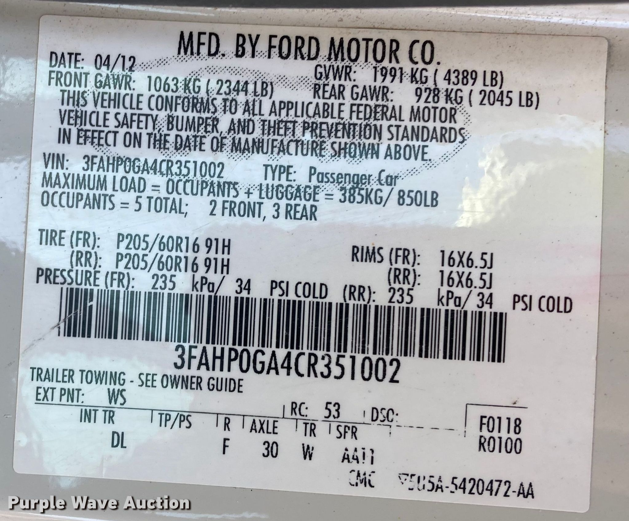 Purple Wave is selling a used Passenger Vehicle in Kansas. This item is a 2012 Ford Fusion with the following: Miles: 165,397 on odometer, VIN: 3FAHP0GA4CR351002
