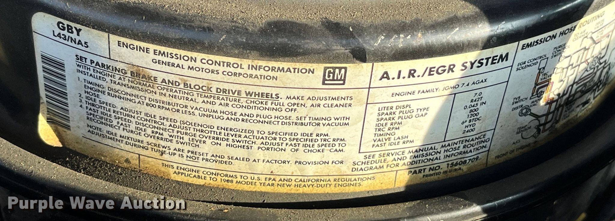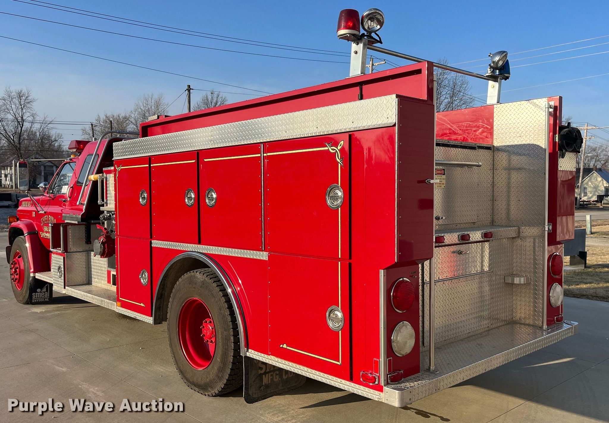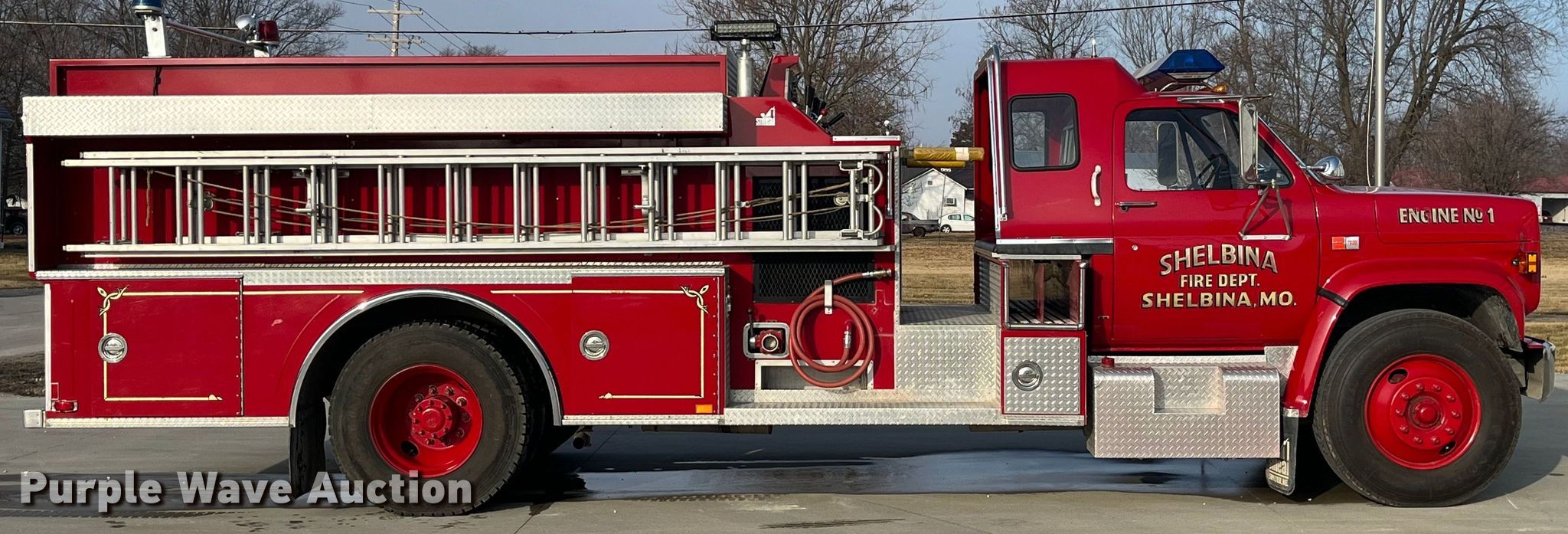 1988 GMC C7000 pumper fire truck. Miles: 7,152 on odometer, VIN: 1GDL7D1E1JV527863. Engine Displacement: 7.0L, Cylinders: 8, Fuel type: Gas. Transmission Manual, Speed: 5, plus 2. Chassis Axles: Single, Suspension: Spring, Brakes: Hydraulic, GVWR: 31,000 lbs. Interior Heat. Features Fire truck body Smeal V-801-XL, Hours: 450 on meter, Pump 1,000 gpm, Fuel type: Gas, PA/ siren controls, (2) extension ladders, Tank Capacity: 1,000 gallons.. Tires Size: 11R22.5. Notes Engine issues, backfires, Non-operational emergency brake. Missouri title. Title distribution may be delayed up to 14 days from verification of funds. Shelbina Fire Protection District. 204 West Chestnut Street. Shelbina, MO 63468