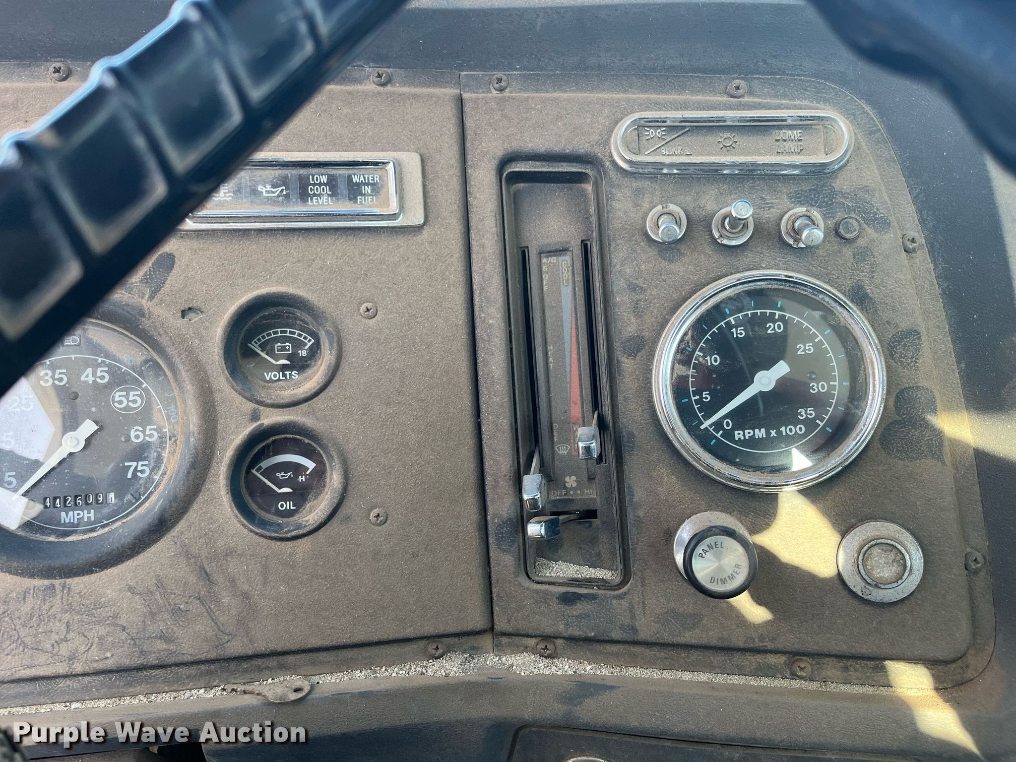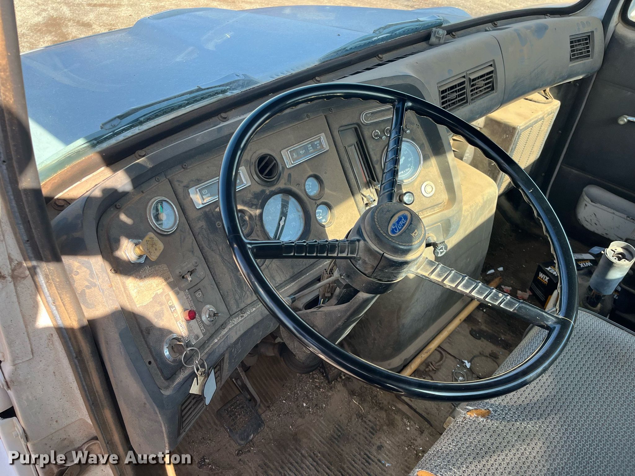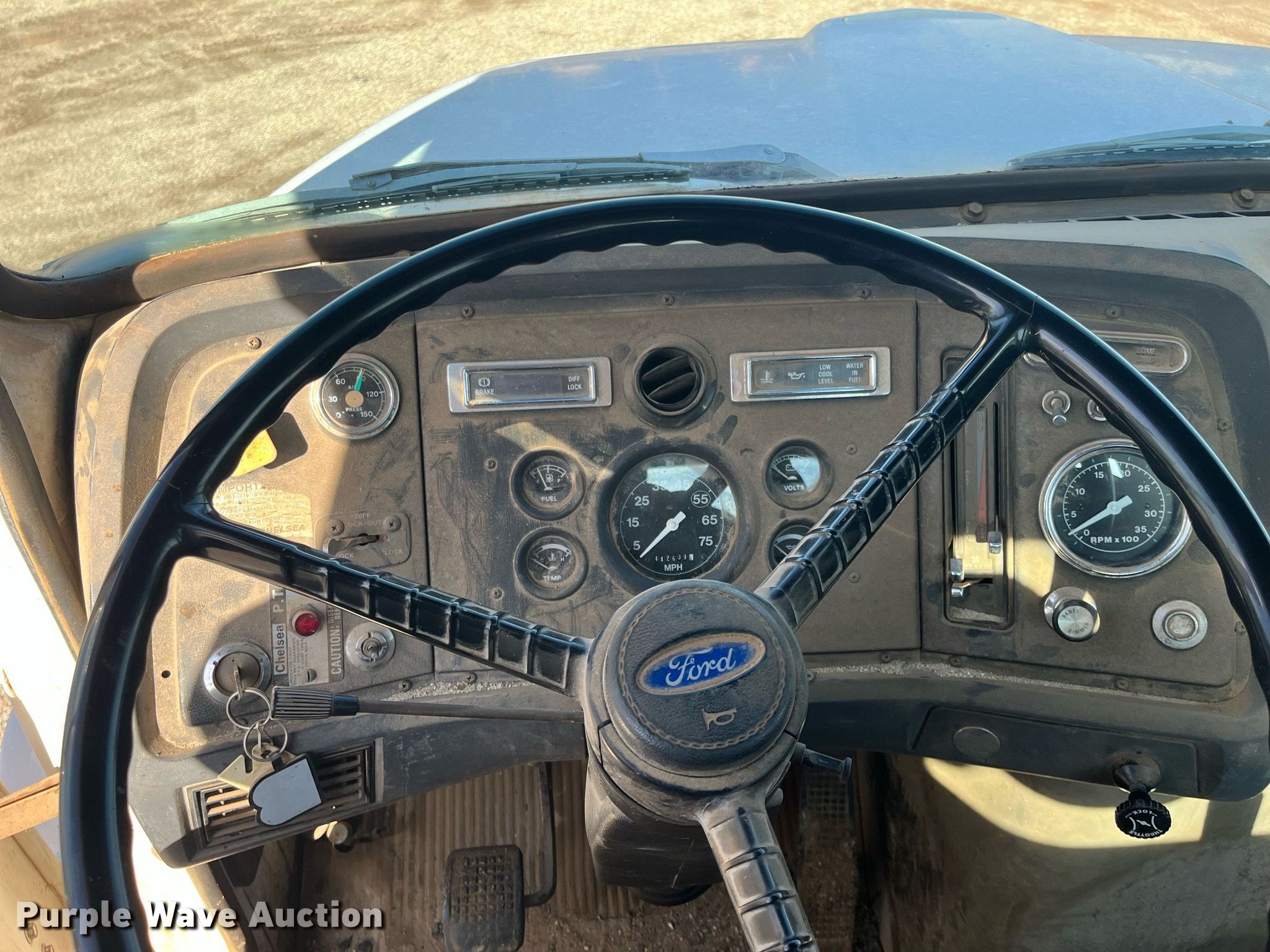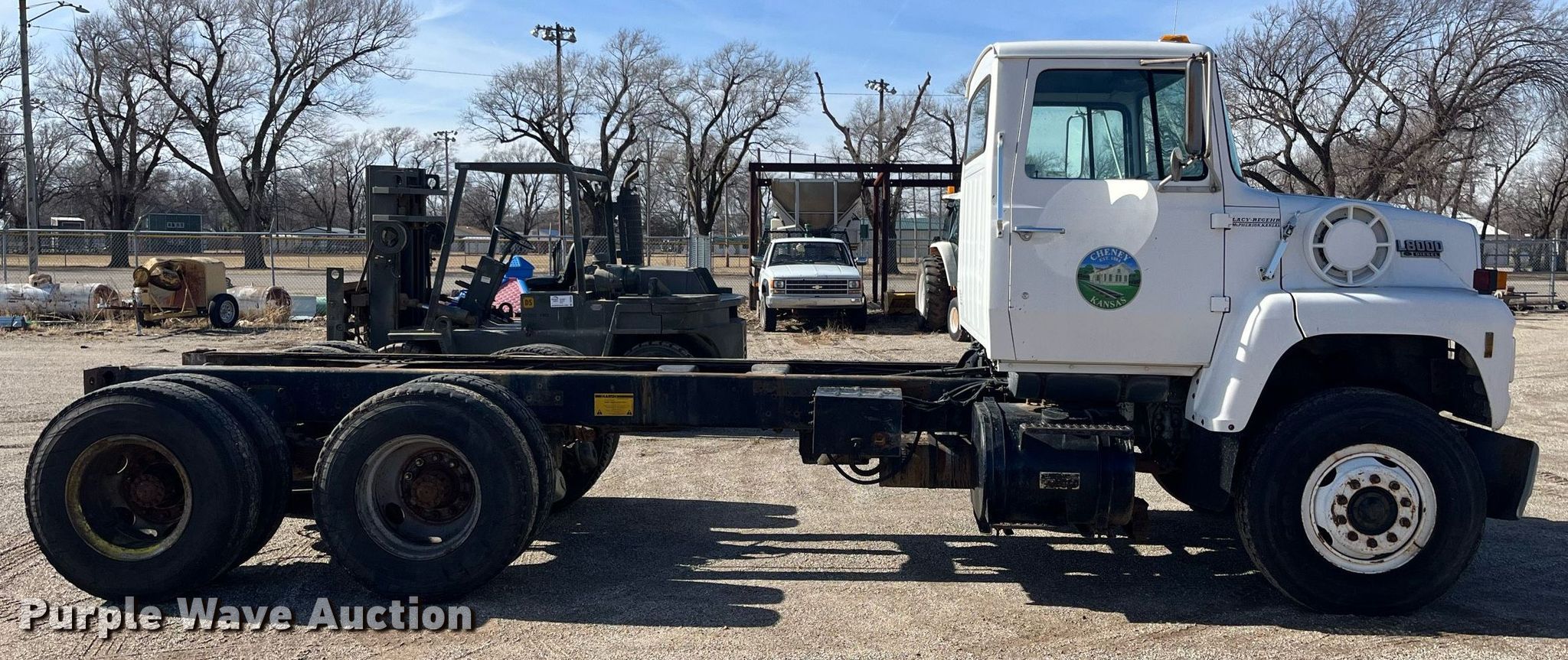 1988 Ford L8000 truck cab and chassis. Miles: 442,609 on odometer Actual mileage unknown, VIN: 1FDYW82A3JVA42670. Engine Displacement: 7.8L, Cylinders: 6, Fuel type: Diesel. Transmission Manual. Chassis Axles: Tandem, Differential lock: Inter-axle, Suspension: Spring over walking beam, Brakes: Air, PTO, Truck chassis: 15' 3", GVWR: 44,800 lbs. Interior AC, Heat. Features Fuel tank: Dual. Tires Front: 10.00R20, Rear: 11R22.5. Kansas title. Title distribution may be delayed up to 14 days from verification of funds. City of Cheney. 311 East South Avenue. Cheney, KS 67025