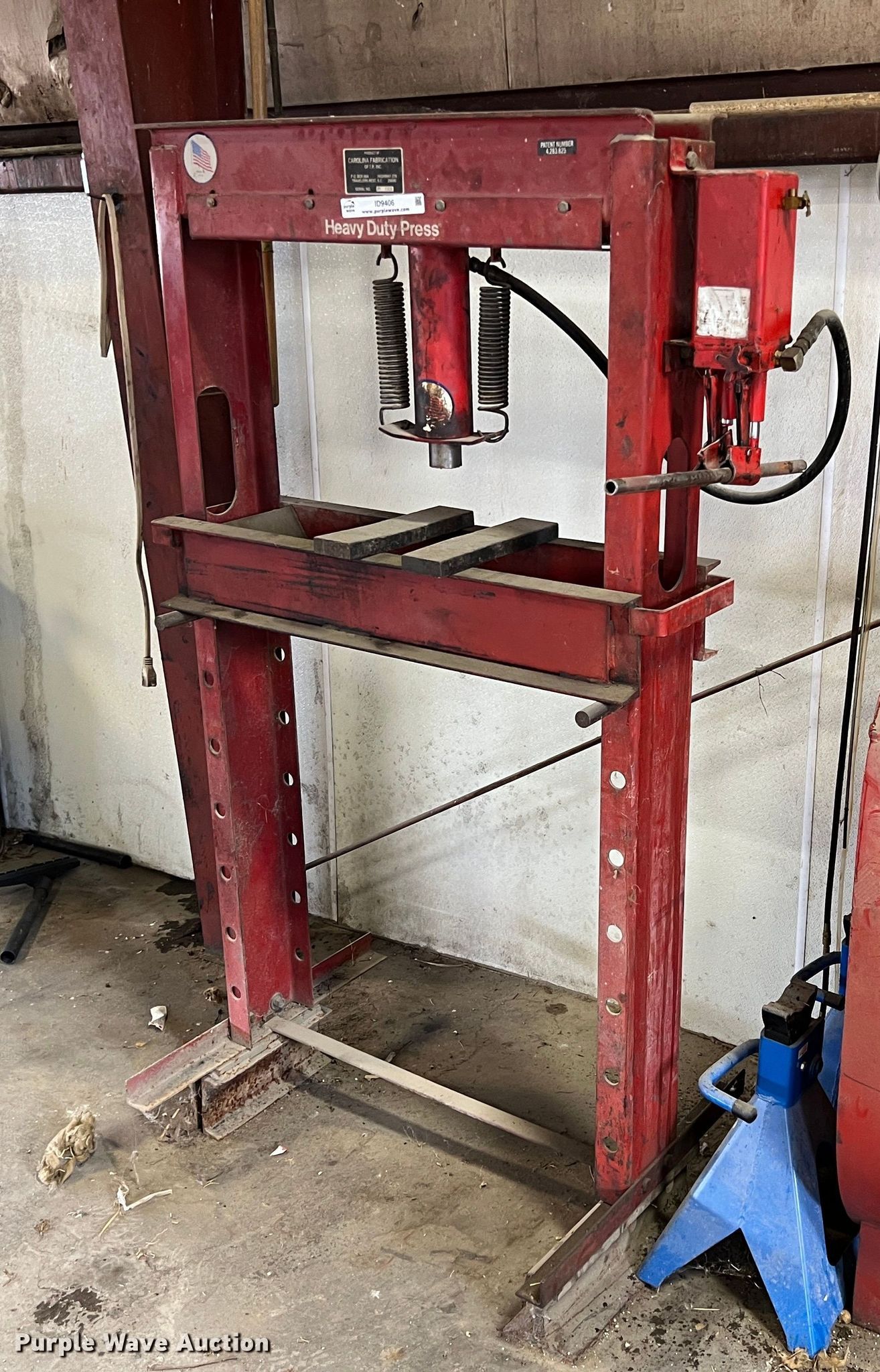 Purple Wave is selling a used Tools in Kansas. This item is a Carolina Fabrication hydraulic press with the following: Serial: CF6956