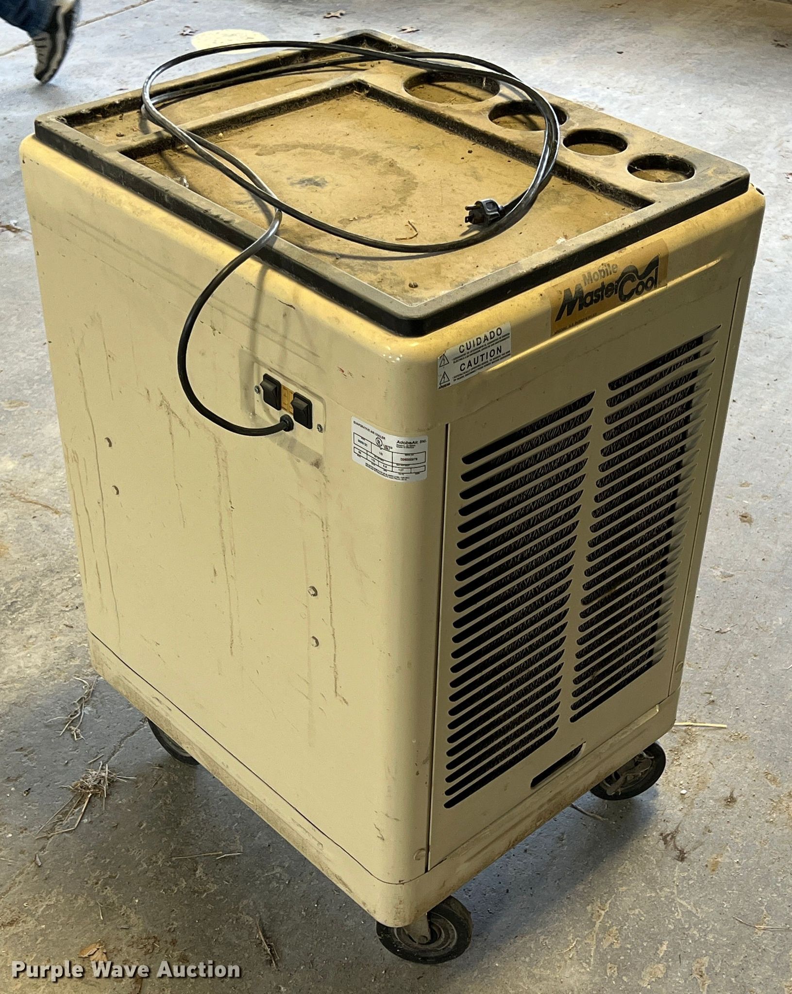 Purple Wave is selling a used All Other Household Items in Kansas. This item is a Adobe Air Master Cool air conditioner with the following: Single phase, 115 V, 1/3 HP, Serial: D06000978