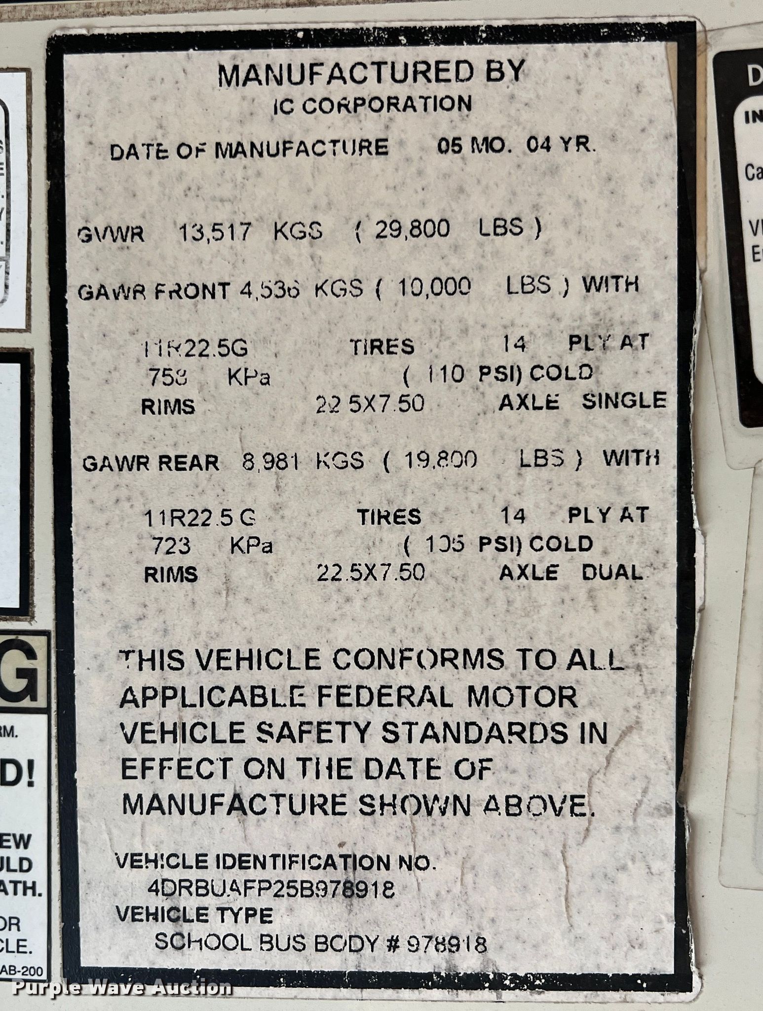 Purple Wave is selling a used Bus in Oklahoma. This item is a 2005 IC PB105 school bus with the following: Miles: 138,771 on odometer, VIN: 4DRBUAFP25B978918
