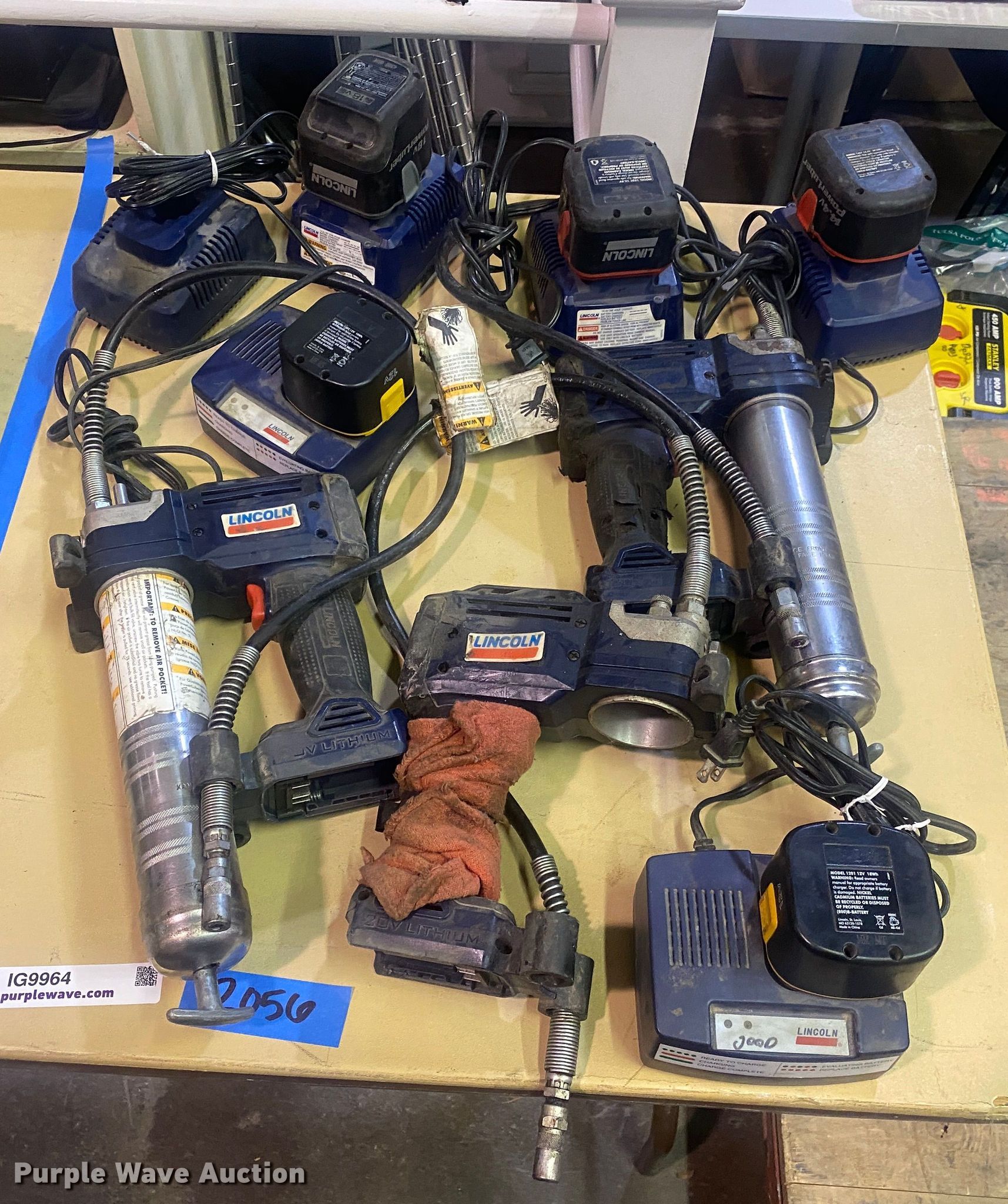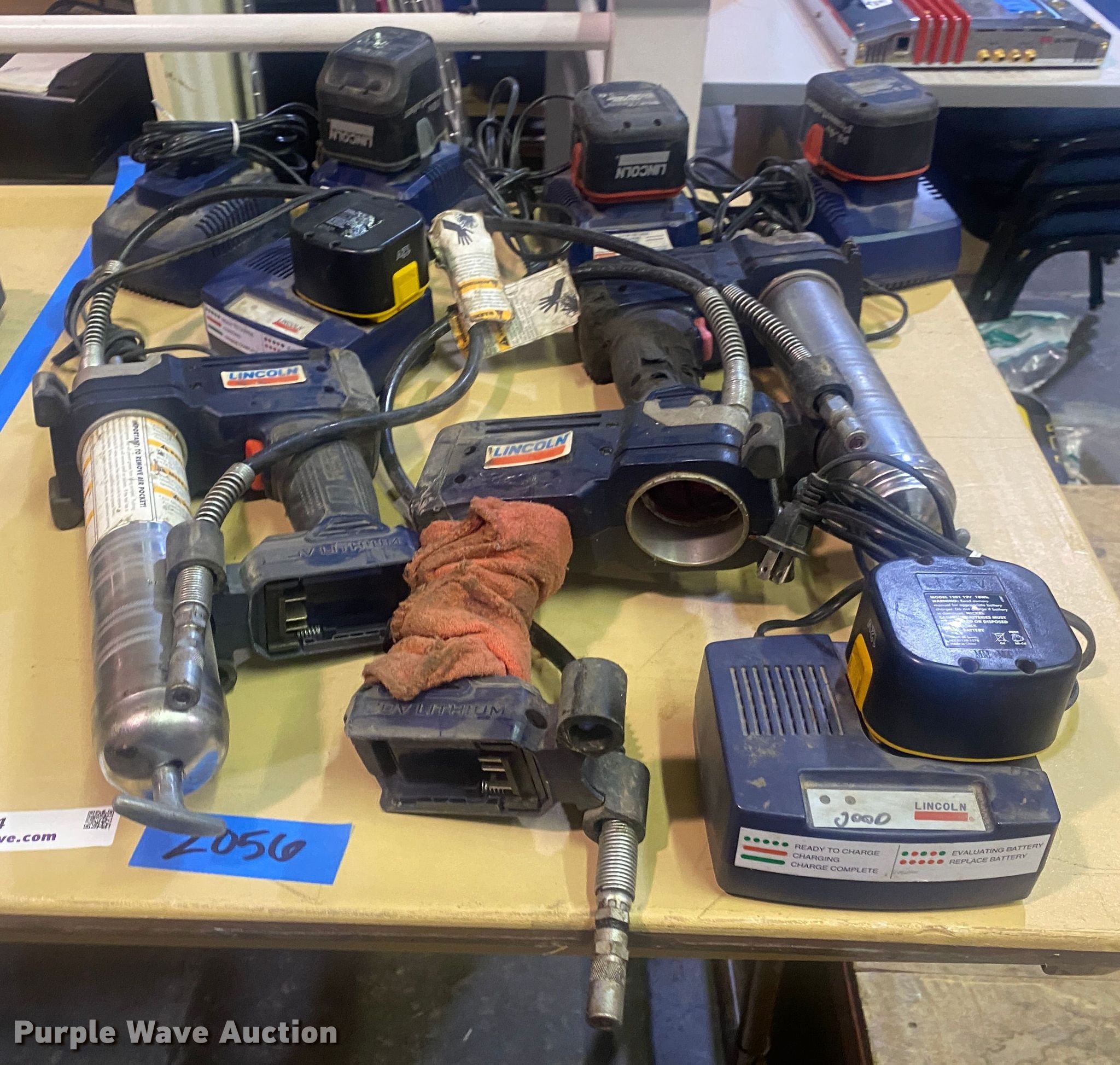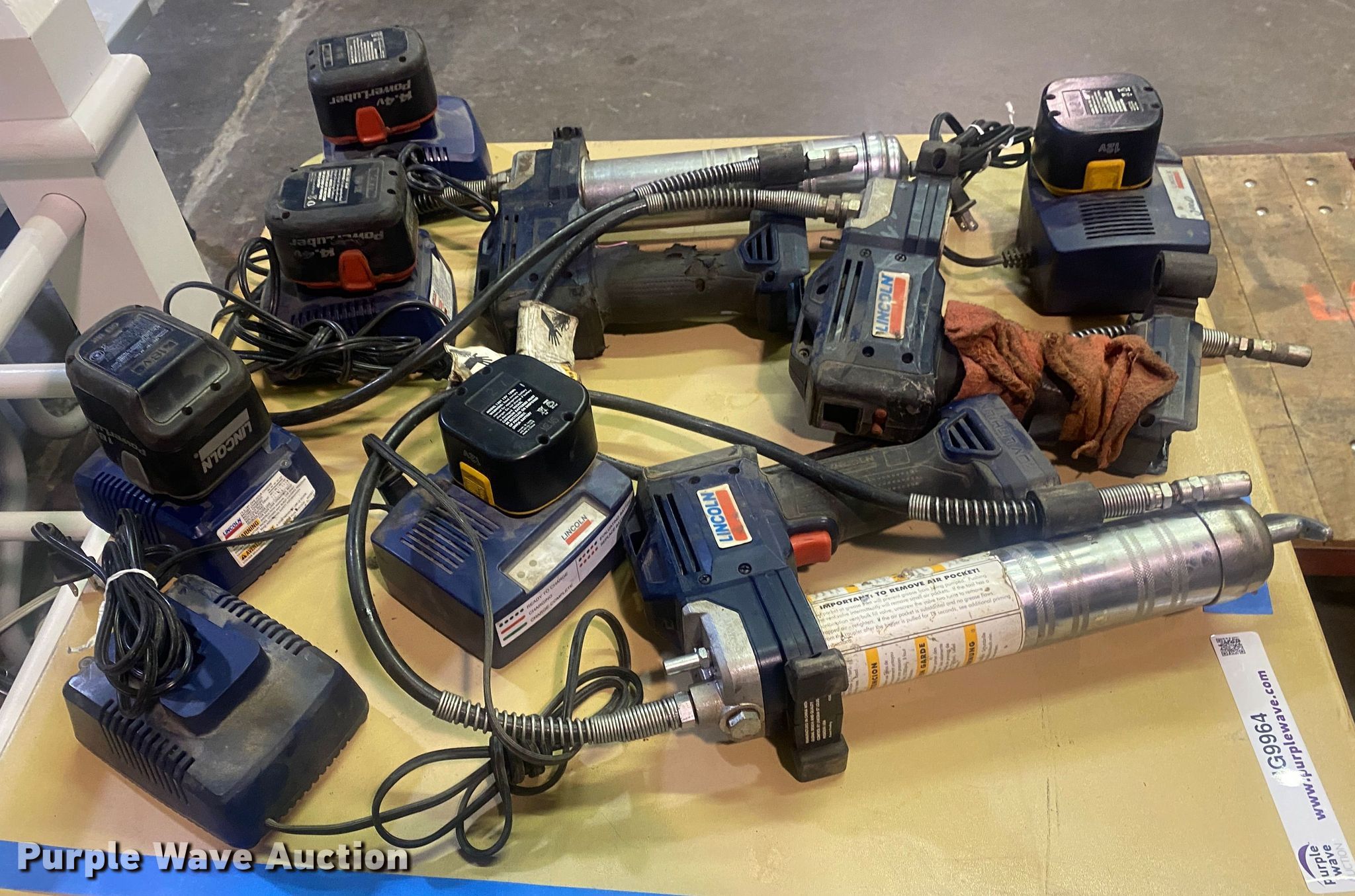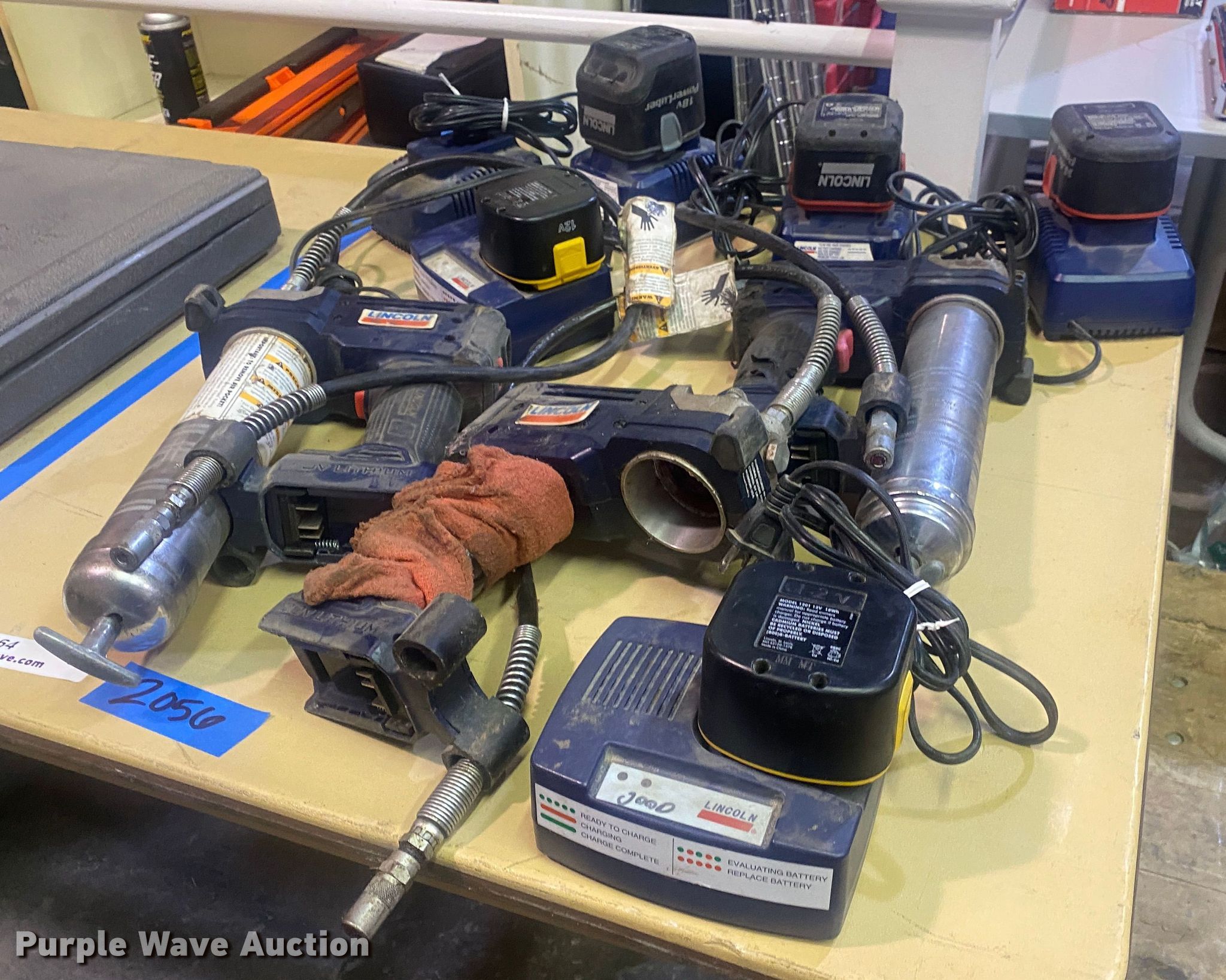 Purple Wave is selling a used Tools in Oklahoma. This item is a Lincoln 1880 PowerLuber Series A grease gun with the following: Batteries, Chargers, Unit #: 2056