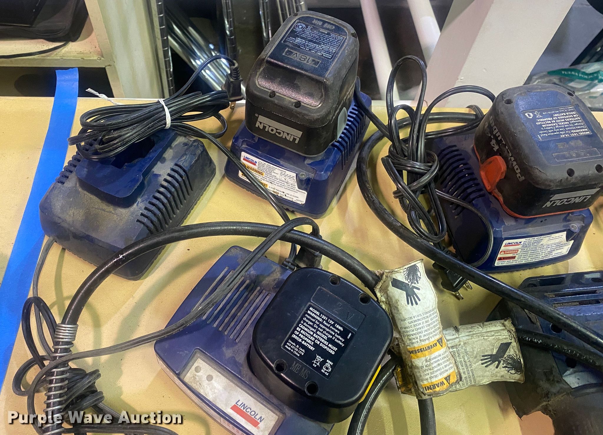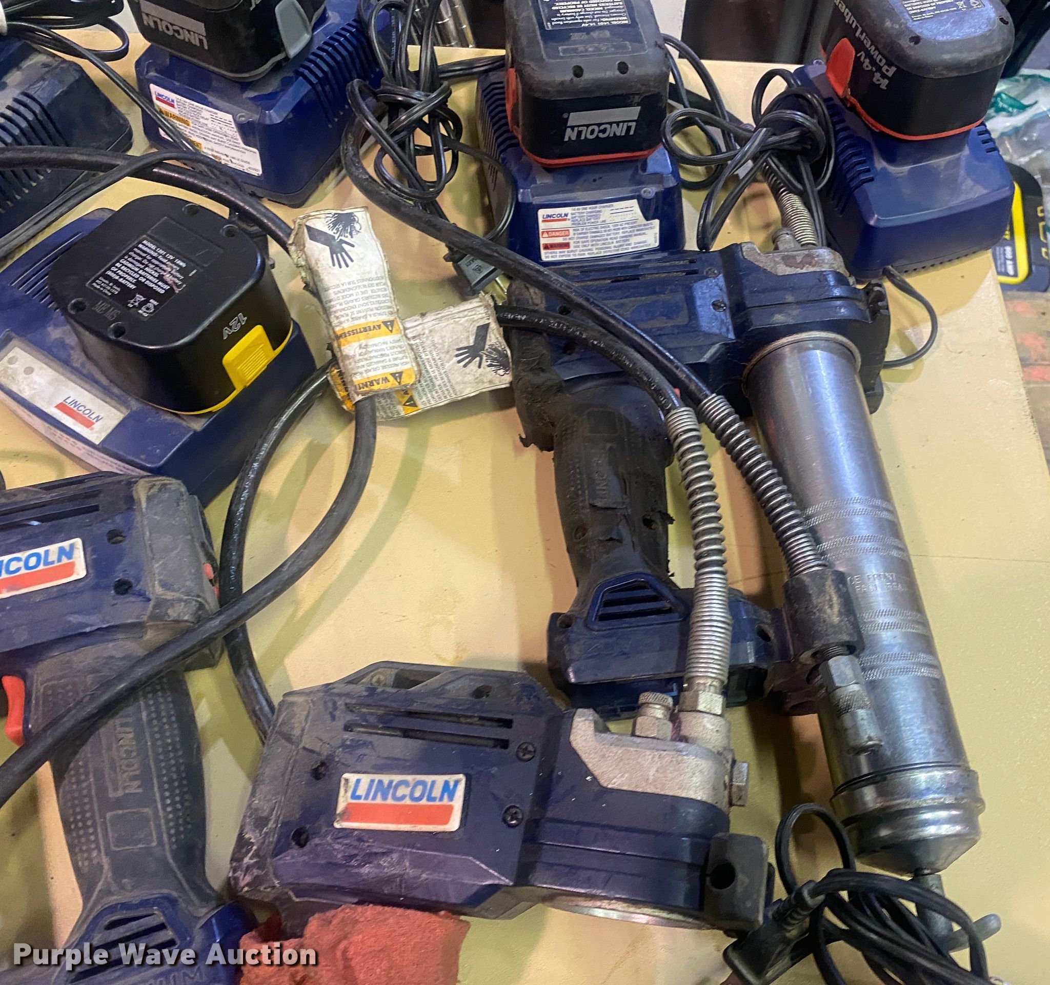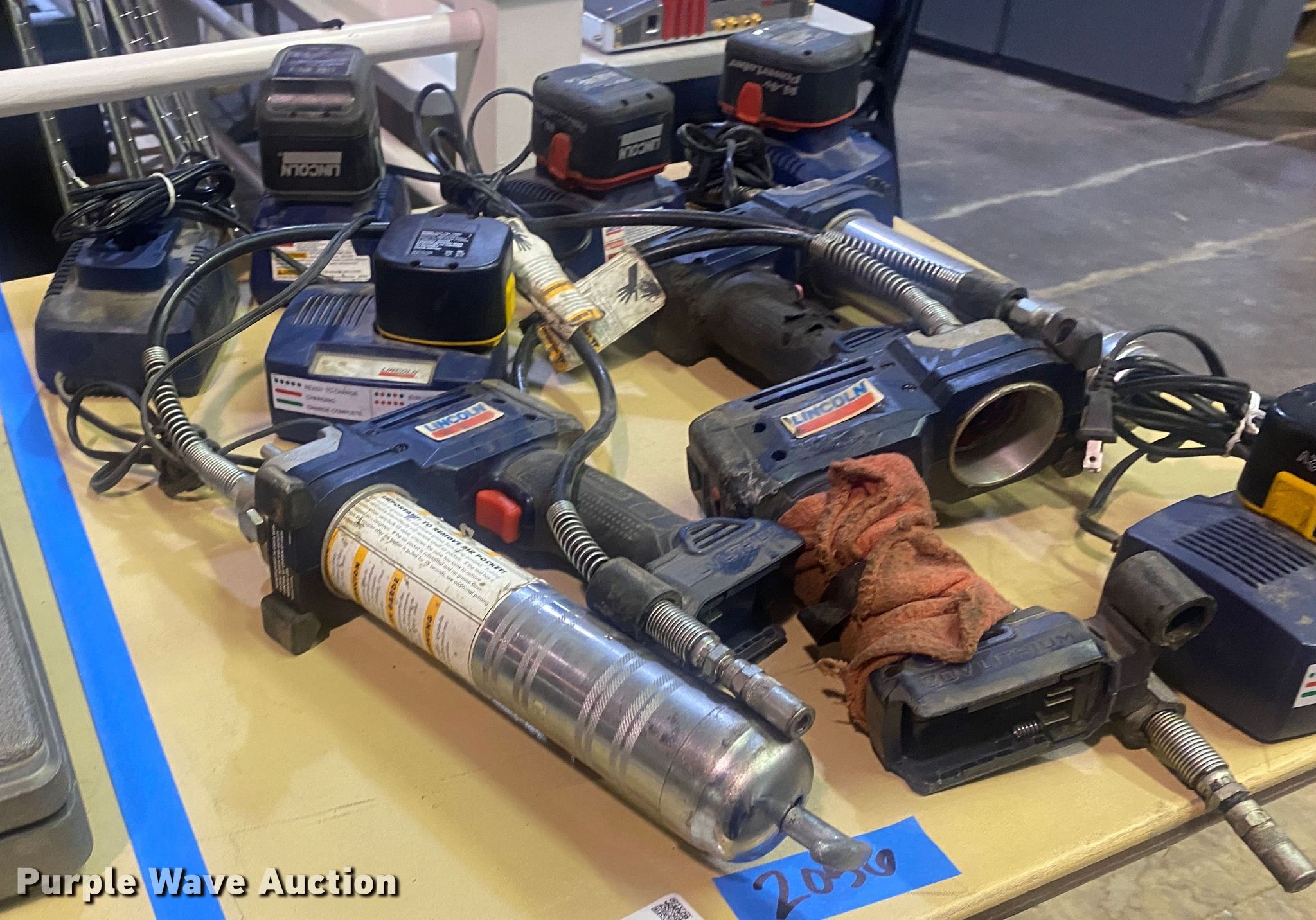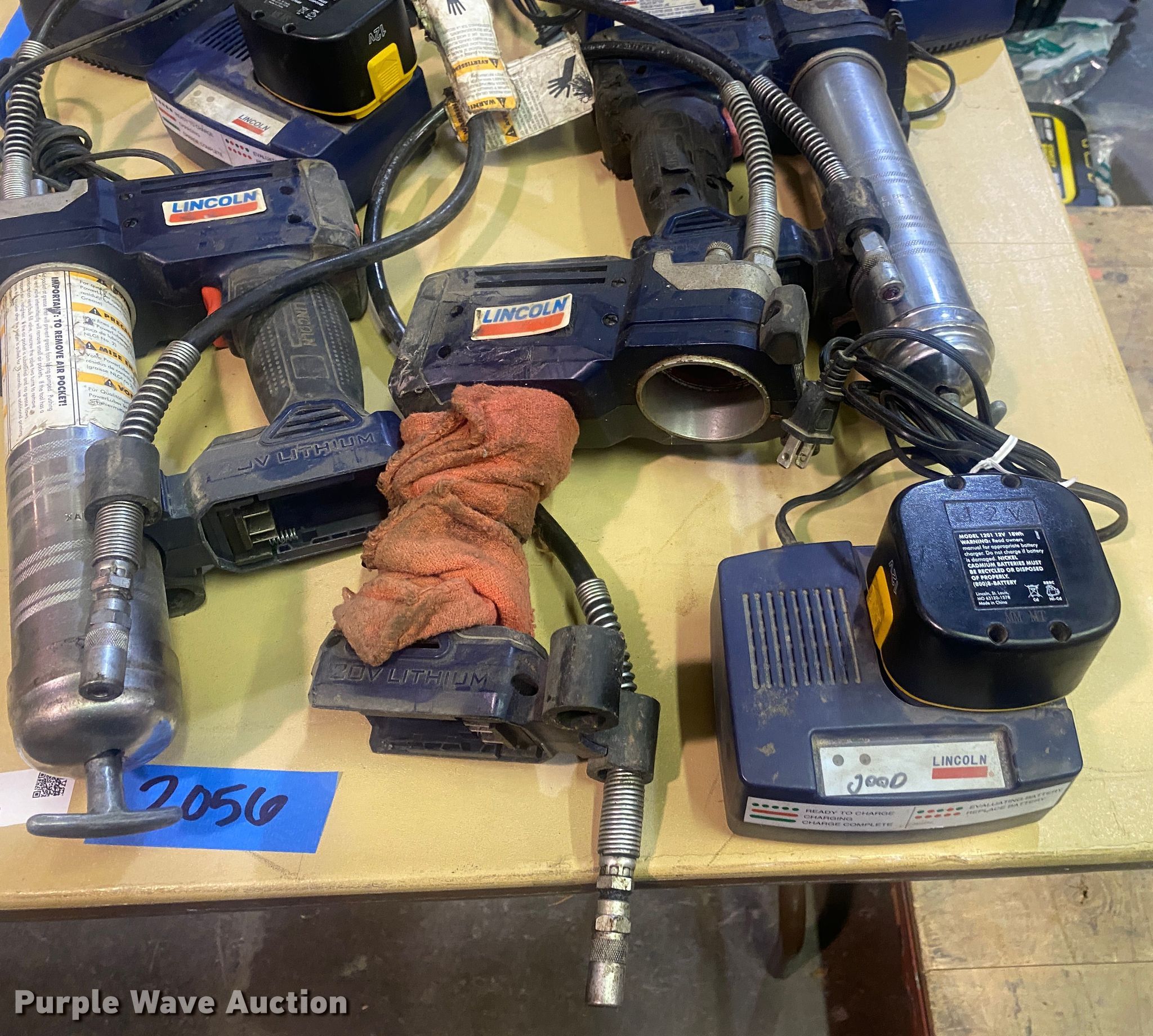 Purple Wave is selling a used Tools in Oklahoma. This item is a Lincoln 1880 PowerLuber Series A grease gun with the following: Batteries, Chargers, Unit #: 2056