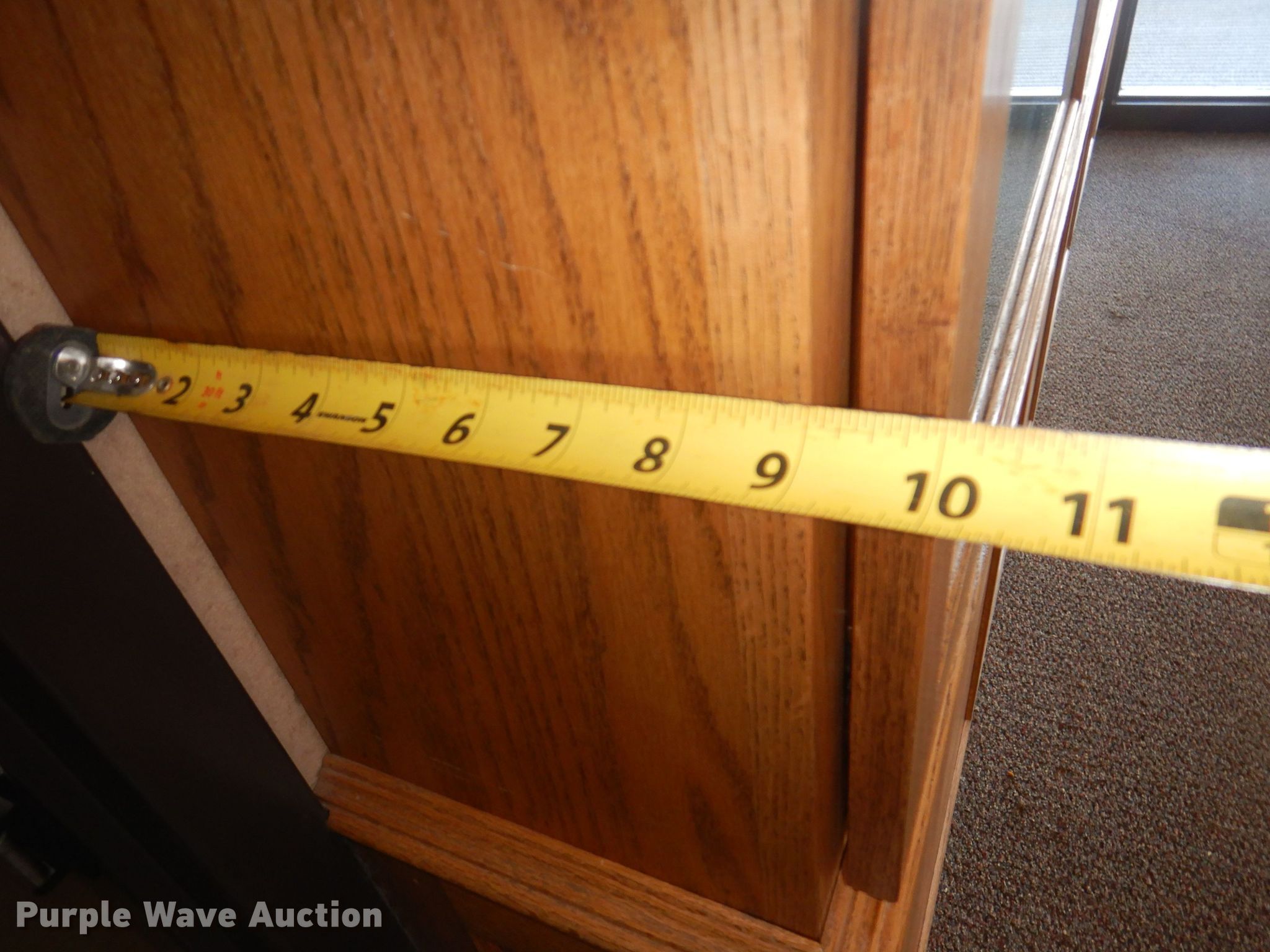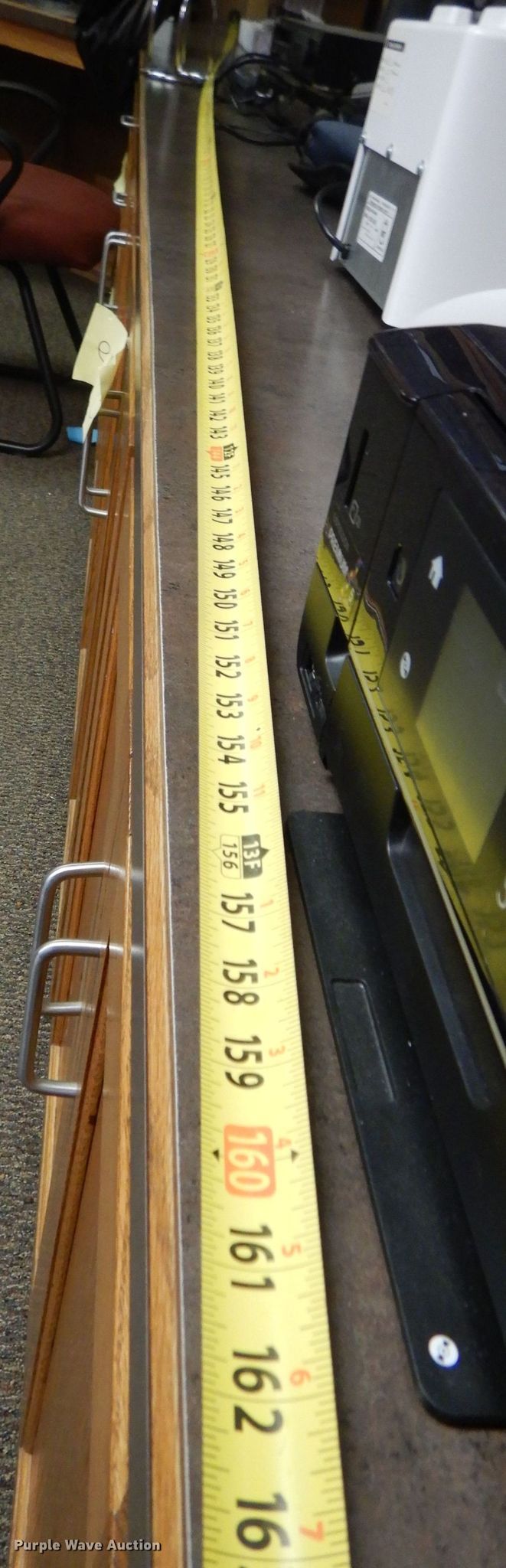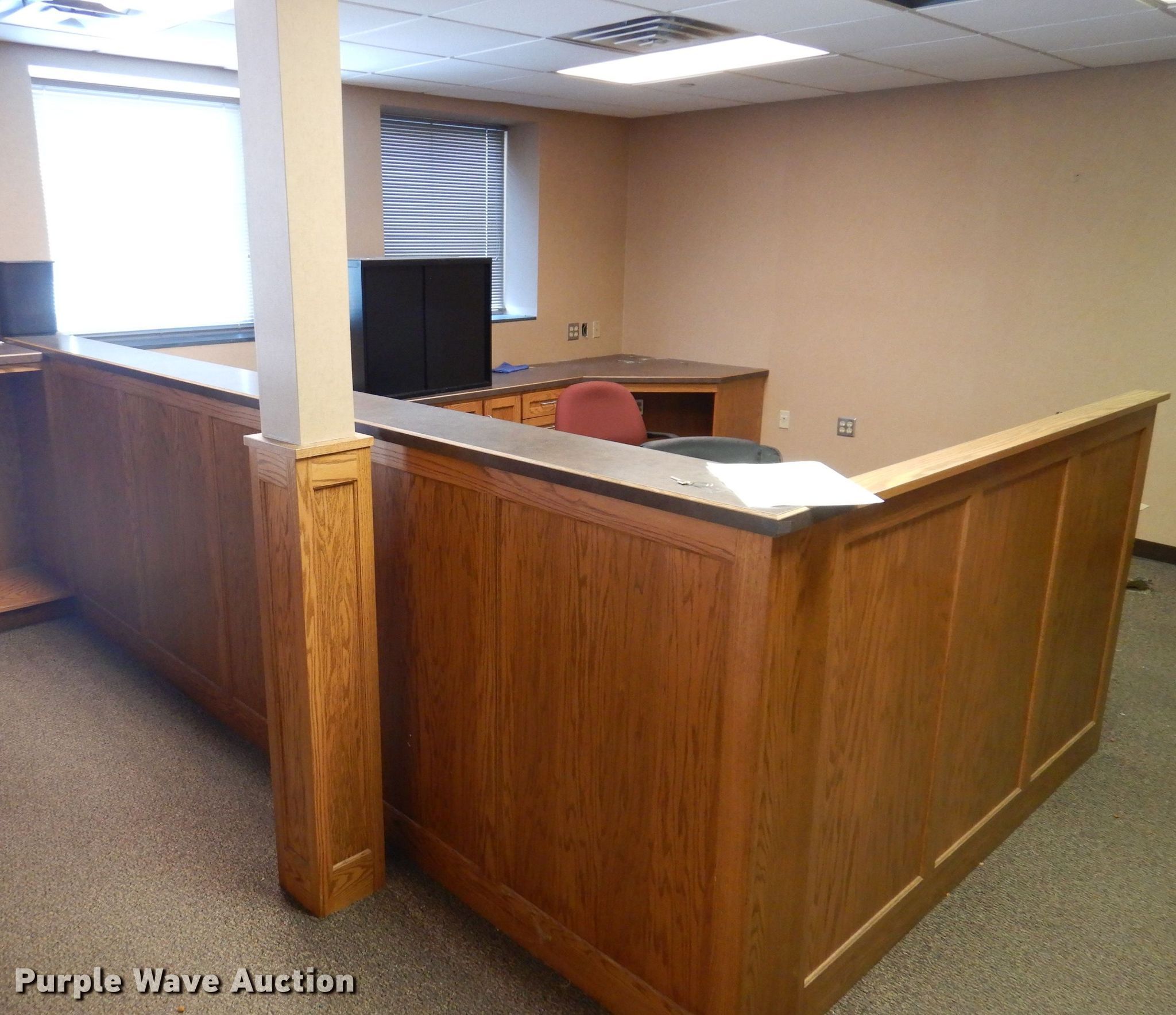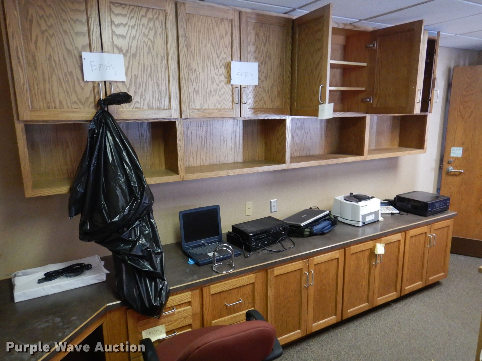 Purple Wave is selling a used Furniture in Iowa. This item is a Furniture with the following: Display cabinet, 133" x 10" x 92", Service counter, 128" x 24" x 44", Service counter window, 128"x 38", Wall cabinet, 11' x 12" x 42", Wall desk, 166" x 4' x 29", Desk, 160" x 73" x 152", Contents not included