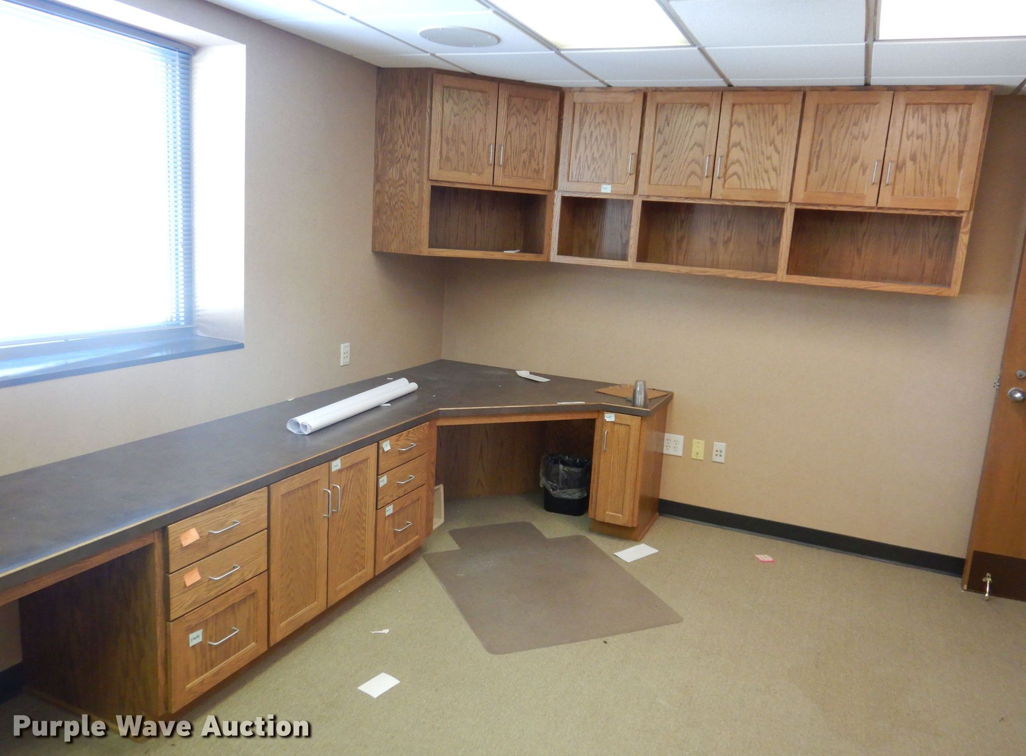 Purple Wave is selling a used Building Materials in Iowa. This item is a Cabinets with the following: Floor cabinets, 234" x 110" x 59" x 29" H, Wall cabinets, (2) 110" x 1' x 3', 12' x 1' x 3', 22" x 8" x 38", Contents not included