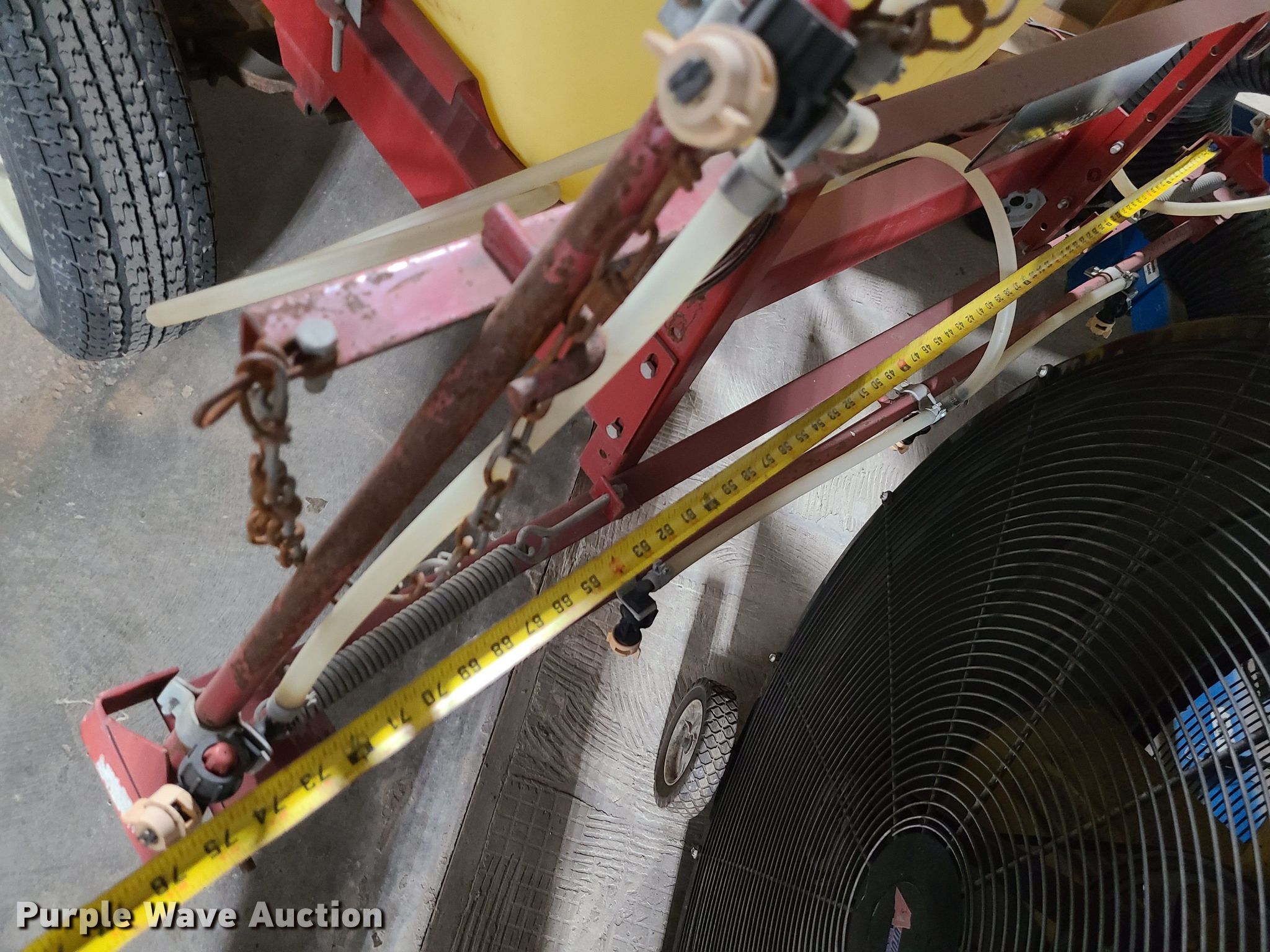 The Kuker sprayer. Engine. Fuel type: Gas, HP: 5. Features Solution tank Capacity: 300 gallons, Boom Width: 18', Sections: 3. Chassis Ball hitch size: 2 5/16". Tires Size: 225/75R15. Notes Unknown operating condition. Raytown C-2 School District. Raytown, MO 64133