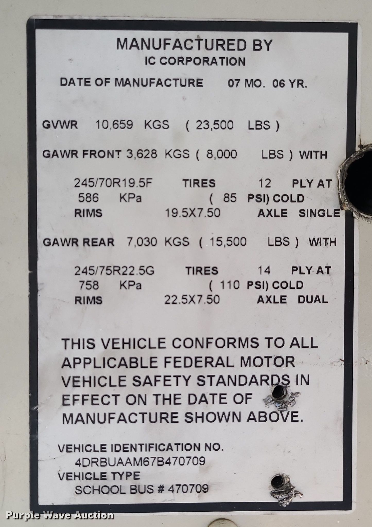 Purple Wave is selling a used Bus in Missouri. This item is a 2007 IC PB105 school bus with the following: Miles: 124,944 on odometer, VIN: 4DRBUAAM67B470709