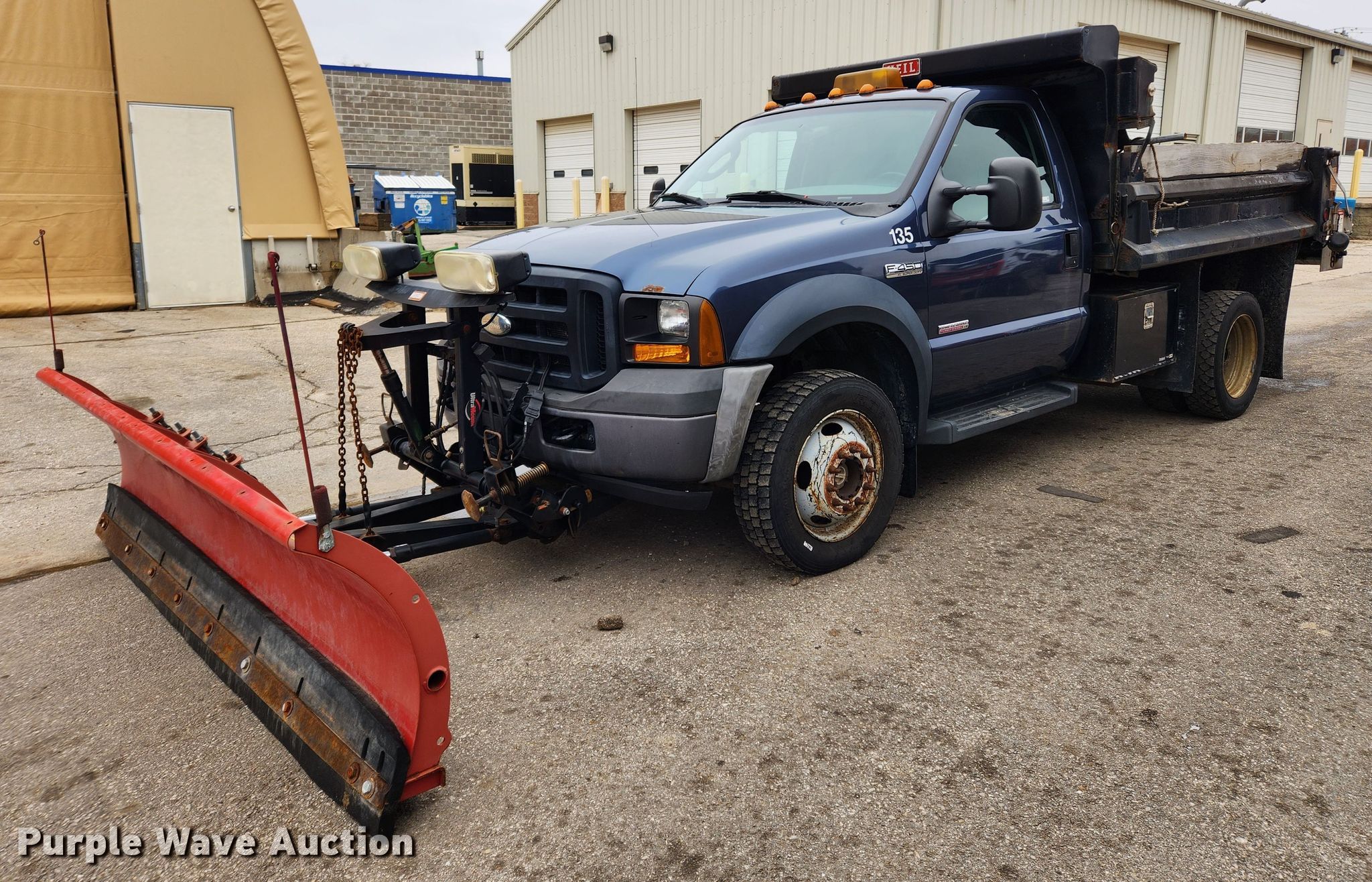 2007 Ford F450 Super Duty XL dump flatbed truck. Miles: 72,773 on odometer, Hours: 7,131 on meter, VIN: 1FDXF47P47EA73033. Engine Displacement: 6.0L, Cylinders: 8, Fuel type: Diesel. Transmission Automatic. Chassis Four wheel drive. Interior AC, Heat, Cruise control. Features Dump flatbed 9' L x 96" W, Roll tarp, Highway Equipment Company SA-6C spreader Serial: 123681, 9' Western Pro Plus snow plow. Tires Size: 225/70R19.5. Missouri title. Title distribution may be delayed up to 14 days from verification of funds. City of Manchester, MO. Manchester, MO 63021