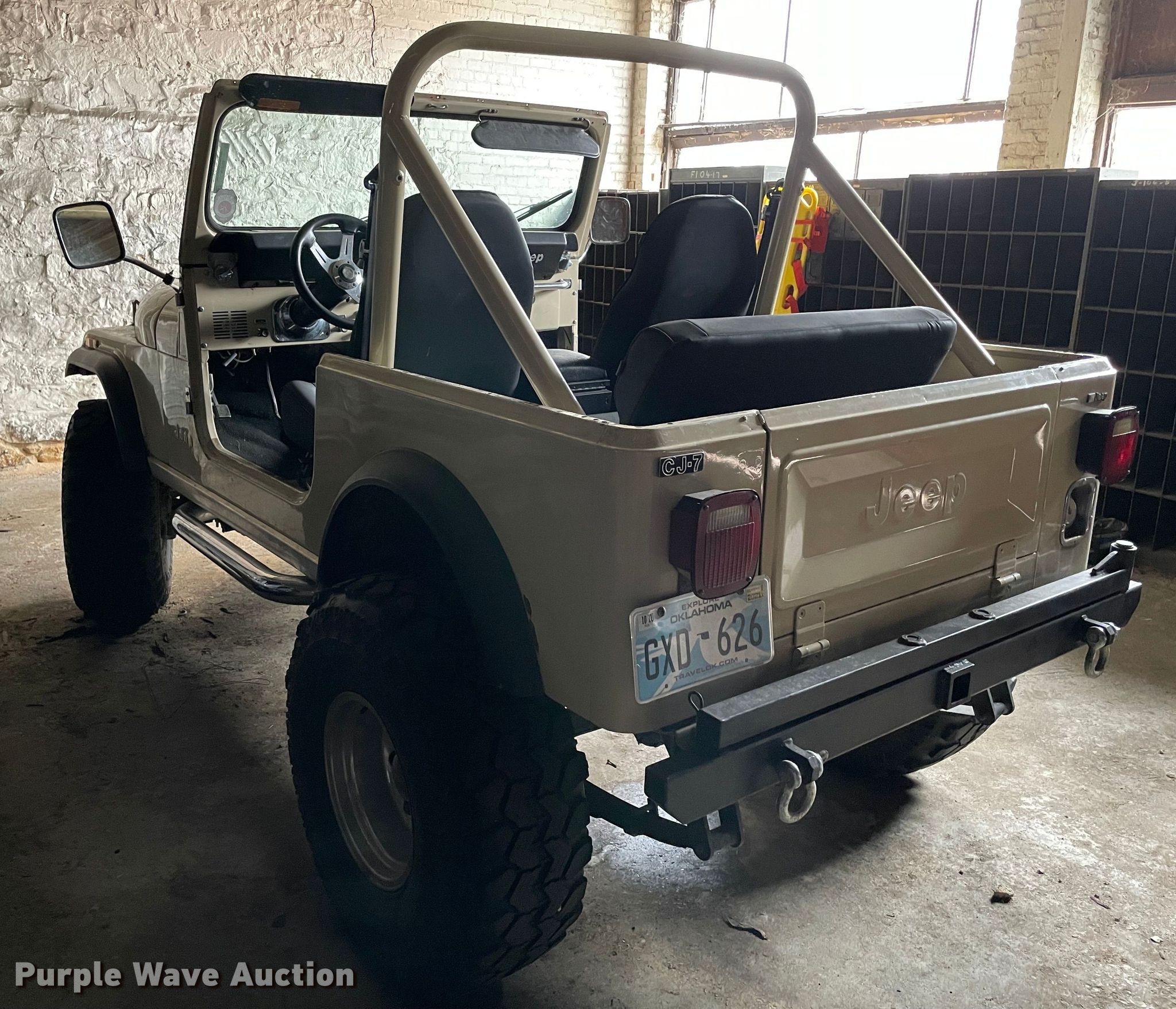 1985 AMC CJ7 SUV. Miles: 163,907 on odometer, VIN: 1JCUF87E1FT064912. Engine Cylinders: 8, Fuel type: Gas. Transmission Automatic, Four wheel drive. Interior Heat. Tires Size: 35x12.50R15LT. Notes Dead battery, Unknown operating condition. Oklahoma classic title. Title distribution may be delayed up to 14 days from verification of funds. District 22 District Attorney's Office. 200 North Broadway Street. Holdenville, OK 74848