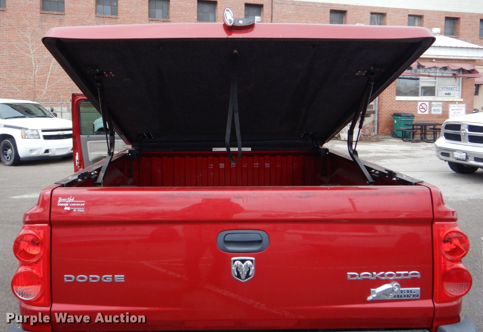 2010 Dodge Dakota Crew Cab pickup truck. Miles: 110,366 on odometer, VIN: 1D7RW3GK6AS146266, Unit #: 919. Engine Displacement: 3.7L V6 SOHC, Cylinders: 6, Fuel type: Gas. Transmission Automatic, Four wheel drive. Interior AC, Heat, Seat: Power driver, Power windows, Power locks, Cruise control. Tires Size: P265/65R17. Notes Dash warning indicator: TPMS. Oklahoma title. Seller is a government entity who will be assigning and distributing the title. Please contact the seller for distribution questions. Title distribution may be delayed up to 30 days from verification of funds. City of Tulsa, OK. 108 North Trenton Avenue. Tulsa, OK 74120