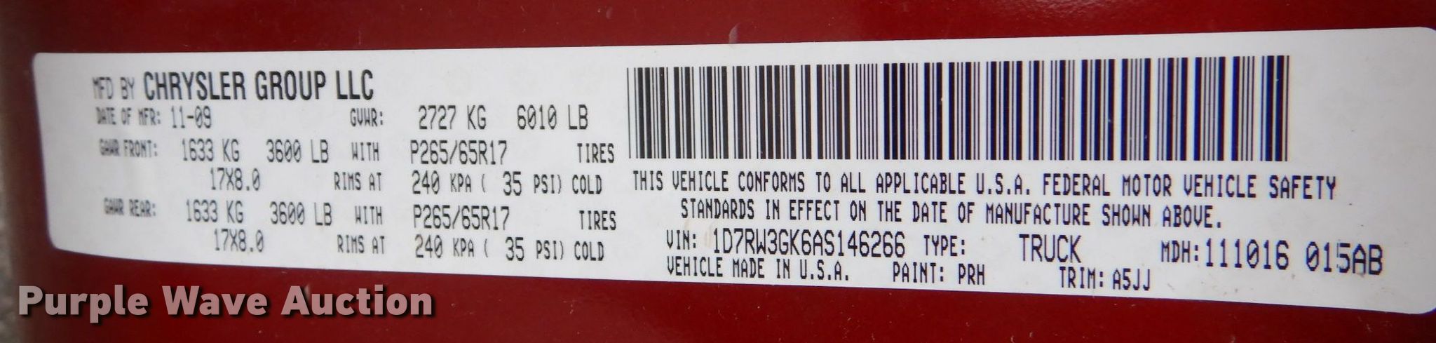 - VIN: 1D7RW3GK6AS146266