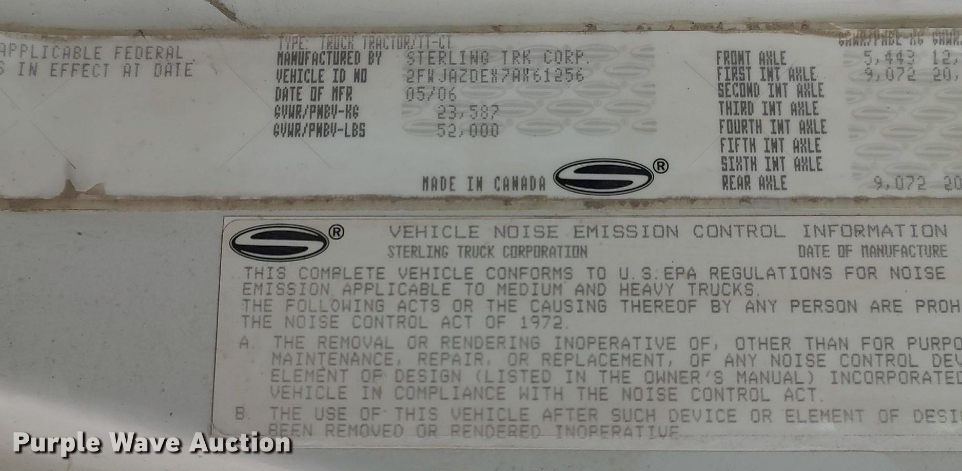 Purple Wave is selling a used Truck Tractor in Kansas. This item is a 2007 Sterling L9500 semi truck with the following: Miles: 412,692 on odometer, VIN: 2FWJAZDEX7AX61256