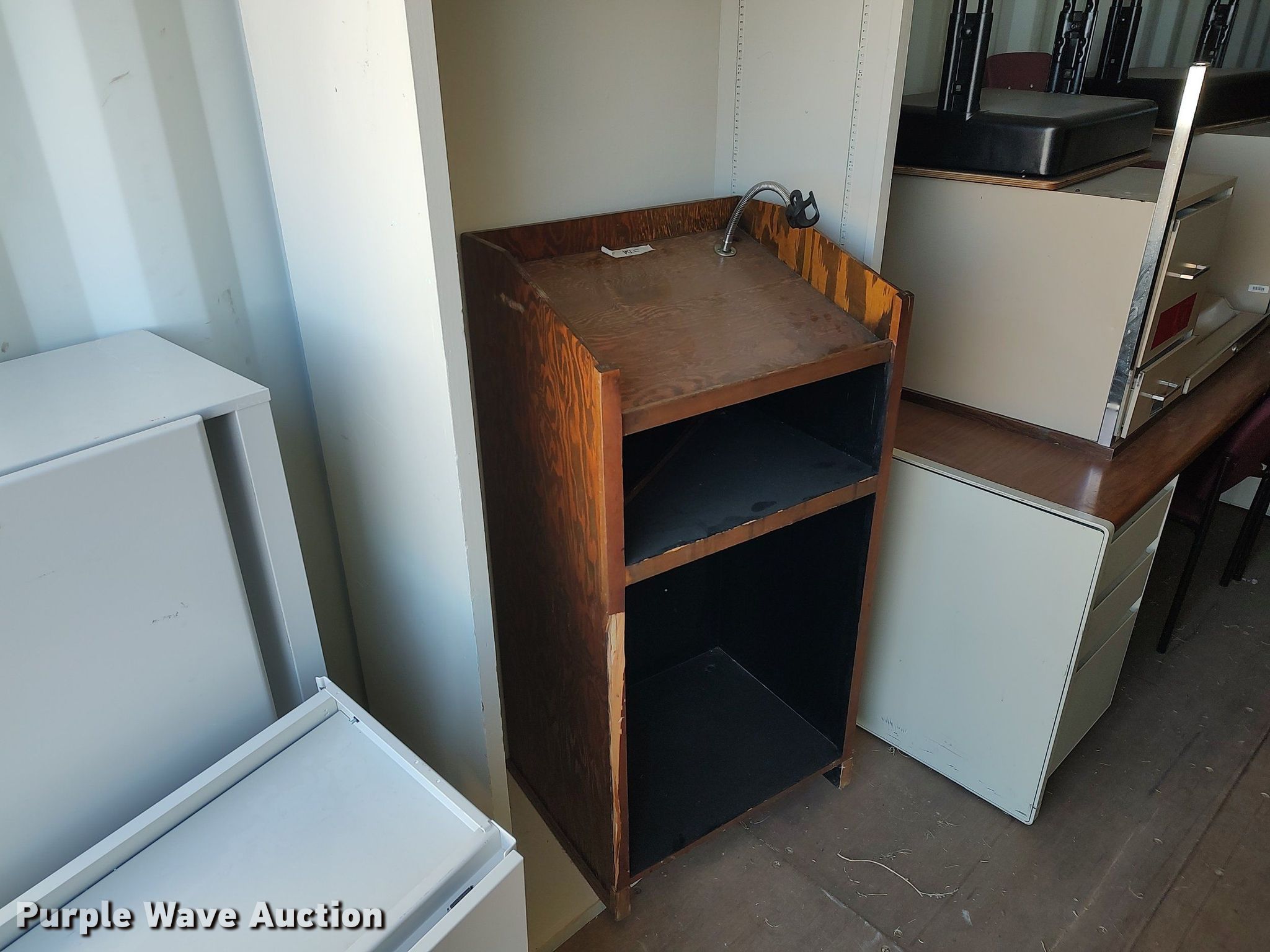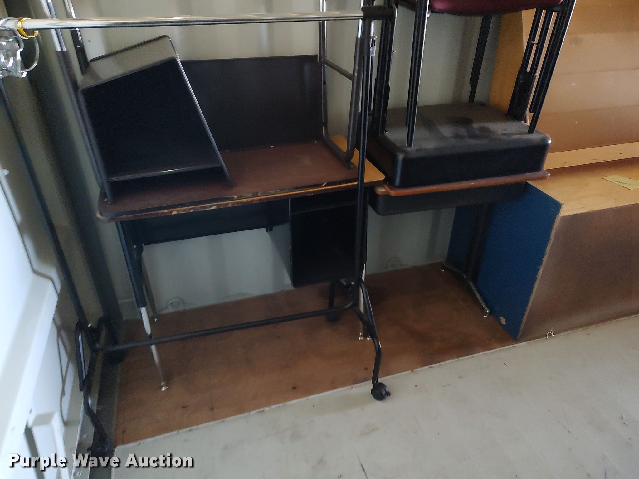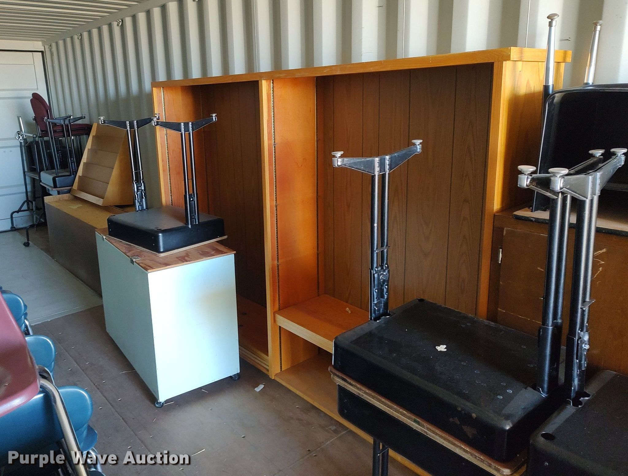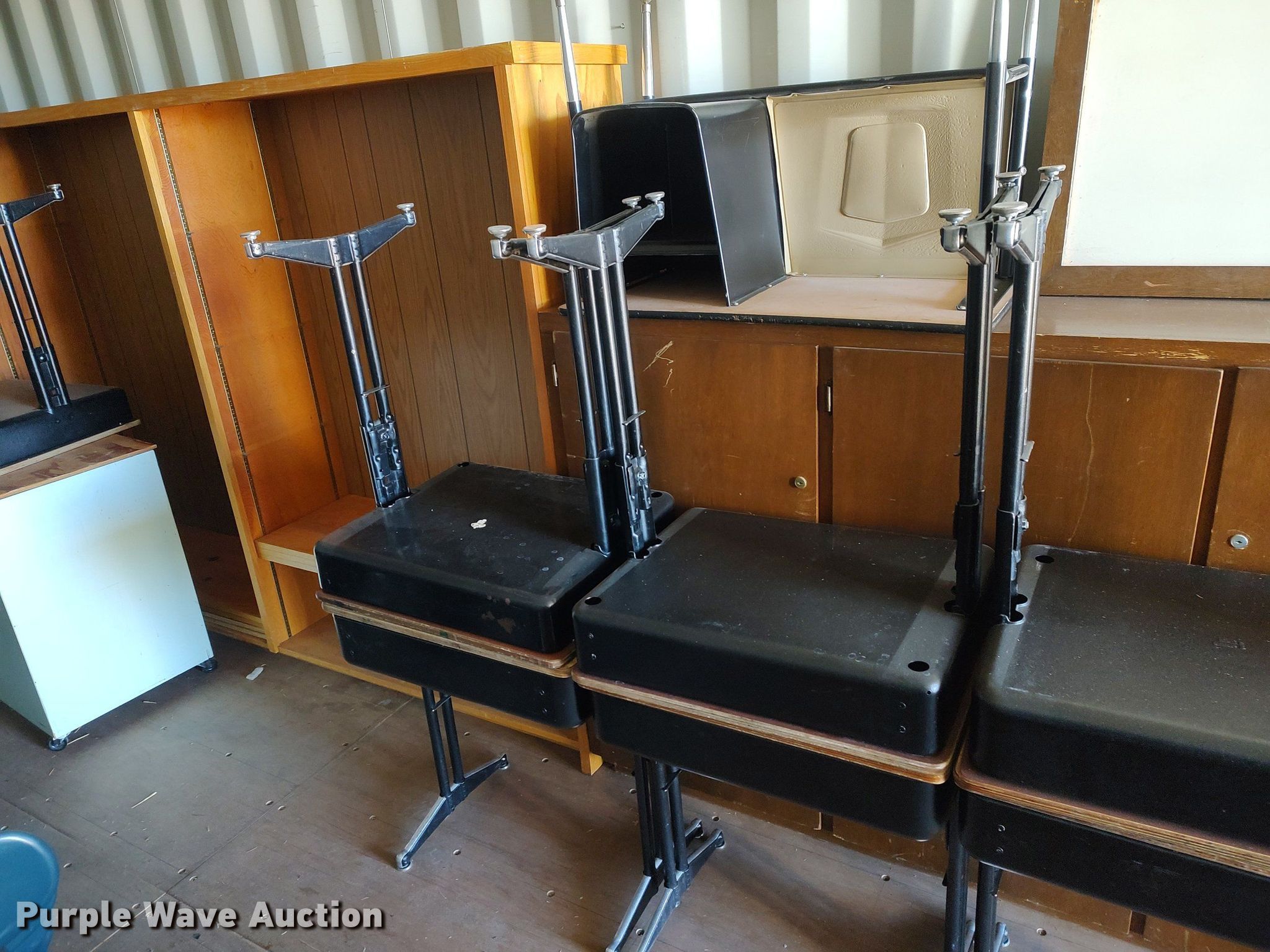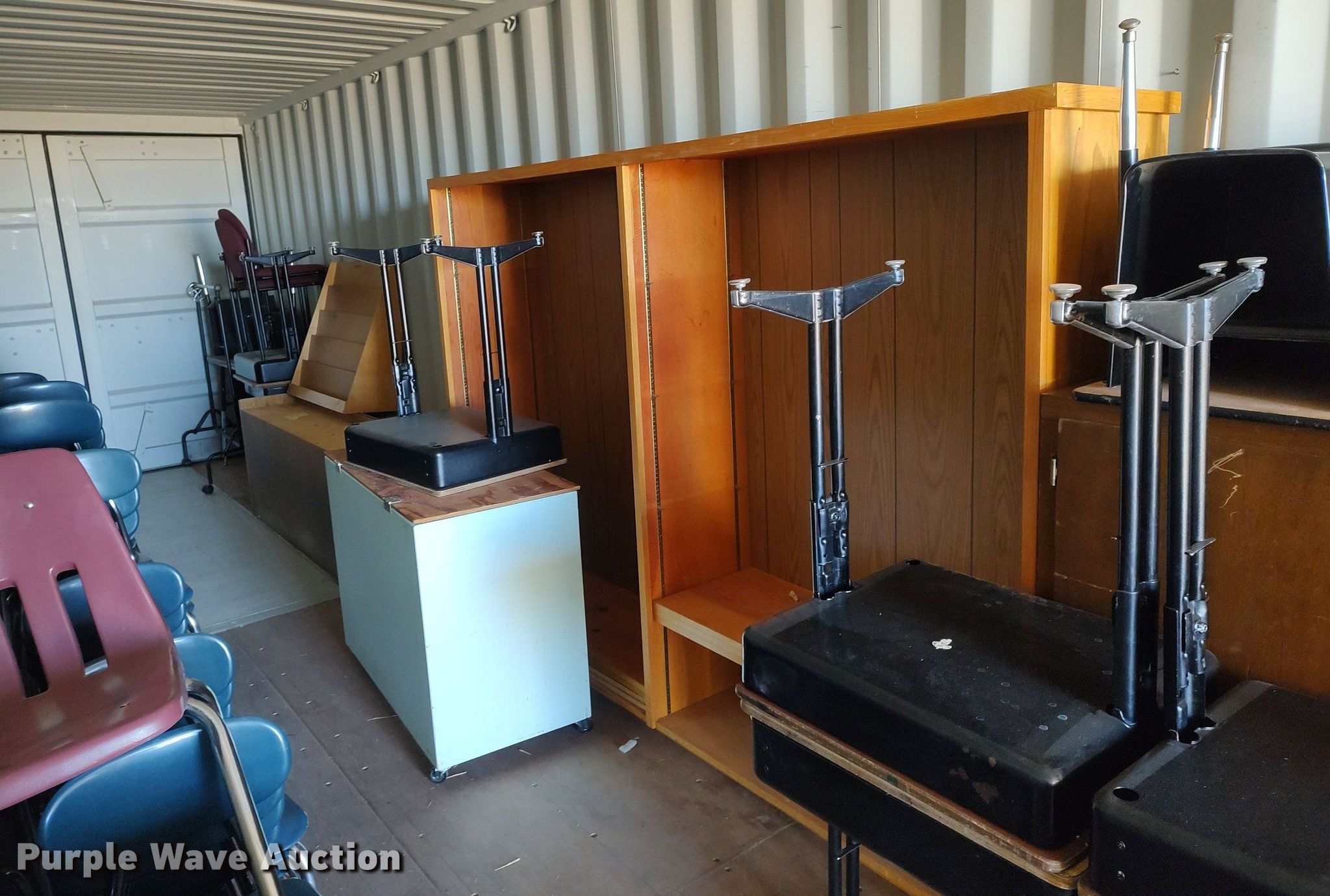 Purple Wave is selling a used Furniture in Kansas. This item is a Furniture with the following: Approx. 90 chairs, Approx. 4 tables, Approx. 14 desks, File cabinets and more