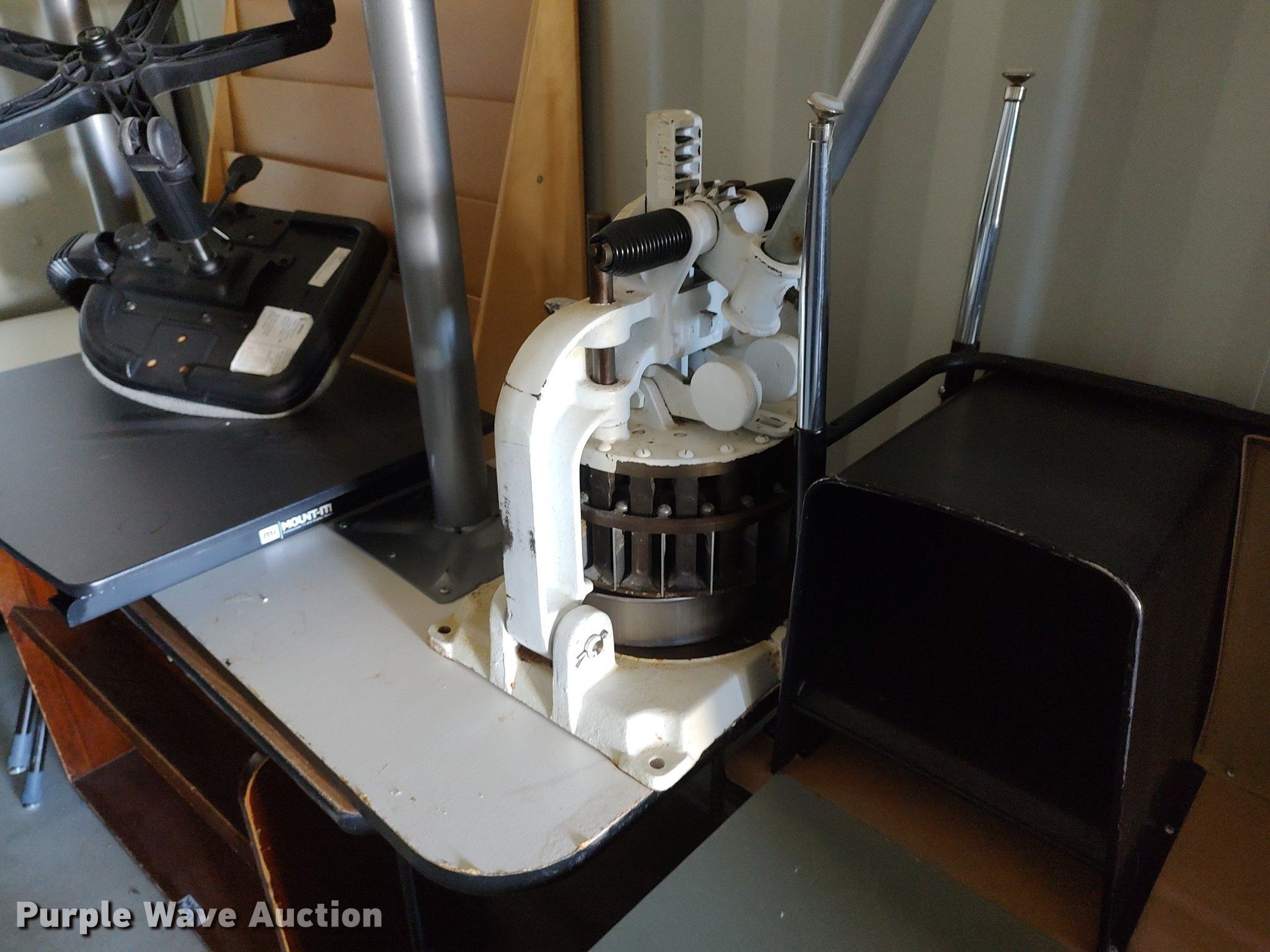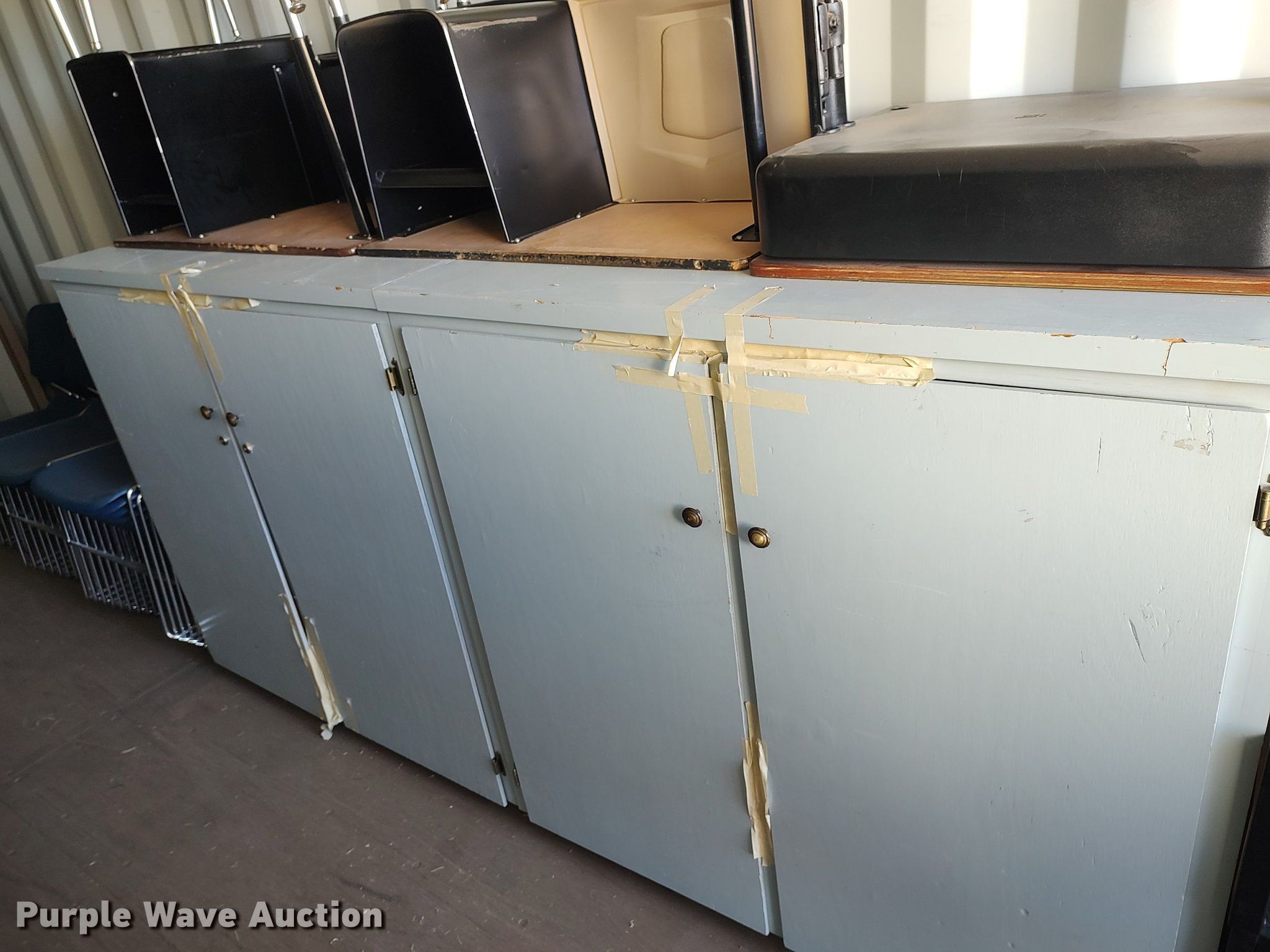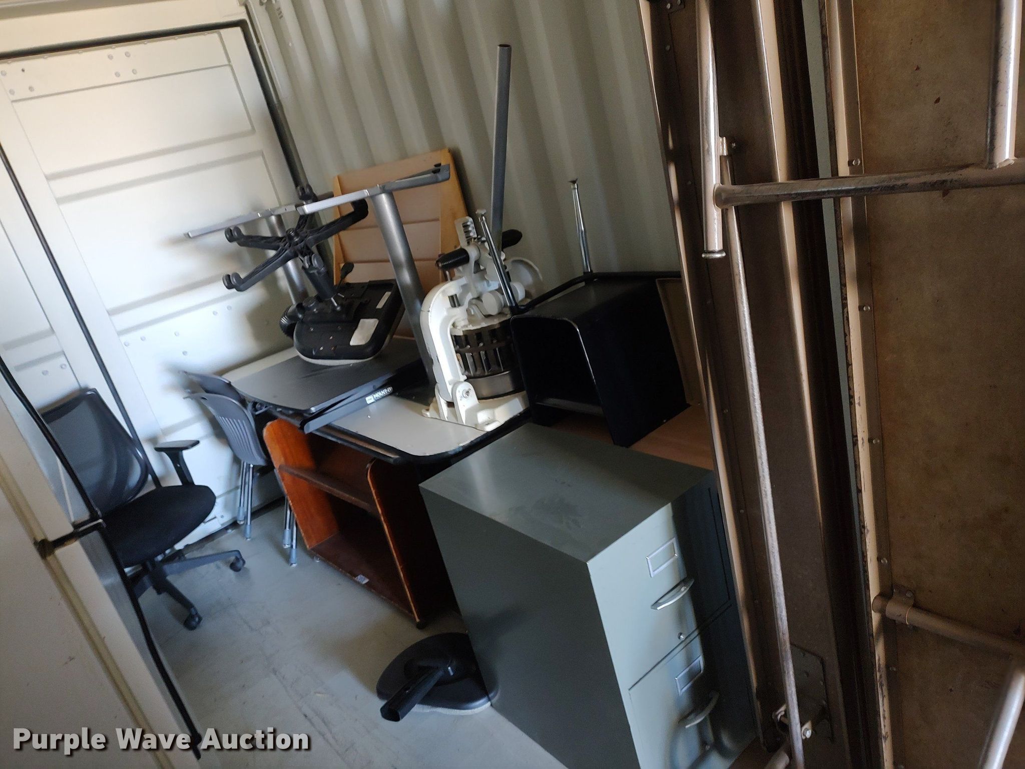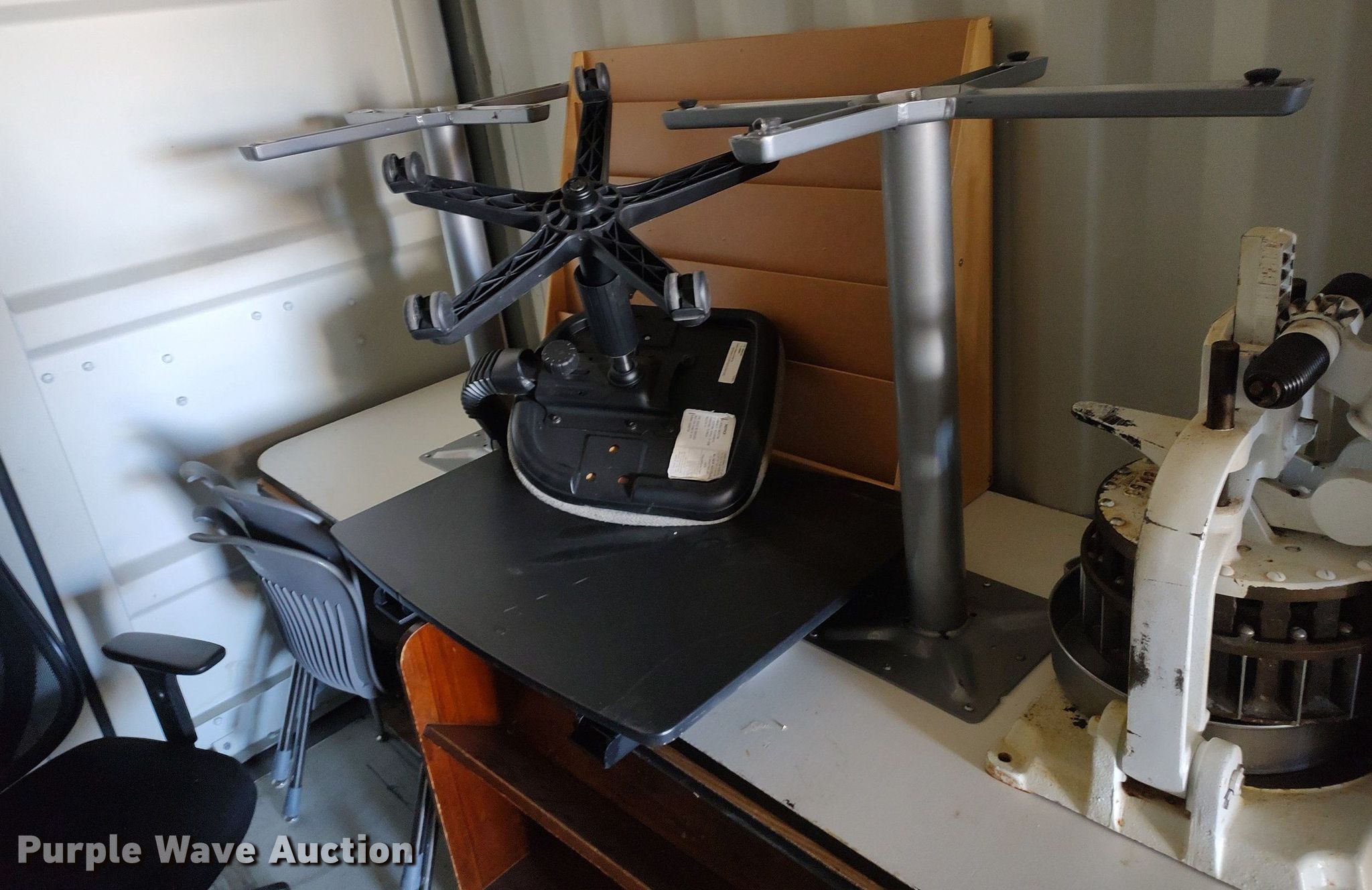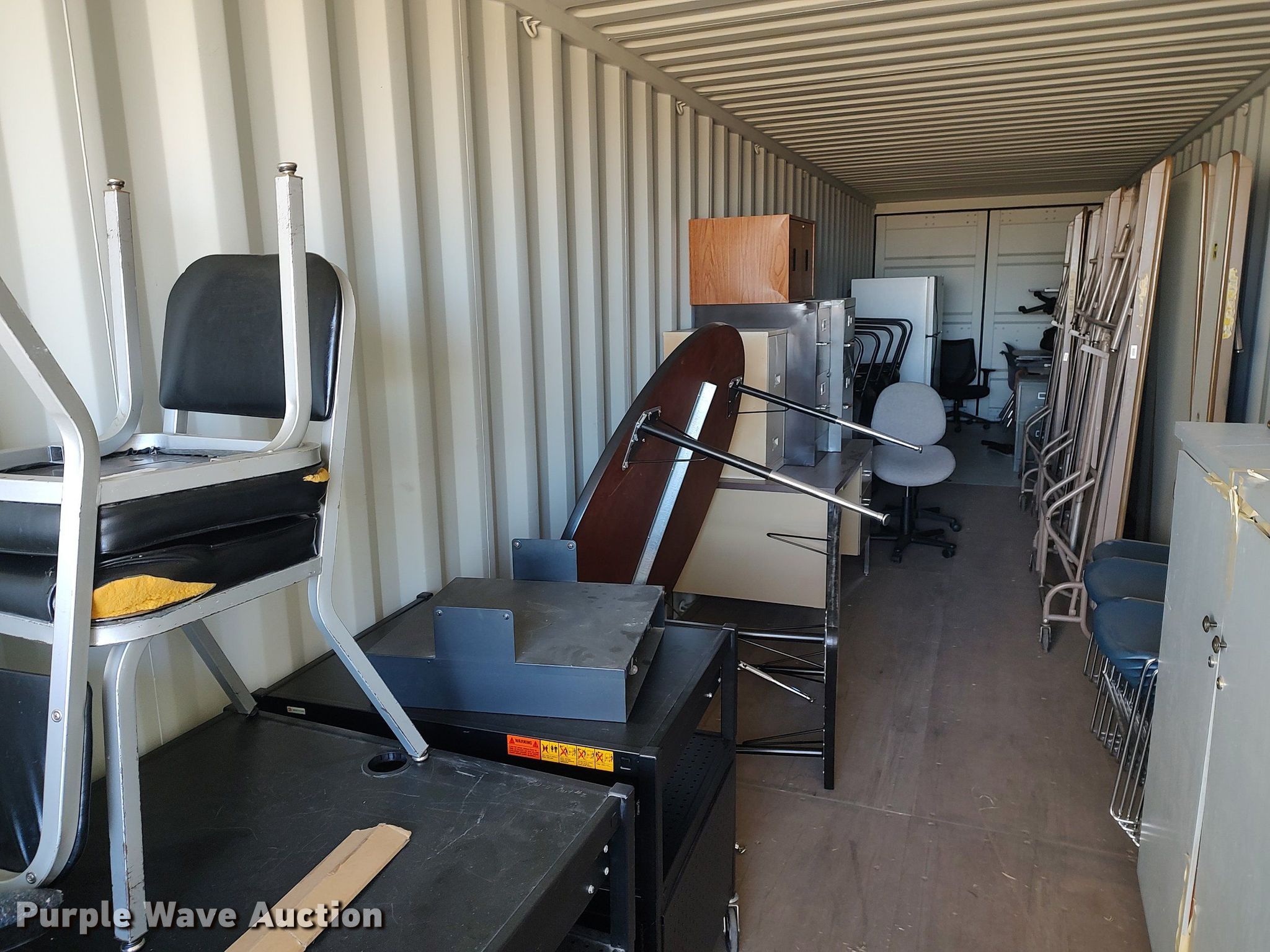 Purple Wave is selling a used Furniture in Kansas. This item is a Furniture with the following: (20) chairs, (4) tables, (4) desks, (3) folding tables, (5) entertainment carts, File cabinets, Refrigerator and more