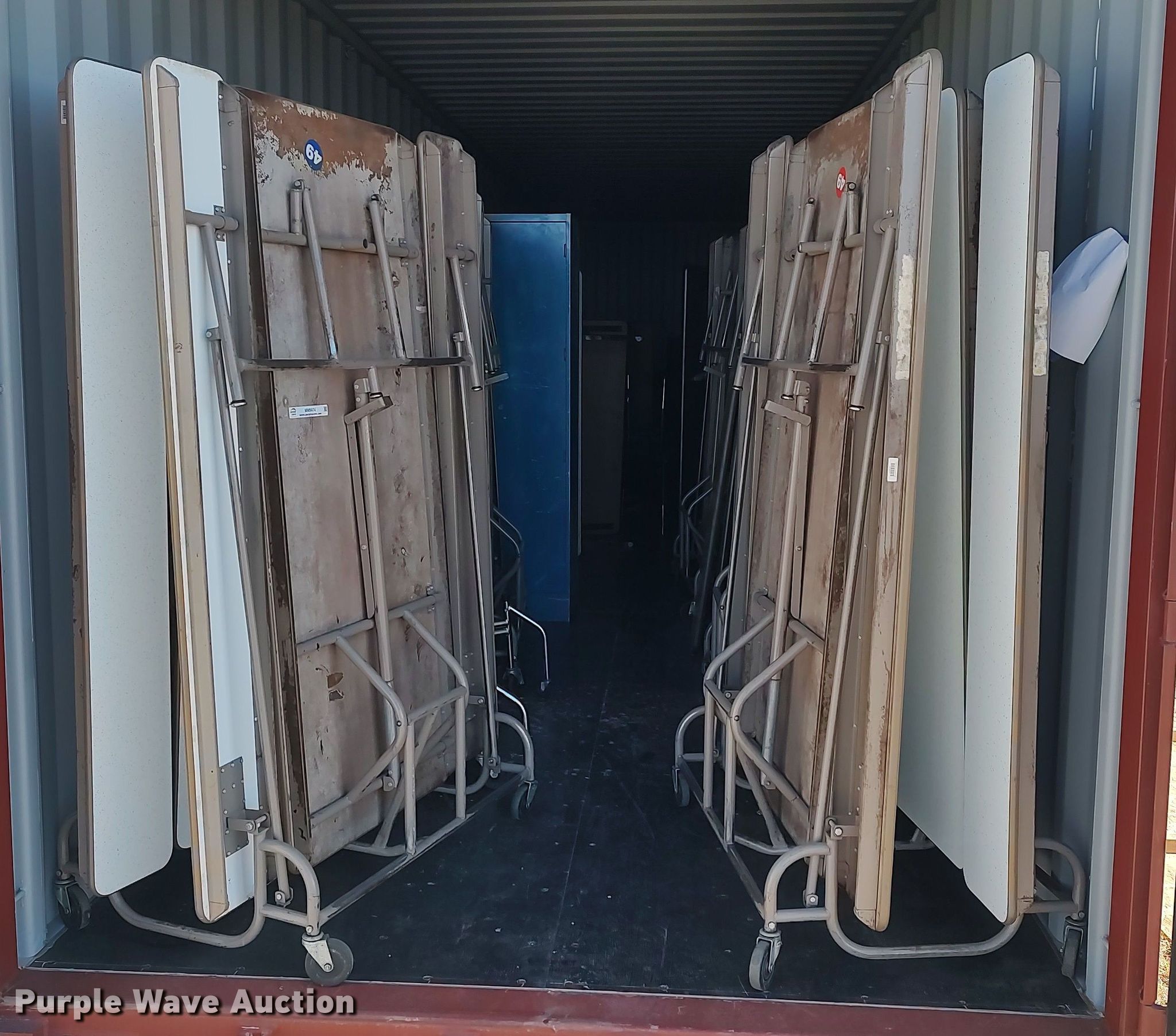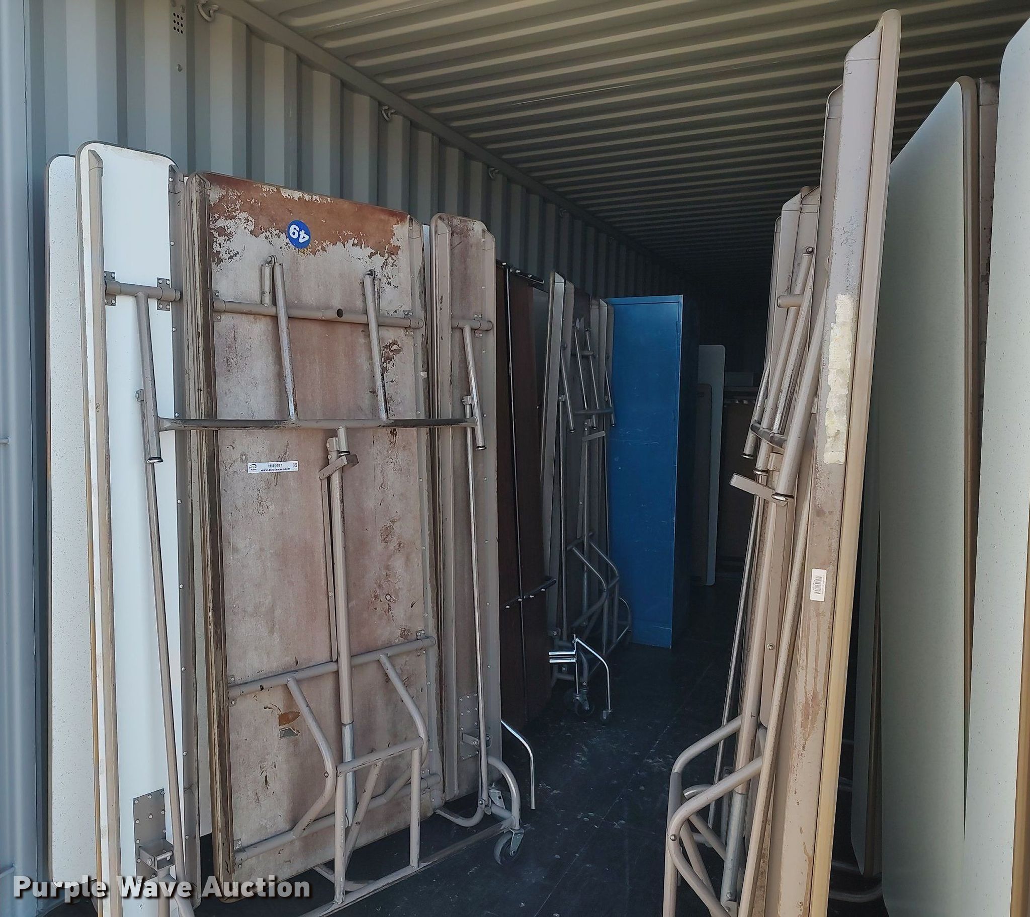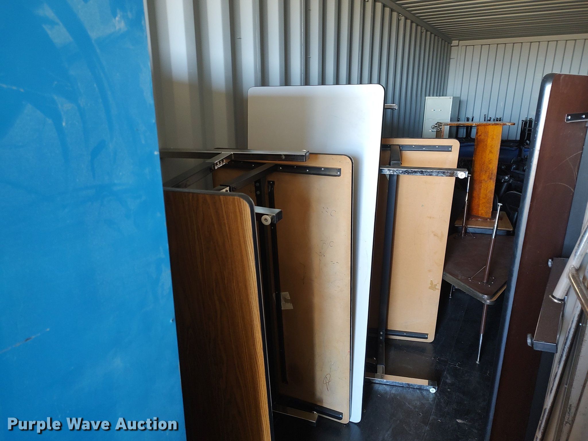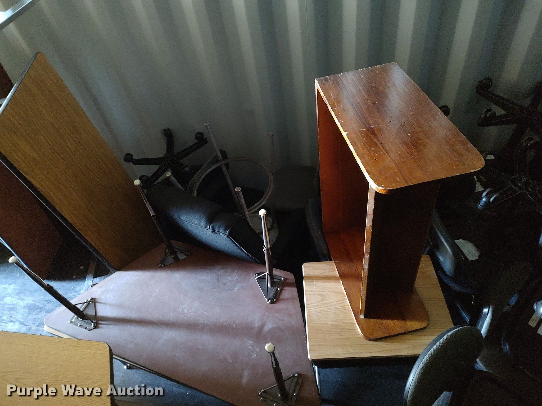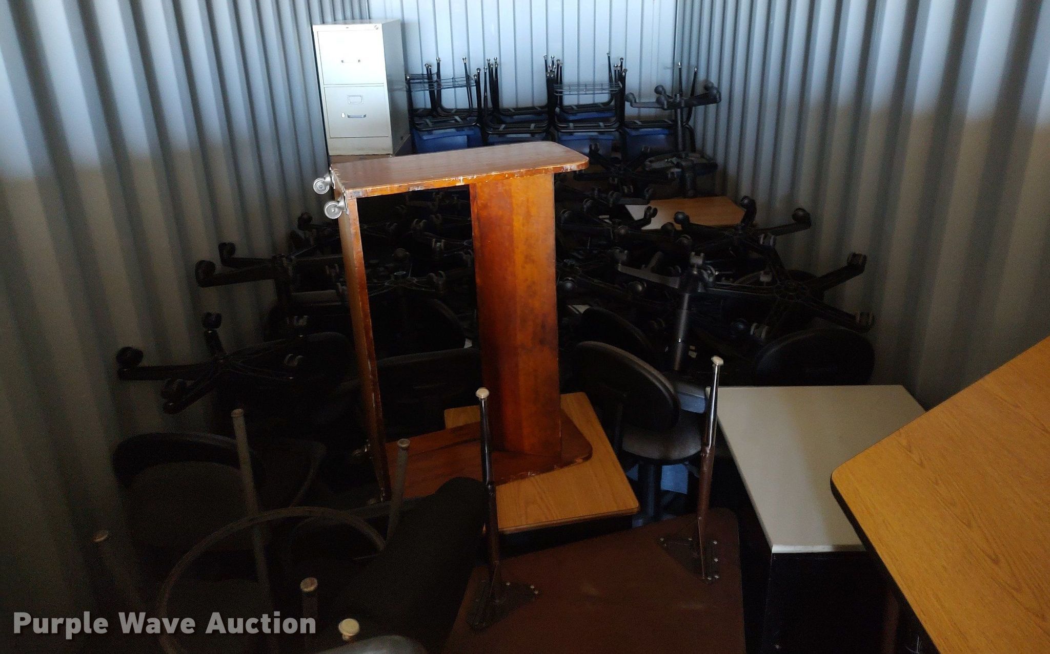 Purple Wave is selling a used Furniture in Kansas. This item is a Furniture with the following: Approx. 34 chairs, Approx. 13 tables, Approx. 18 desks, (7) folding tables, File cabinets and more