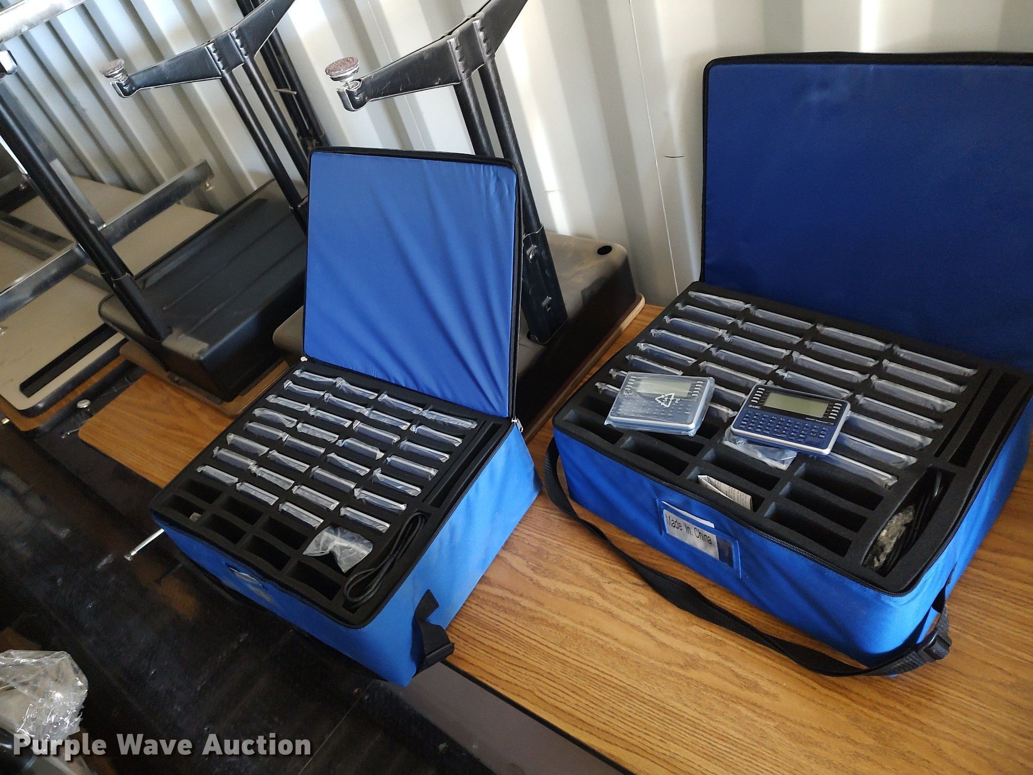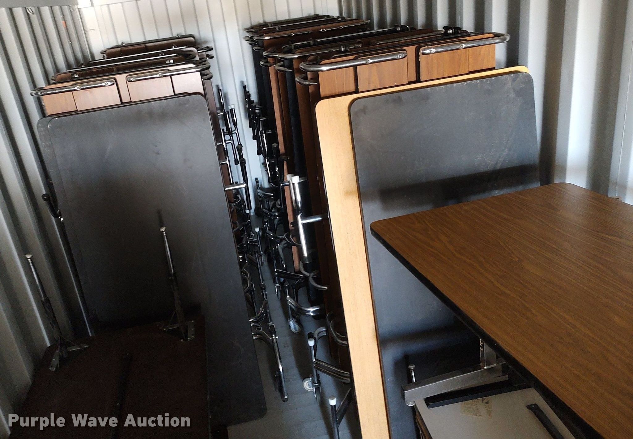 Purple Wave is selling a used Furniture in Kansas. This item is a Furniture with the following: Approx. 60 chairs, Approx. 8 tables, Approx. 10 folding tables, Approx. 30 desks, Approx. 64 Smart Response XE calculators and more