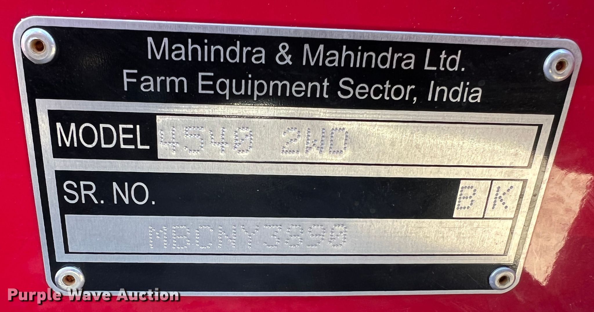Purple Wave is selling a used Tractor in Missouri. This item is a Mahindra 4540 tractor with the following: Hours: 3 on meter, Serial: MBCNY3890