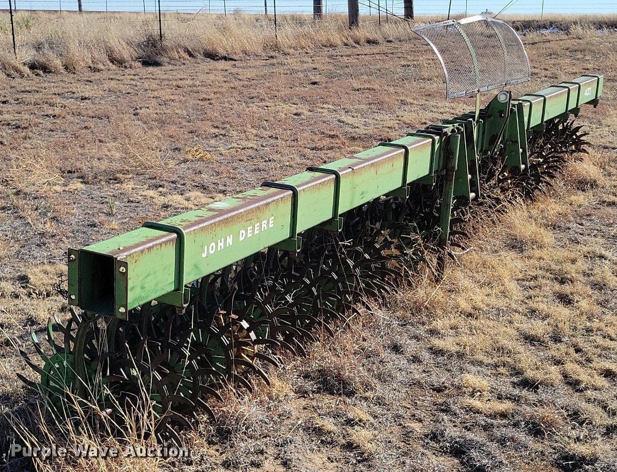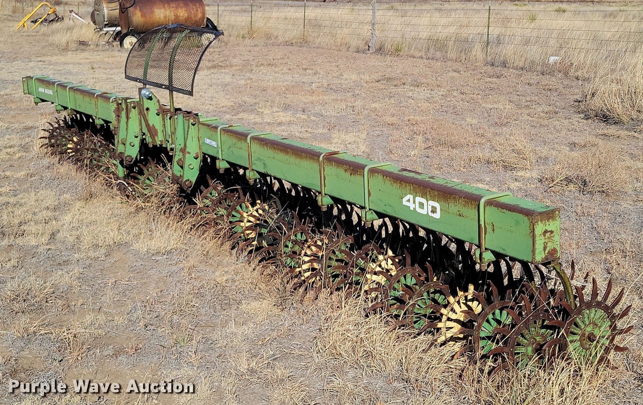 Purple Wave is selling a used Rotary Tillage in Texas. This item is a John Deere 400 rototiller with the following: Overall width: 21' 8", Serial: 045236