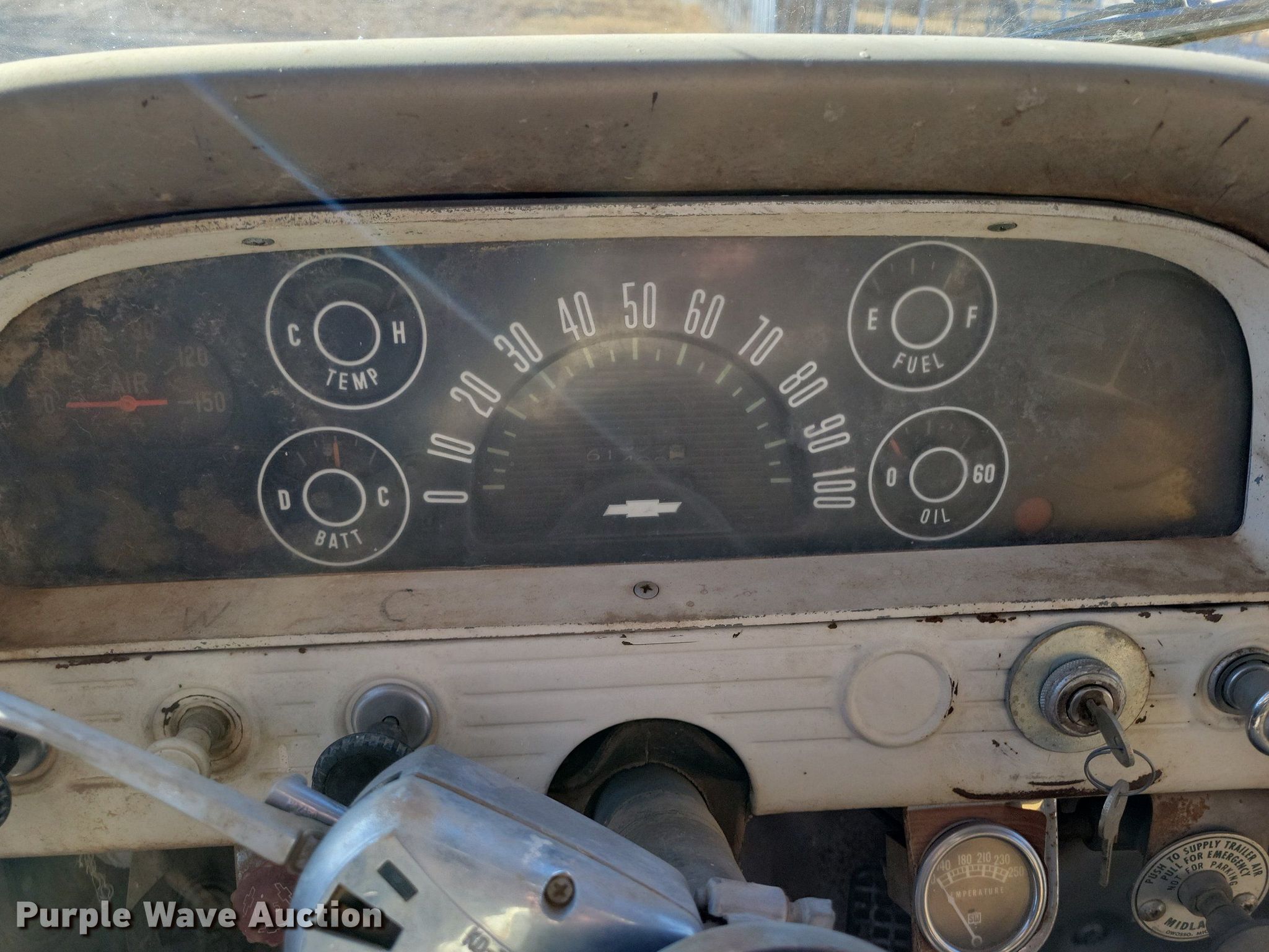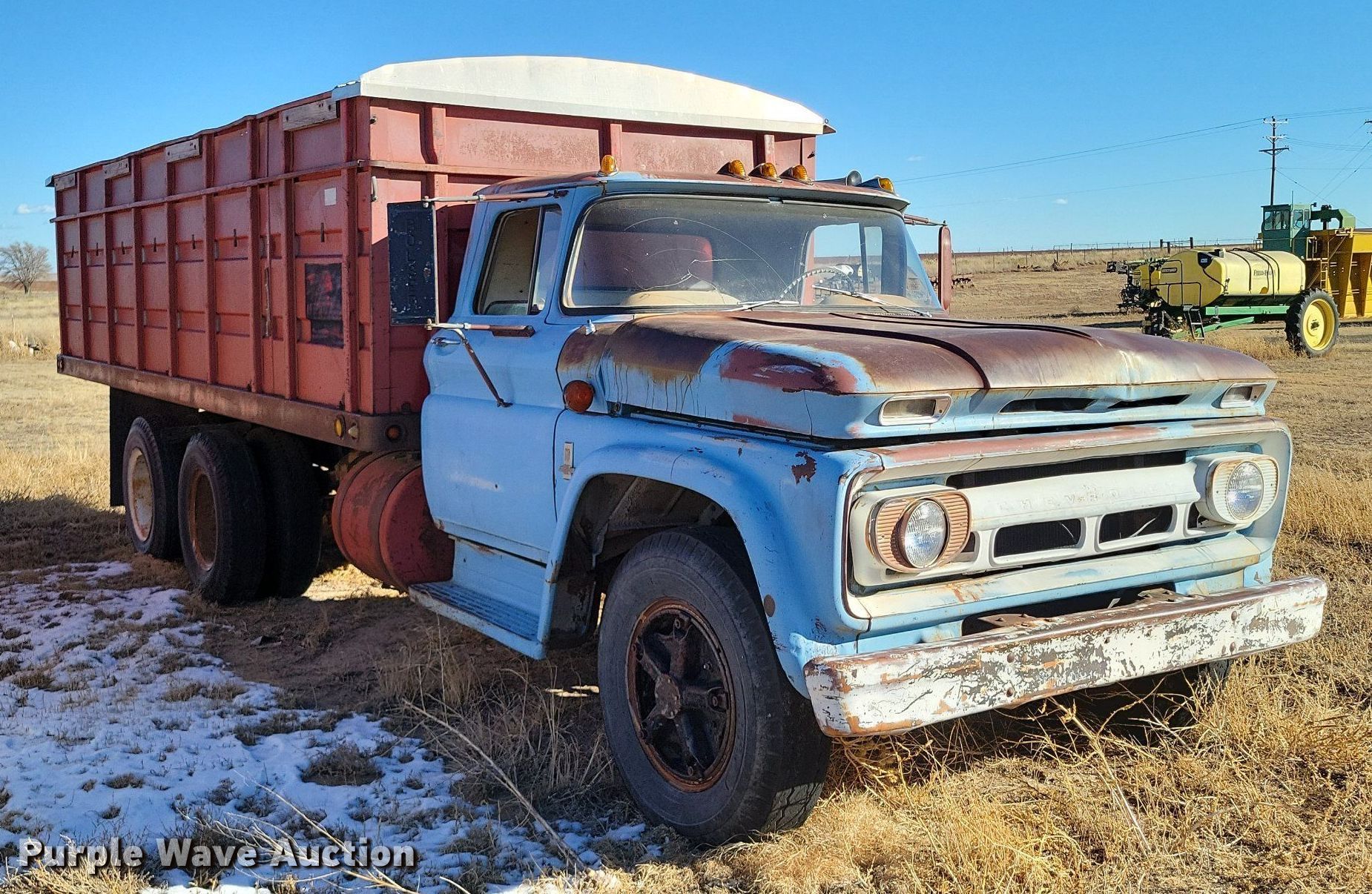 Purple Wave is selling a used Grain Truck in Texas. This item is a 1963 Chevrolet grain truck with the following: Miles: 61,400 on odometer, VIN: 3C633S107132