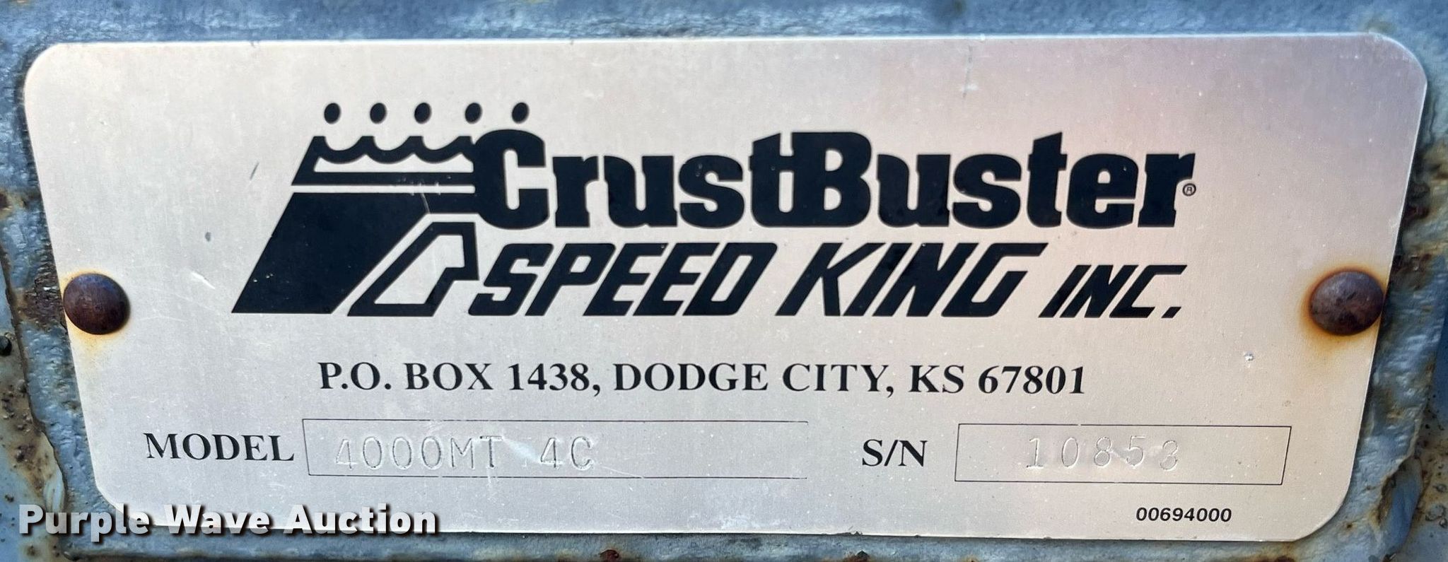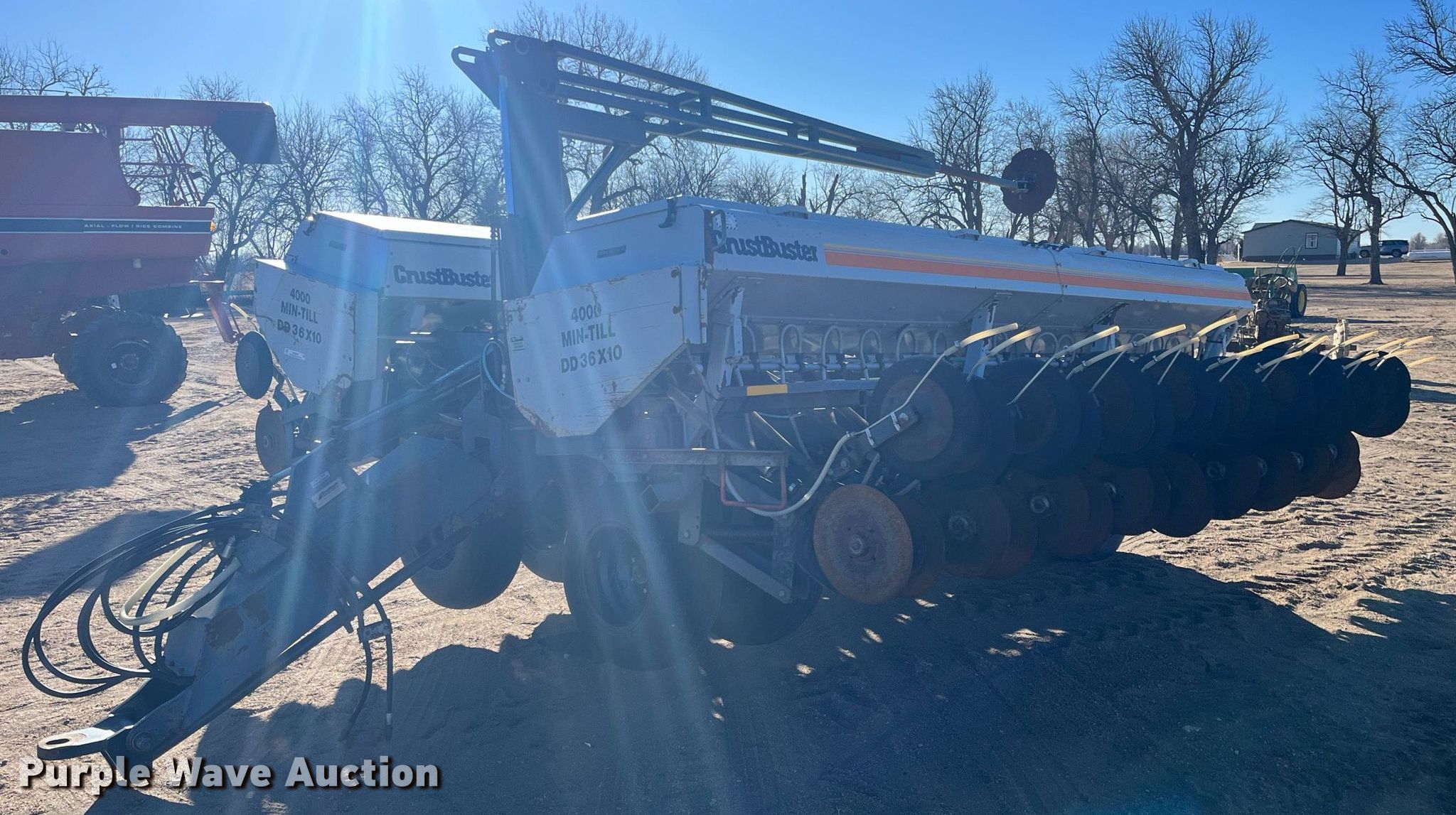 Purple Wave is selling a used Grain Drill or Seeder in Kansas. This item is a CrustBuster 4000MT Min-Till DD36X10 grain drill with the following: Width: 30', Row units: 36, Row spacing: 10", Serial: 10853
