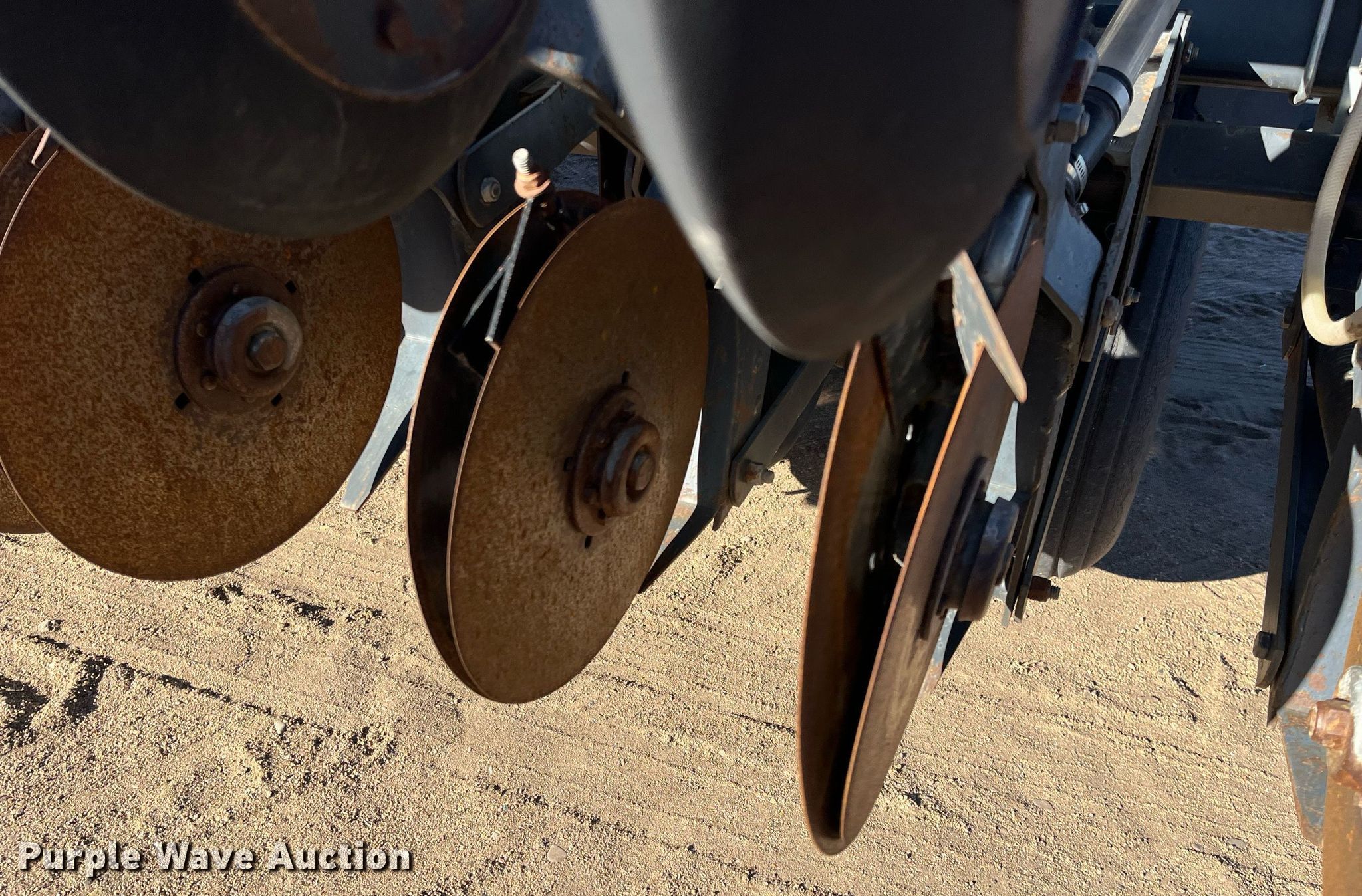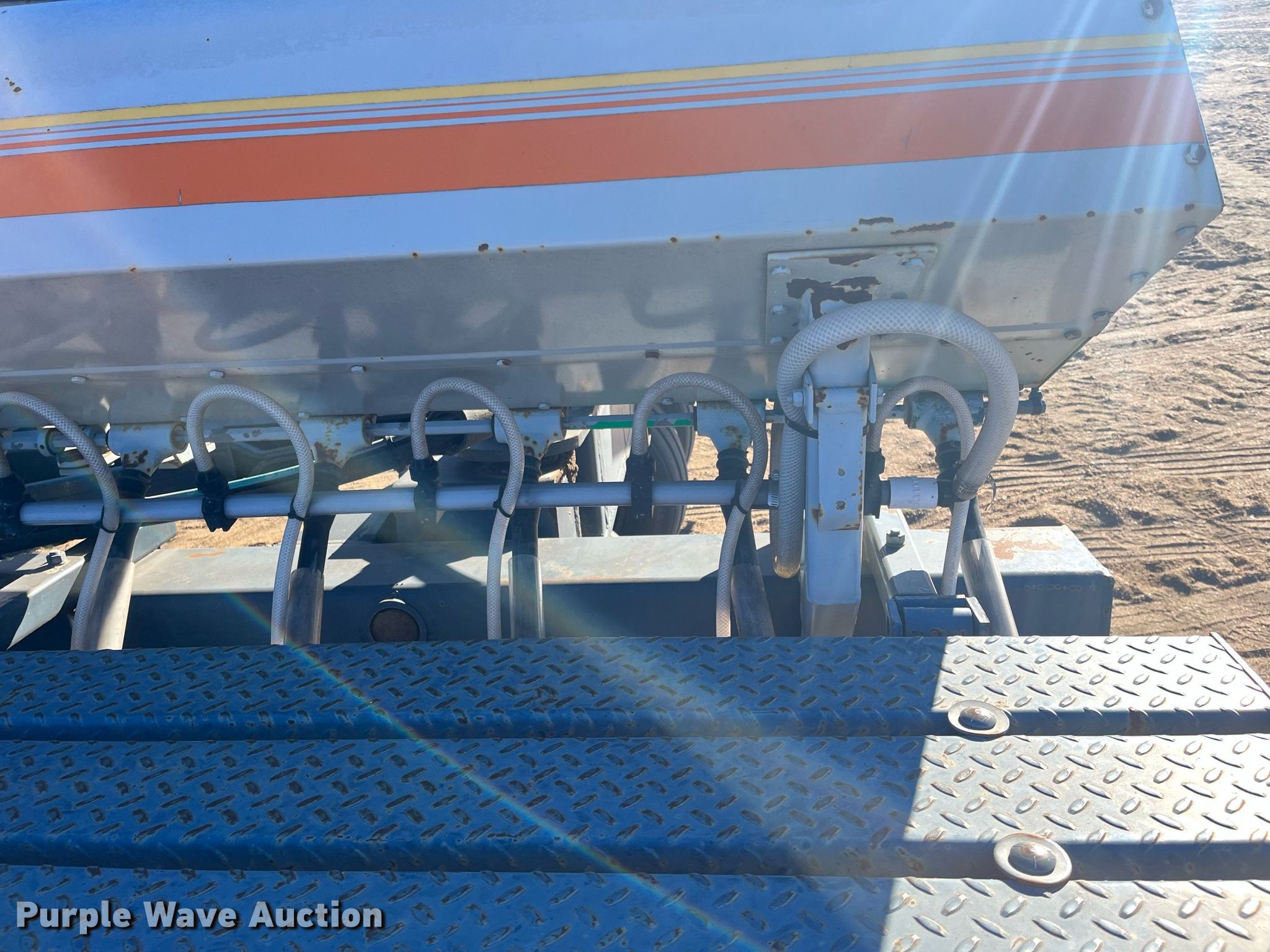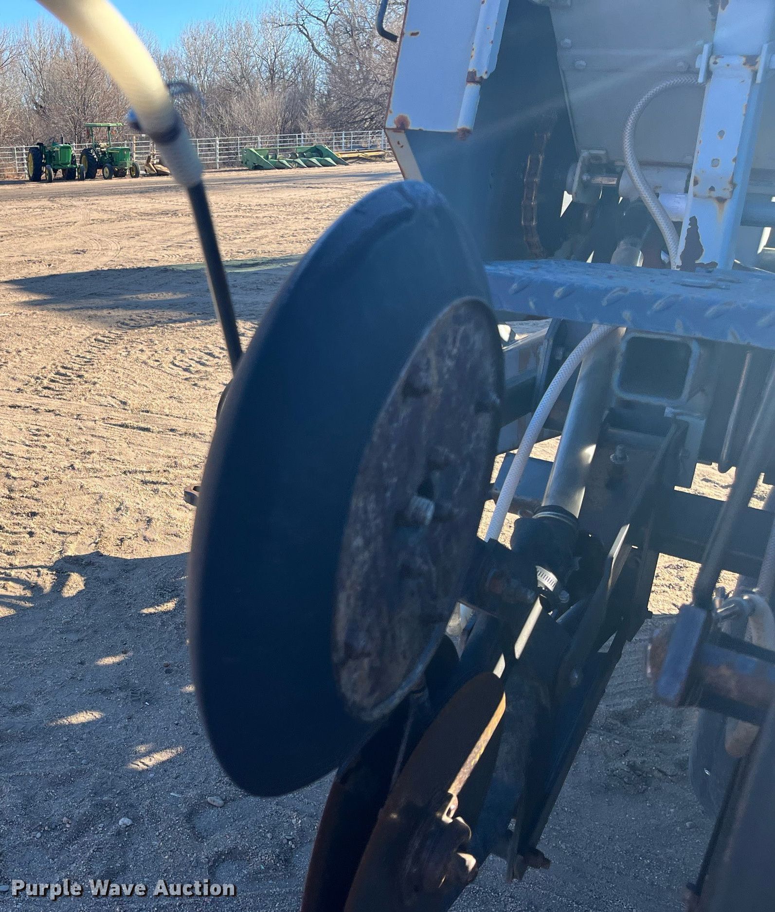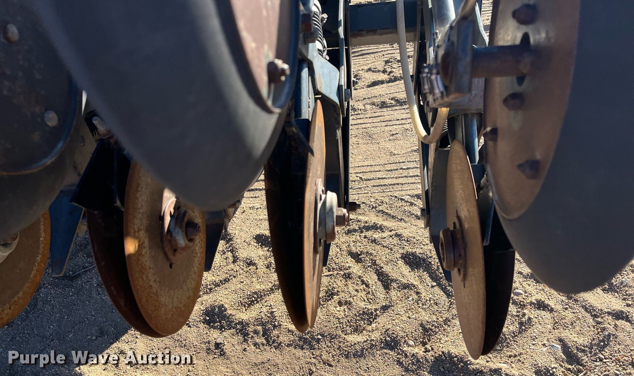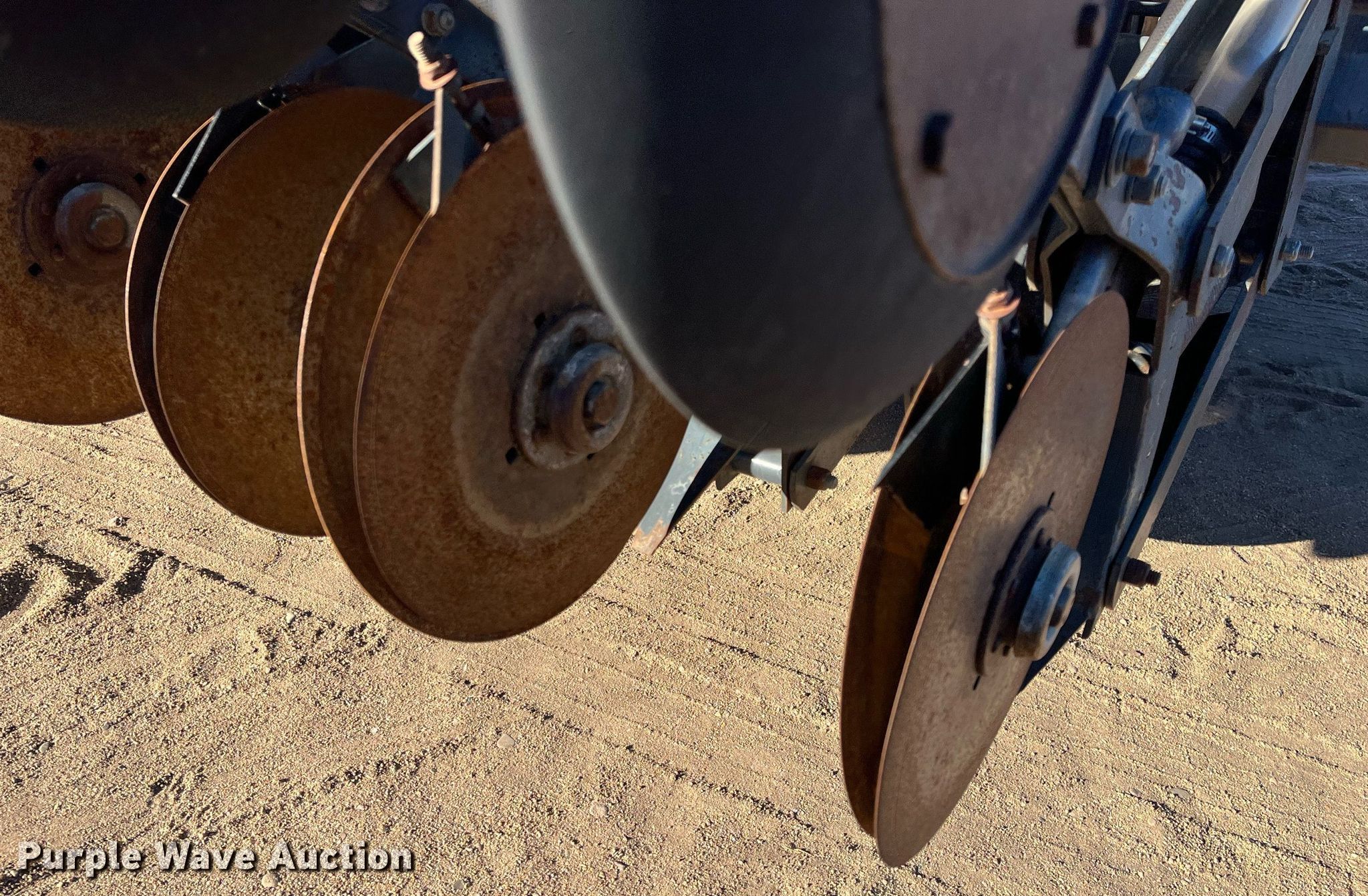 CrustBuster 4000MT Min-Till DD36X10 grain drill. Width: 30', Row units: 36, Row spacing: 10", Serial: 10853. Features Frame Marker arm, Row units Meter drive: Ground, Down pressure: Spring, Disk openers: Double, Closing system: Single Type: Rubber.. Tires Transport tire size: 11L-15, Quantity: 8. Notes Plumbed for liquid fertilizer delivery system. 1137 90th Ave. Kinsley, KS 67547