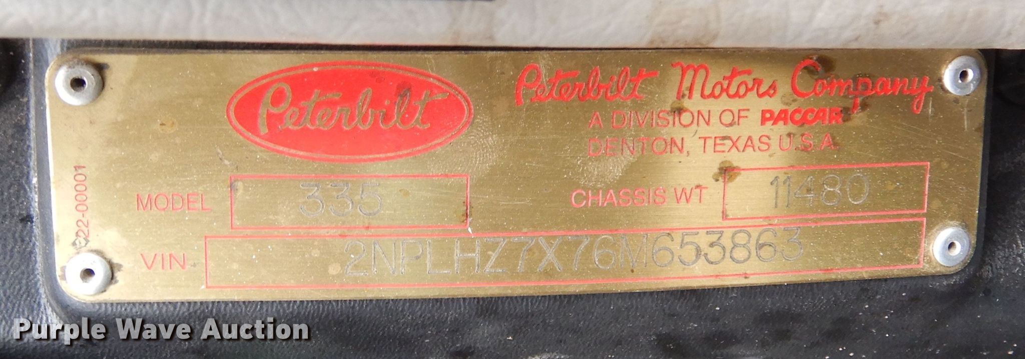 Purple Wave is selling a used Flat Bed Truck in Wyoming. This item is a 2006 Peterbilt 335 flatbed truck with the following: Miles: 271,662 on odometer, VIN: 2NPLHZ7X76M653863, Unit #: 2094