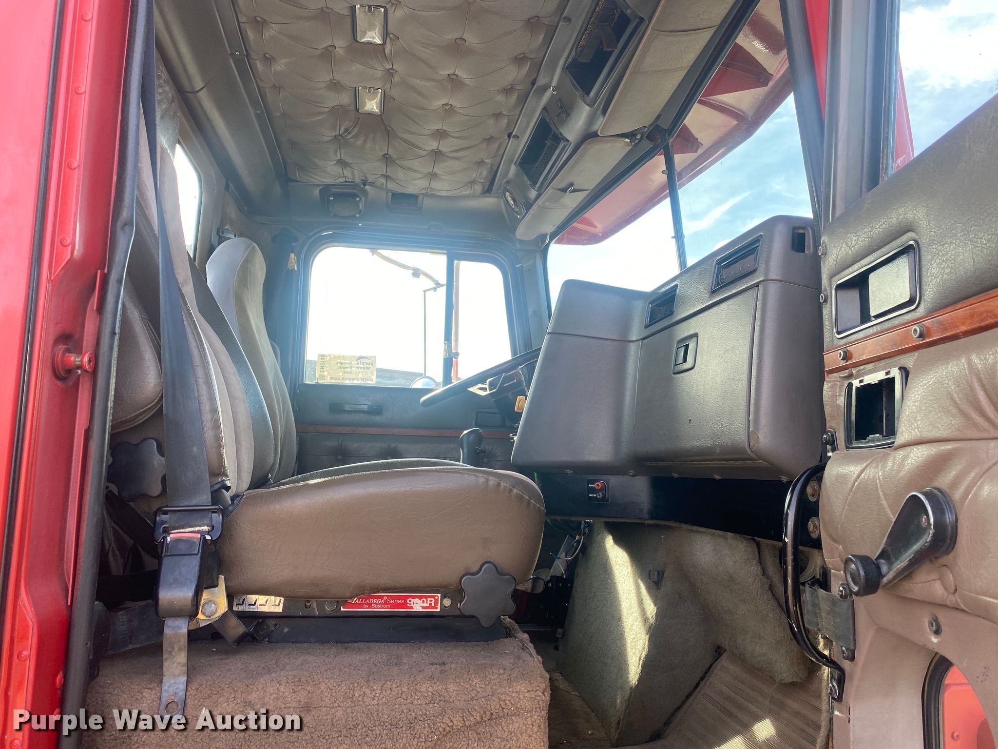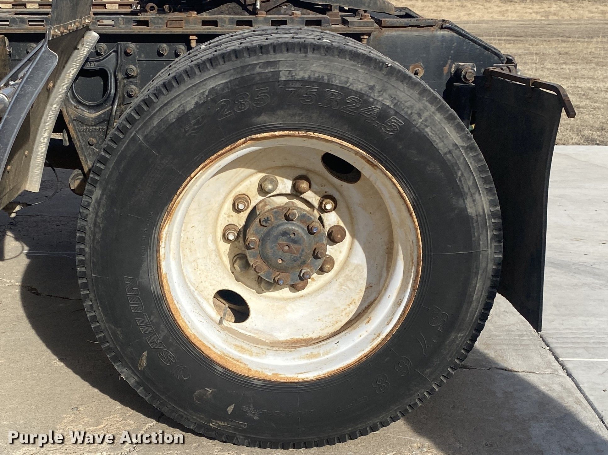 1995 International 9400 semi truck. Miles: 607,495 on odometer, VIN: 2HSFKAEN2SC054823. Engine Cummins N14, Displacement: 14.0L, Cylinders: 6, Fuel type: Diesel. Transmission Spicer, Manual, Speed: 10. Chassis Axles: Single, Suspension: Air, Brakes: Air, PTO, Wet kit, GVWR: 32,000 lbs FAWR: 12,000 lbs, RAWR: 20,000 lbs. Interior AC, Heat, Heated mirrors, Cruise control. Features Fifth wheel type: Air operated, Sliding, Fuel tank: Dual. Tires Size: 285/75R24.5. Oklahoma classic title. Mileage has not been verified. Exempt will be written in the odometer disclosure on the title. Title distribution may be delayed up to 14 days from verification of funds. Flint Equipment. 9305 E Main St. Drumright, OK 74030
