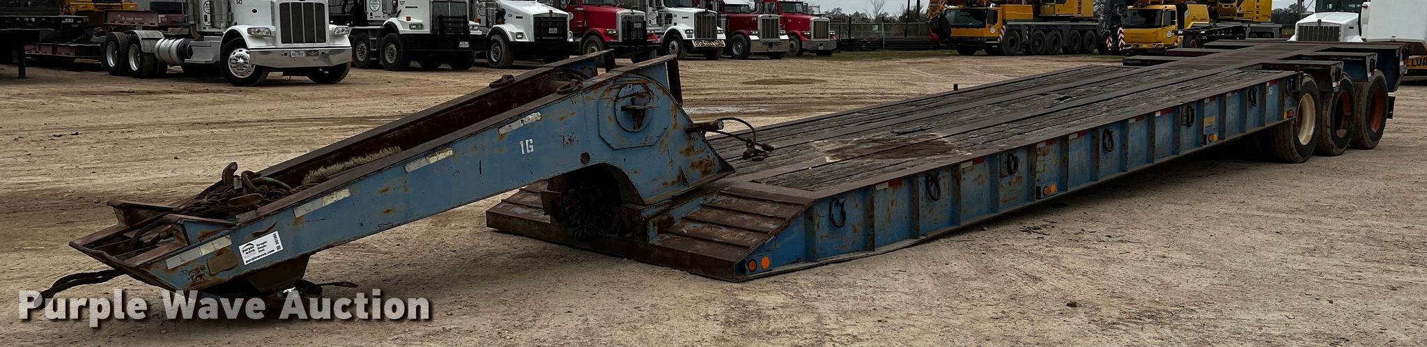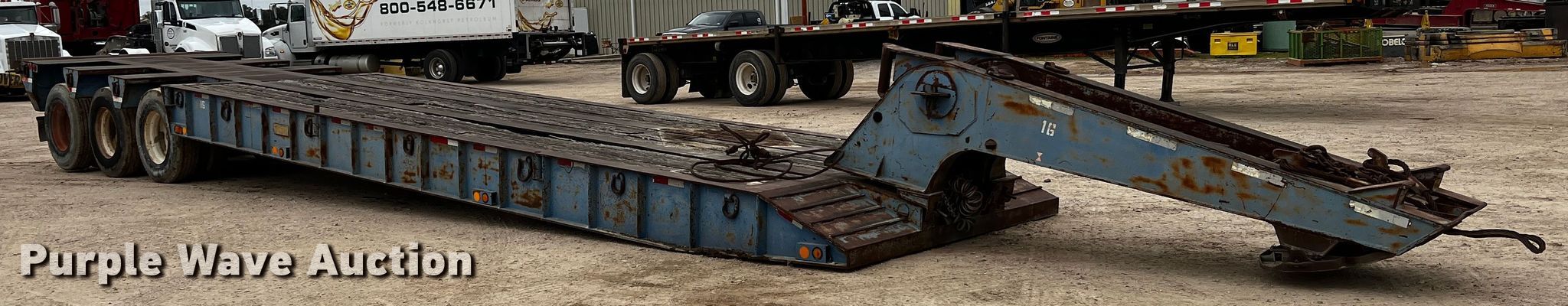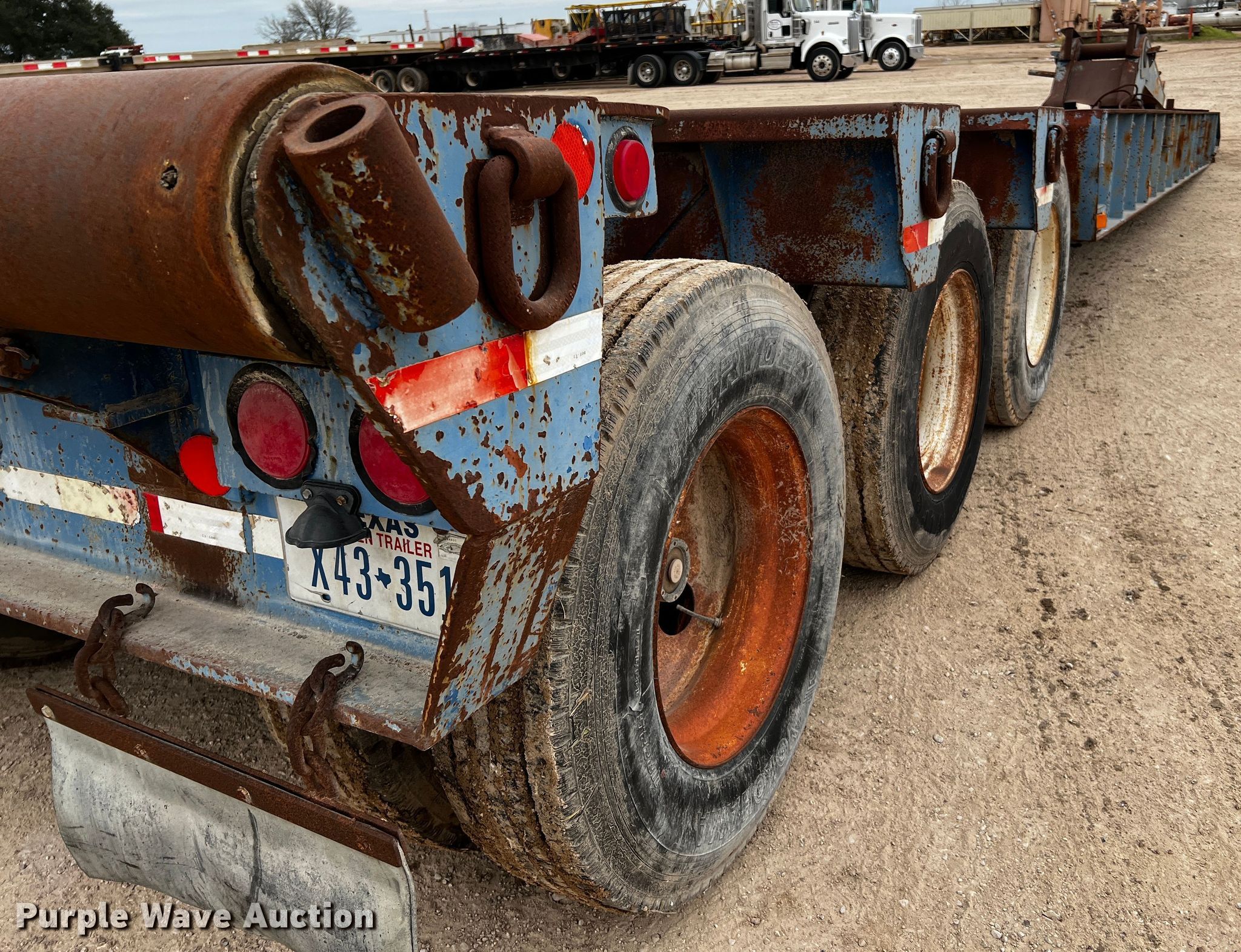 1974 Nabors oilfield trailer. VIN: 23070LD3. Dimensions Overall: 52' 4" L x 102" W, Deck: 39' L x 102" W, Deck height: 3' 8", Ramp length: 32". Features Deck type: Wood, Neck type: Detachable, Rolling tailboard. Chassis Suspension: Spring, Brakes: Air, Axles: Triple. Tires Steel wheels, Size: 11R22.5. Notes Contents not included. Texas title. Title distribution may be delayed up to 14 days from verification of funds. Bobby Lehmann Equipment. 5468 HWY 290E. Giddings, TX 78942